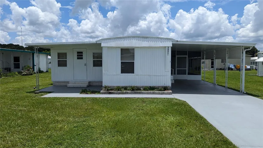 Beautiful 2 bedroom home with one full bath and one half bath. Spacious living room, dining room and eat in kitchen. Extremely large storage and laundry area. Screened lanai at the top of the carport. Storage shed behind home. This home offers an oversized lot. Lawn care, water, sewer & trash are included. Annual leases only. This is an adult community. Available immediately.