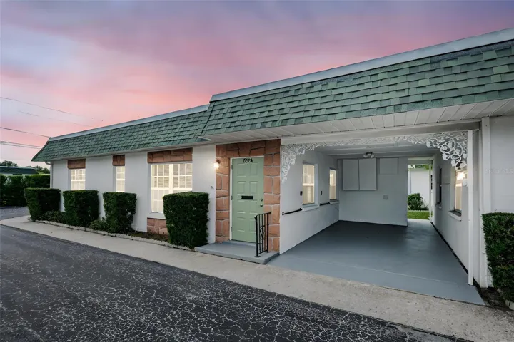 One or more photo(s) has been virtually staged. High and Dry in a NON FLOOD ZONE, this charming, updated 2-bedroom, 2-bath villa with attached 1-car carport is located in the highly desirable 55+ Tyrone Villas community.