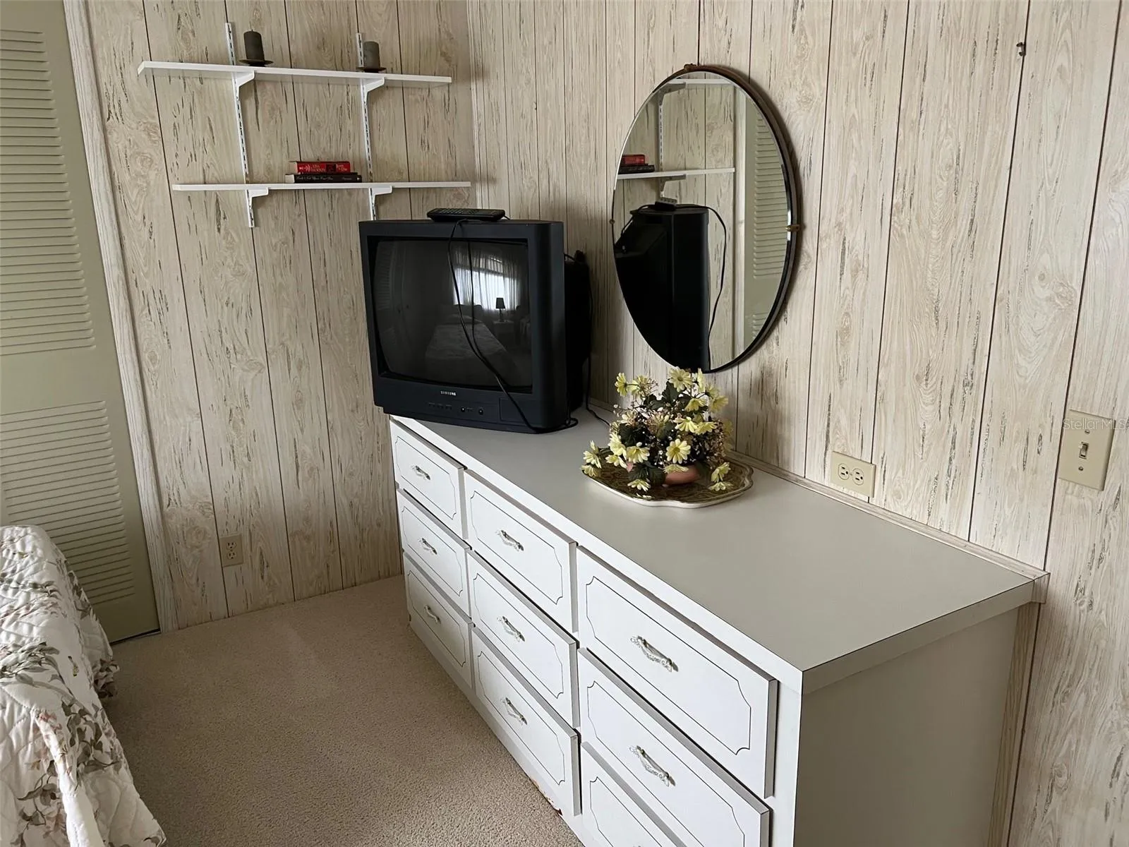 This attractive home, on a large corner lot, is a 2 bedroom/2 bath with 1,320 sq. ft. of spacious living space. Entering the home from your front entrance you will step into your generous-sized combination living room/dining room area. There is plenty of seating available to entertain friends and family as well as a wall of windows that provides plenty of natural light. The home comes fully furnished and is turn key, just waiting for its new owners to arrive. (There is one exception – the TV in the living room does not convey.) The living room flows nicely into your wide-open dining area with its large dining table and another set of large windows. In addition is your lovely built-in china cabinet that is perfect for storing dishes and displaying your collectibles in the beautiful glass-faced top cabinets. From here you can walk into your kitchen with its popular breakfast bar. The kitchen has everything you will need along with a newer dishwasher and waterproof laminate flooring. Off of the kitchen is another entrance/exit to the driveway which is convenient for unloading groceries. The guest bedroom is the perfect size with ample closet space and a built-in dresser. The guest bathroom in the hallway has a shower/tub combination, large vanity with great counter space, and additional storage cabinets above the toilet as well as tall cabinets to store your linens. The master bedroom is a true retreat with an en suite bathroom. This large room currently has a queen size bed but could easily accommodate a king size bed. There is a regular closet as well as a walk-in closet! In addition is a wonderful desk/make-up area tucked away in a corner along with tall cabinets at the entrance to the bathroom that are perfect for storing your linens. Entering the master bathroom is a large single vanity with a long countertop and a step-in shower with safety grab bars. PLEASE NOTE-THE FURNISHINGS ARE NEGOTIABLE AT THIS LOW PRICE!