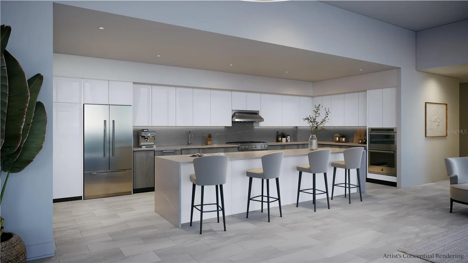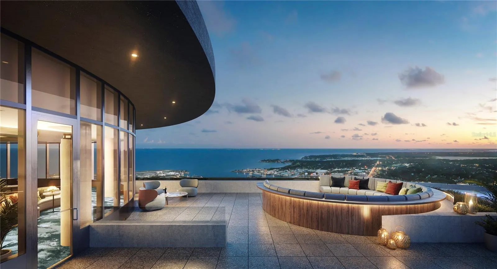 Under Construction. An iconic design from award-winning firm Arquitectonica with interiors and amenities by NY-based Celano Design Studio. Located on the 44th and 45th floors with 12’ ceilings and walls of glass allowing an abundance of natural light, in this well-designed 3 bedroom, 3.5 bath Sky Collection home. The extensive terrace runs the entire length of the residence on both levels providing outdoor living and panoramic views from the great room and every bedroom. The gourmet kitchen features full-height European-style cabinetry with undercabinet lighting, quartz countertops, wine fridge, and an upgraded Thermador appliance package with cabinet panel fridge, freezer, and dishwasher. The generous owners’ suite is highlighted by an expansive walk-in closet and en-suite bath featuring separate vanities, shower with bench, and soaking tub. All baths include frameless glass showers and Grohe plumbing fixtures. On the 7th level, an amenity deck with over 36,000 square feet of indoor and outdoor opportunities for health and wellness, plus a theater lounge and private dining room. Enjoy the resort-style heated pool or state-of-the-art fitness center. Lounge in the Zen garden or a poolside cabana. On the 46th floor, the Sky Lounge and Observatory presents an unobstructed 360-degree view of the city, Tampa Bay, and the Gulf of Mexico. Residences at 400 Central offer the convenience of the maintenance-free, lock-and-leave condominium lifestyle in the heart of St. Petersburg.