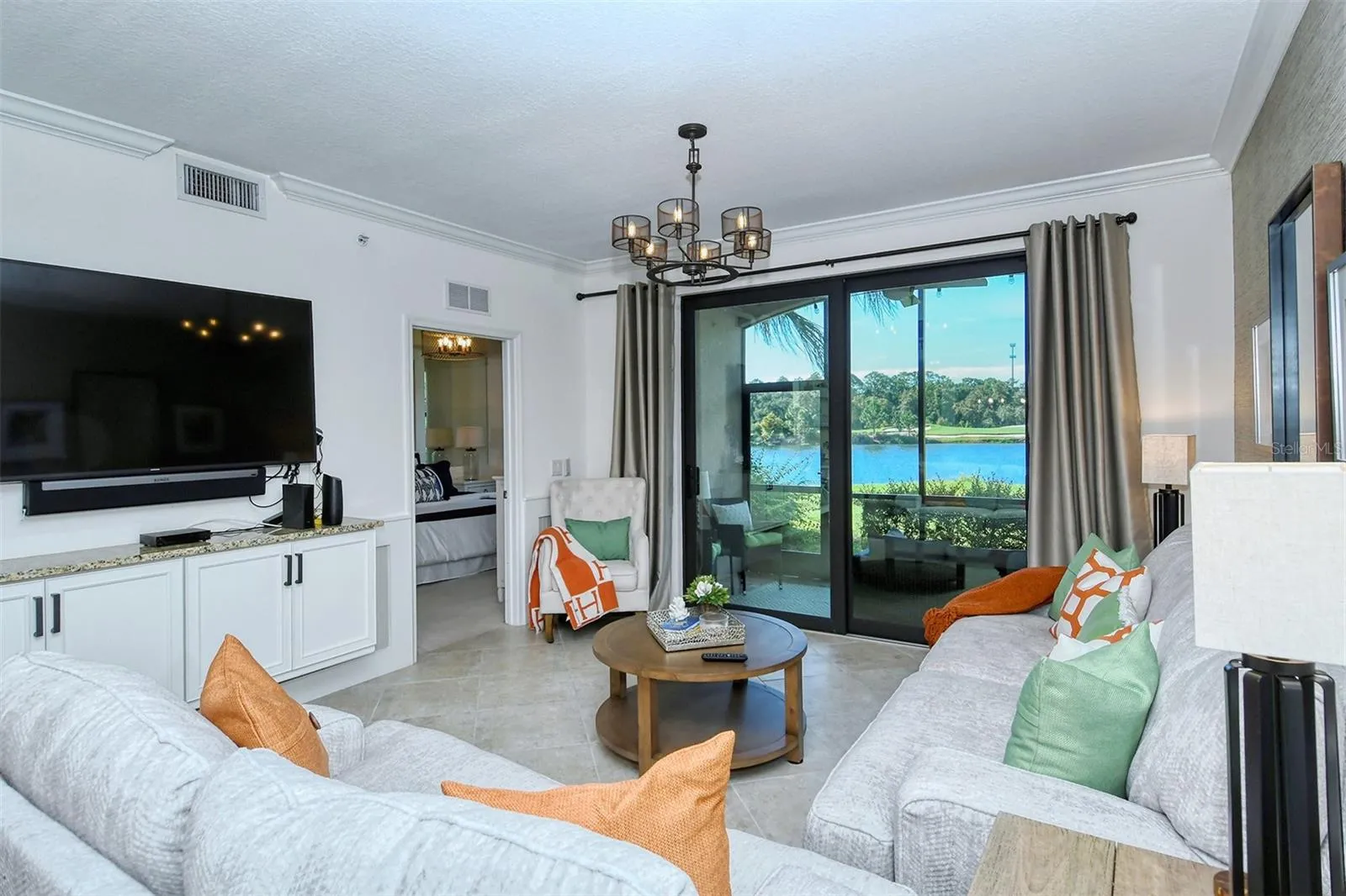Beautiful ground floor, 2-bedroom, 2-bathroom coastal inspired condo with lovely furnishings, bright open and inviting floor plan! Enjoy stunning views of the lake and the golf course as you enter the condo which boasts a gorgeous well stocked cook’s kitchen, nice granite island and stainless-steel appliances for cooking and entertaining. Master suite a features King size bed, en-suite bath with walk- in tile shower and his and her closets. Second bedroom has a queen bed and second bath close by. This open floor plan lends itself to Florida lifestyle living with gorgeous lake and golf course views from the kitchen, living room and private screened in lanai. Enjoy hours of entertainment as you watch the golfers navigate the Arnold Palmer designed golf course offering 36 holes of championship golf split into two courses and a driving range as the sun sets in the evening! Come and experience resort style living in Lakewood Ranch’s premier golf Community! AMENITIES INCLUDE CLUBHOUSE WITH RESTAURANT AND TIKI BAR, ON-SITE DINING, FITNESS CENTER, RESORT STYLE SWIMMING POOLS WITH OUTDOOR GRILLE AND POOLSIDE SERVICE, A FULL SERVICE SPA , TENNIS, PICKLE BALL, BOCCE COURTS AND MORE! Golf Membership available. $65.00 monthly min. expenditure is required at the on-site Tiki Bar/Restaurant (Alcohol Excluded). Easy access to I-75, local shopping and dining, University Parkway, Sarasota Airport and all that Lakewood Ranch has to offer. * HIGH SEASON = DECEMBER through