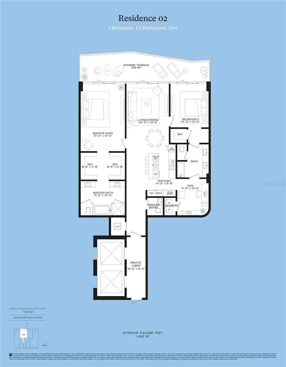 Pre-Construction. To be built. TOWER II. Pre-Construction. To be built. Soaring above the Iconic Bayshore Boulevard on Hillsborough Bay is The Ritz-Carlton Residences, Tampa, an oasis of sophistication that sets a new standard in exemplar design and gracious living. Inspired by the environment and composed for contemporary lifestyles, these breathtaking residences offer modern layouts, generous amenities, and unforgettable unobstructed Eastern views of Hillsborough open bay and downtown Tampa water views from all spacious tower balconies. In the evenings, enjoy gleaming Western sunset views. The Residences will be characterized by striking contemporary architecture by world-class firm Arquitectonica, exquisitely appointed amenity spaces designed by award-winning firm Meyer Davis Studio, and lush landscaping by renowned landscape artist, Enzo Enea. Residence 902 is situated on the SE corner of the building and offers a well-appointed 1,925 SqFt floorplan featuring 2 bedrooms, 2.5 bathrooms, plus a den with access to a full bath. Completed with generous 10’0” high ceilings, floor-to-ceiling windows offering breathtaking views, private elevator access to your private entry foyer, Sub Zero and Wolf appliances complemented by bespoke Stone or Quartz countertops, custom-designed Italian Cabinetry by ItalKraft, spacious walk-in closets, high-end Kohler plumbing fixtures, and full-size top-of-the-line washers and dryers. Estimated Completion: 2025.