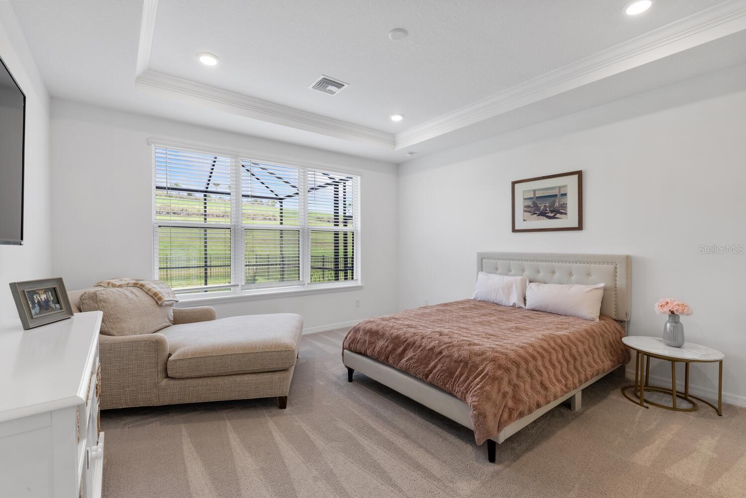 Newly built (2022) 4-bedroom, 3.5-bathroom plus upstairs bonus room in the Taylor Morrison community of Grandview at the Heights. This Anastasia model features many upgrades and includes gas appliances, quartz countertops, tray ceilings, 8-ft doors and an open floor plan. Neutral coastal colors throughout create the perfect backdrop for adding your own flare and decorative touch. The designer kitchen boasts upgraded cabinets and soft-close doors/drawers. Off the kitchen is a dining room and study with French doors. The main level also includes a large gathering room with sliders leading to the screened lanai. The primary suite is on the first floor for privacy and features a spa-like bathroom with two vanities and an elegant, oversized rain shower. Upstairs is a bonus room plus a loft and three additional bedrooms with two full baths. From your spacious lanai, enjoy the serenity of a pool and breathtaking sunset views over a park-like setting. A large, fenced backyard with greenspace is perfect as an additional outdoor living and play area. This highly sought-after gated community features walking trails, a community pool, dog park, playground area, and beautifully manicured grounds.