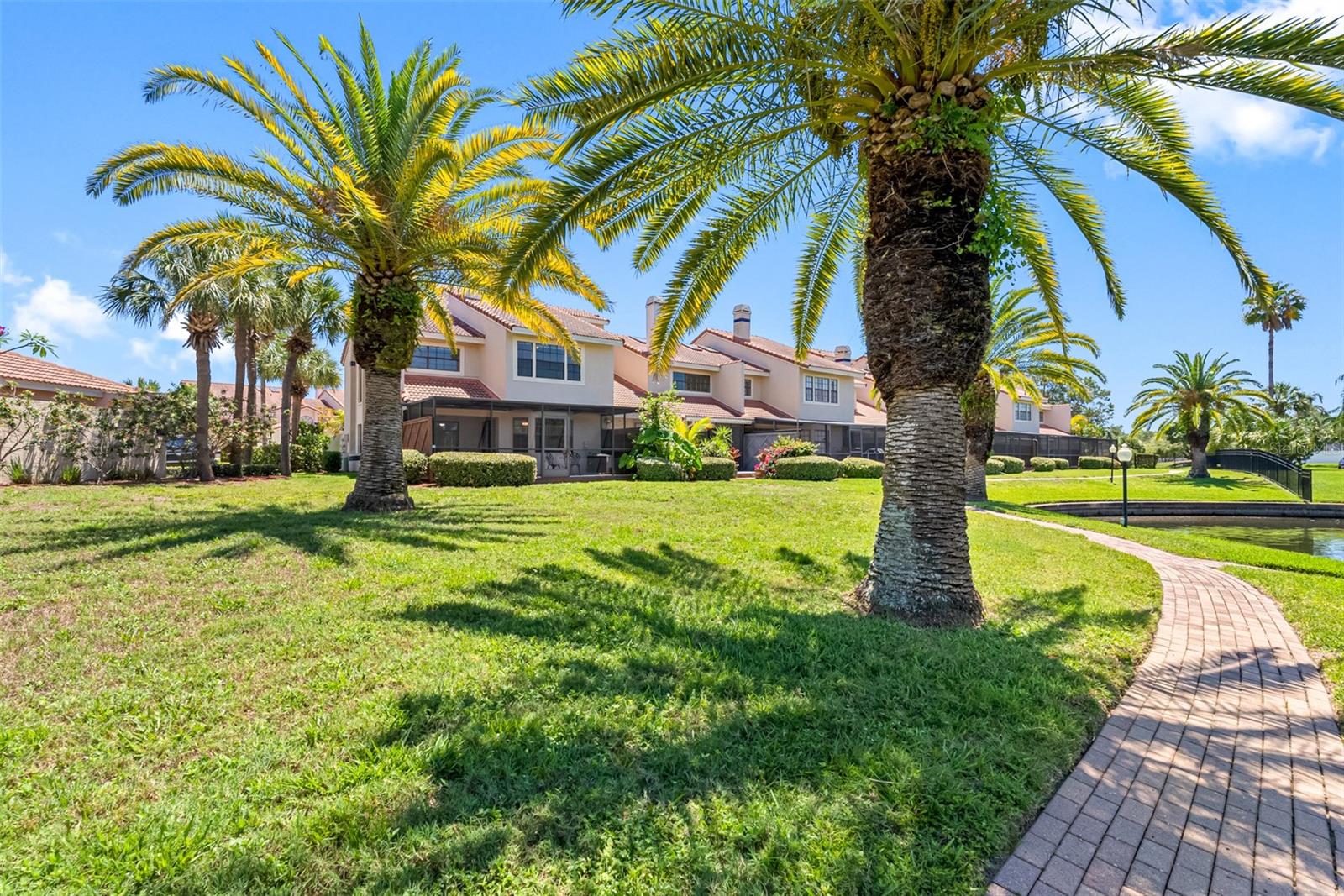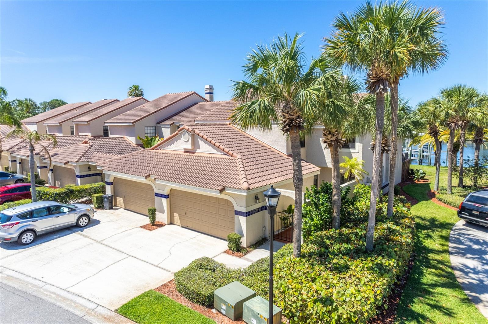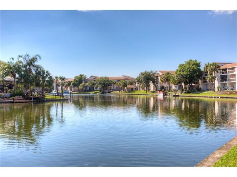 One or more photo(s) has been virtually staged. LOCATION LOCATION LOCATION! EASY ACCESS TO BAY AND GULF FROM YOUR OWN HOME! Welcome to the beautiful Mediterranean-style, San Marino Bay waterfront community! This condo/townhome comes with it’s own deeded boat slip, steps from your back door, giving you the option of leaving your boat there, or renting/selling off separately to other neighborhood residents. This home has a relaxing water view with freshwater lake and canals, ACCESSING TAMPA BAY & THE GULF OF MEXICO, perfect for boating and fishing enthusiasts. Just imagine being able to hop in your boat and go to dinner, or relax on your lanai to enjoy the spectacular sunsets! You will love this unique END UNIT with soaring ceilings and lots of light, offering 1,778 sq ft of open floor plan living. The kitchen boasts wood cabinets WITH PULL OUT DRAWERS, granite countertops, and a bar – perfect for entertaining. The dinette/breakfast nook overlooks a private courtyard, providing a peaceful and serene place to eat. The ensuite master bedroom offers a stunning view of the water and is at other end of the hallway from the other bedrooms. Stay cozy in the winter months with the two-way wood-burning fireplace, between the living and family rooms, and enjoy the outdoors in the summer with 2 sliding glass doors that open up to the cool tiled, large outdoor covered patio with overhead fan, and newly screened and painted deck. Your new condominium also comes with a lockable oversized 2-CAR GARAGE that has tons of attic storage space, which is a rare luxury in condominium living. The quiet cul-de-sac provides a peaceful living environment, and the community amenities include 2 sets of tennis courts, basketball courts, 2 dog parks and playgrounds, perfect for staying active or enjoying time with your furry companions. You can also join the Bay Port Yacht Club, which hosts monthly social events and boating outings. San Marino Bay is a wonderful neighborhood that offers quick and easy access to shopping, dining, TAMPA INTERNATIONAL AIRPORT, DOWNTOWN TAMPA, and the top-rated CLEARWATER BEACH is an easy commute. Don’t miss out on this amazing opportunity to live in one of the most desirable communities in the area. This great one-of-a-kind home is waiting for you to add your modern touch to make it truly yours! This is FLORIDA LIVING at its finest!