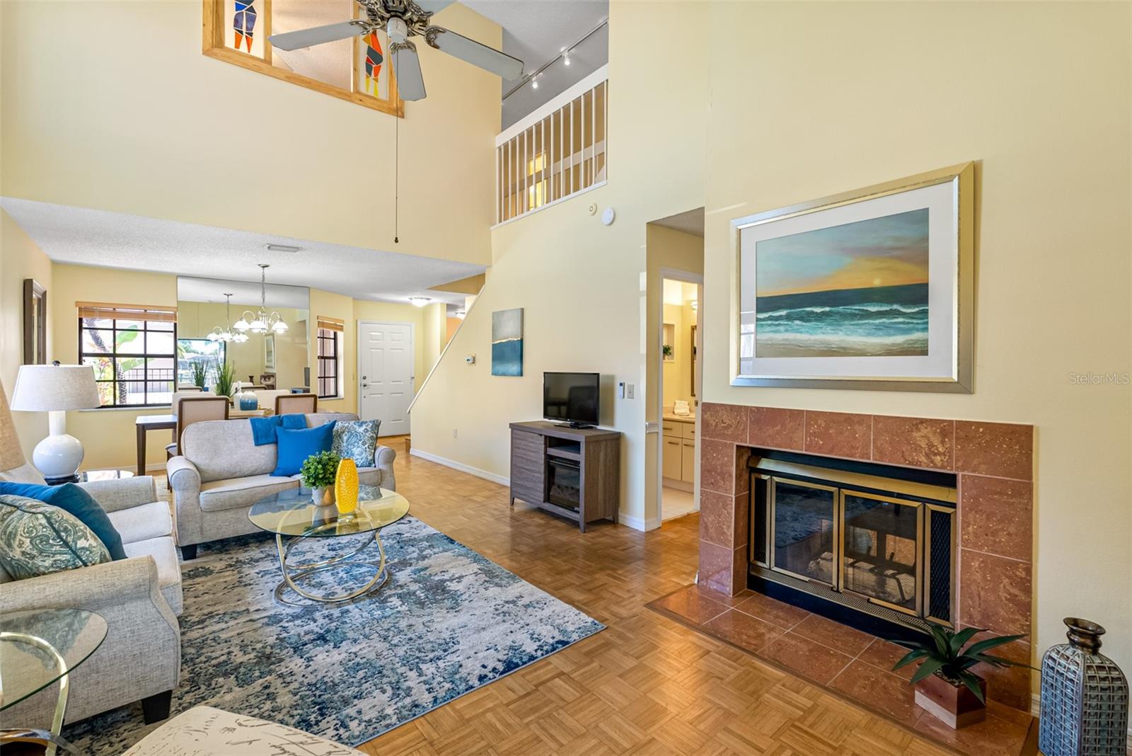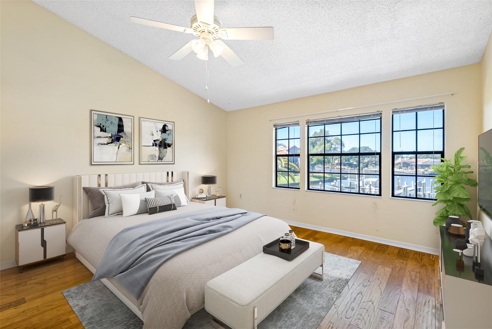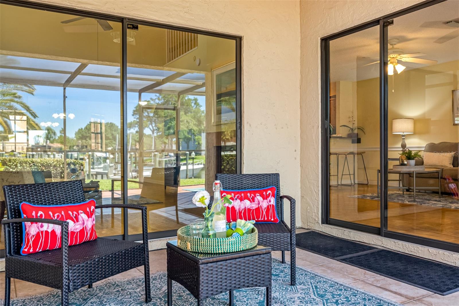 One or more photo(s) has been virtually staged. LOCATION LOCATION LOCATION! EASY ACCESS TO BAY AND GULF FROM YOUR OWN HOME! Welcome to the beautiful Mediterranean-style, San Marino Bay waterfront community! This condo/townhome comes with it’s own deeded boat slip, steps from your back door, giving you the option of leaving your boat there, or renting/selling off separately to other neighborhood residents. This home has a relaxing water view with freshwater lake and canals, ACCESSING TAMPA BAY & THE GULF OF MEXICO, perfect for boating and fishing enthusiasts. Just imagine being able to hop in your boat and go to dinner, or relax on your lanai to enjoy the spectacular sunsets! You will love this unique END UNIT with soaring ceilings and lots of light, offering 1,778 sq ft of open floor plan living. The kitchen boasts wood cabinets WITH PULL OUT DRAWERS, granite countertops, and a bar – perfect for entertaining. The dinette/breakfast nook overlooks a private courtyard, providing a peaceful and serene place to eat. The ensuite master bedroom offers a stunning view of the water and is at other end of the hallway from the other bedrooms. Stay cozy in the winter months with the two-way wood-burning fireplace, between the living and family rooms, and enjoy the outdoors in the summer with 2 sliding glass doors that open up to the cool tiled, large outdoor covered patio with overhead fan, and newly screened and painted deck. Your new condominium also comes with a lockable oversized 2-CAR GARAGE that has tons of attic storage space, which is a rare luxury in condominium living. The quiet cul-de-sac provides a peaceful living environment, and the community amenities include 2 sets of tennis courts, basketball courts, 2 dog parks and playgrounds, perfect for staying active or enjoying time with your furry companions. You can also join the Bay Port Yacht Club, which hosts monthly social events and boating outings. San Marino Bay is a wonderful neighborhood that offers quick and easy access to shopping, dining, TAMPA INTERNATIONAL AIRPORT, DOWNTOWN TAMPA, and the top-rated CLEARWATER BEACH is an easy commute. Don’t miss out on this amazing opportunity to live in one of the most desirable communities in the area. This great one-of-a-kind home is waiting for you to add your modern touch to make it truly yours! This is FLORIDA LIVING at its finest!