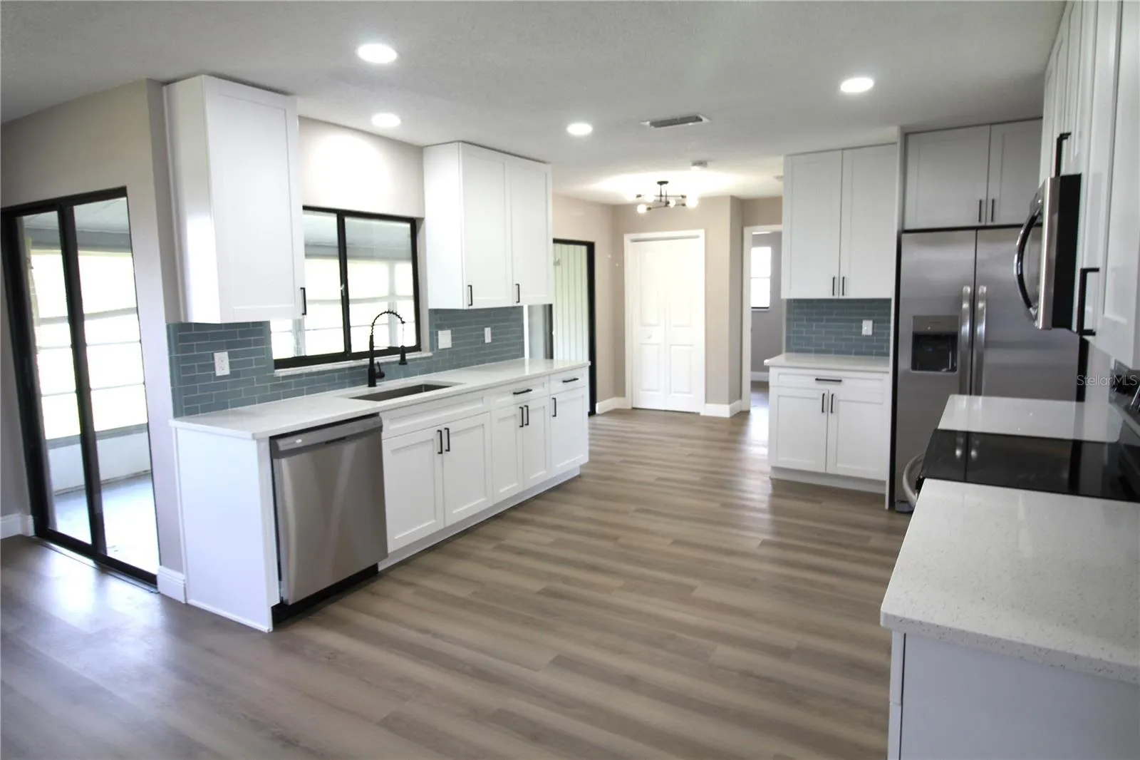 Low annual HOA! Beautifully renovated 2 bedroom, 2 bath 1650 sq ft home located in the +55 community of Sun City Center, Florida. Renovations include new roof, updated electric service panel and main disconnect, exterior and interior painting, new soft close kitchen cabinets with quartz countertops, completely updated bathrooms, and new waterproof luxury vinyl plank flooring with 5 1/4 inch baseboards throughout. The A/C system was installed in 2017 making the system 6 years old and was just serviced, Additional updates include new sod, updated CPVC water supply lines, hurricane rated garage door, new stainless steel appliances, new can lights and light fixtures, new electrical switches and receptacles, all new interior doors and two exterior doors, new toilets, new backsplash, added additional insulation in attic, new sprinkler controller and sprinkler heads, and a new ring doorbell.