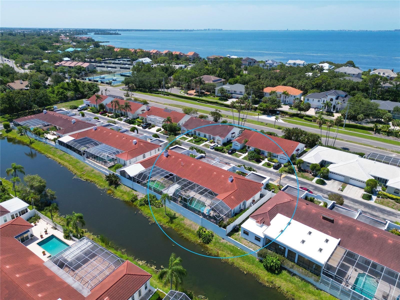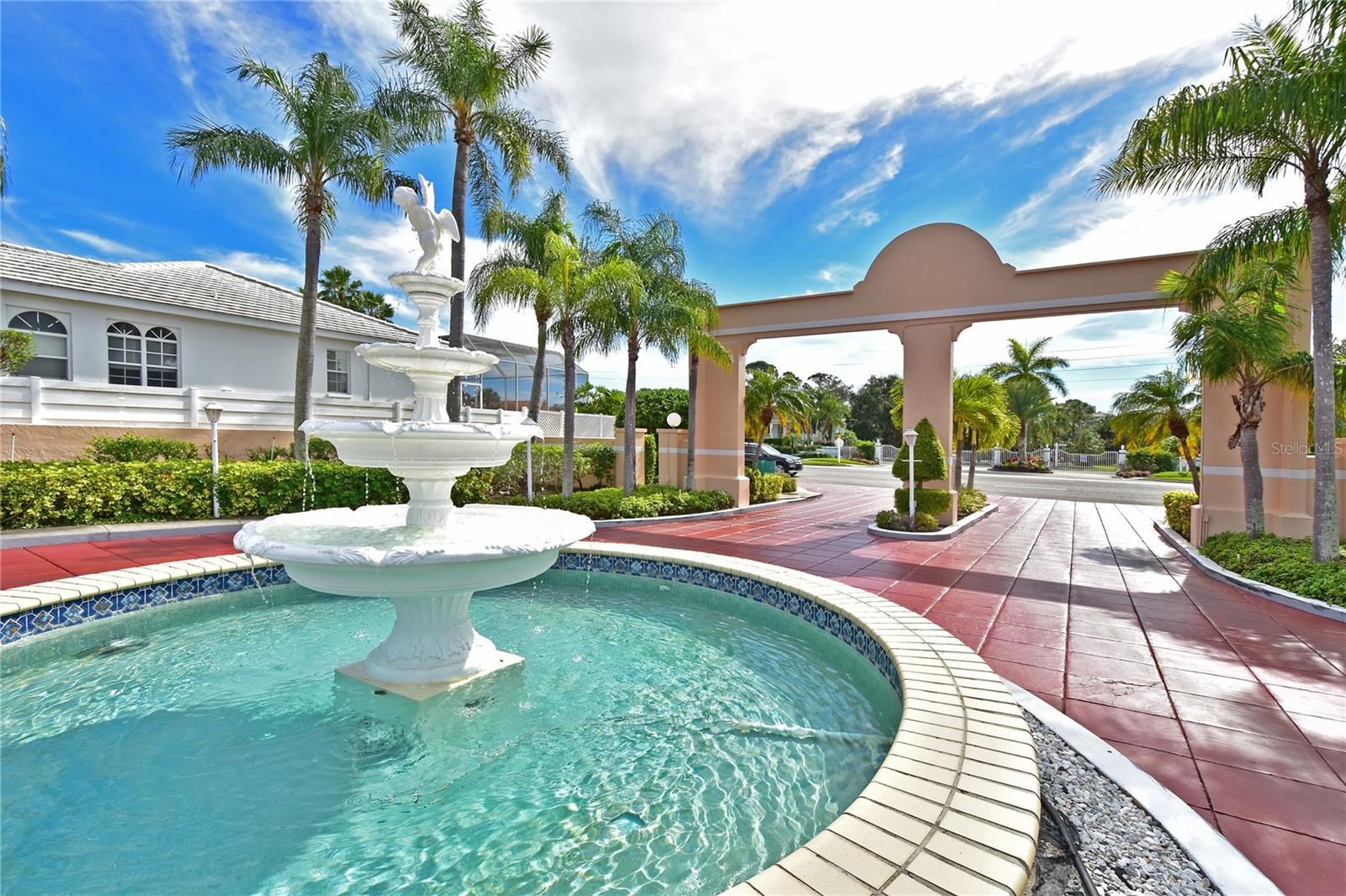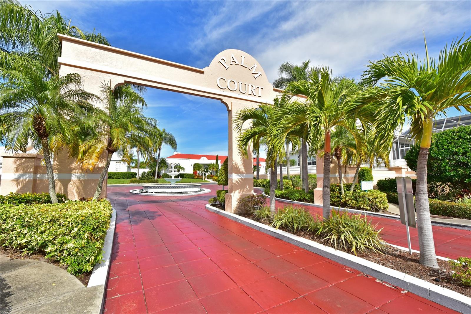 - From 34th St West to El Conquistador Parkway, head west to Palm Court Villas. Enter and take right, villa on the left.