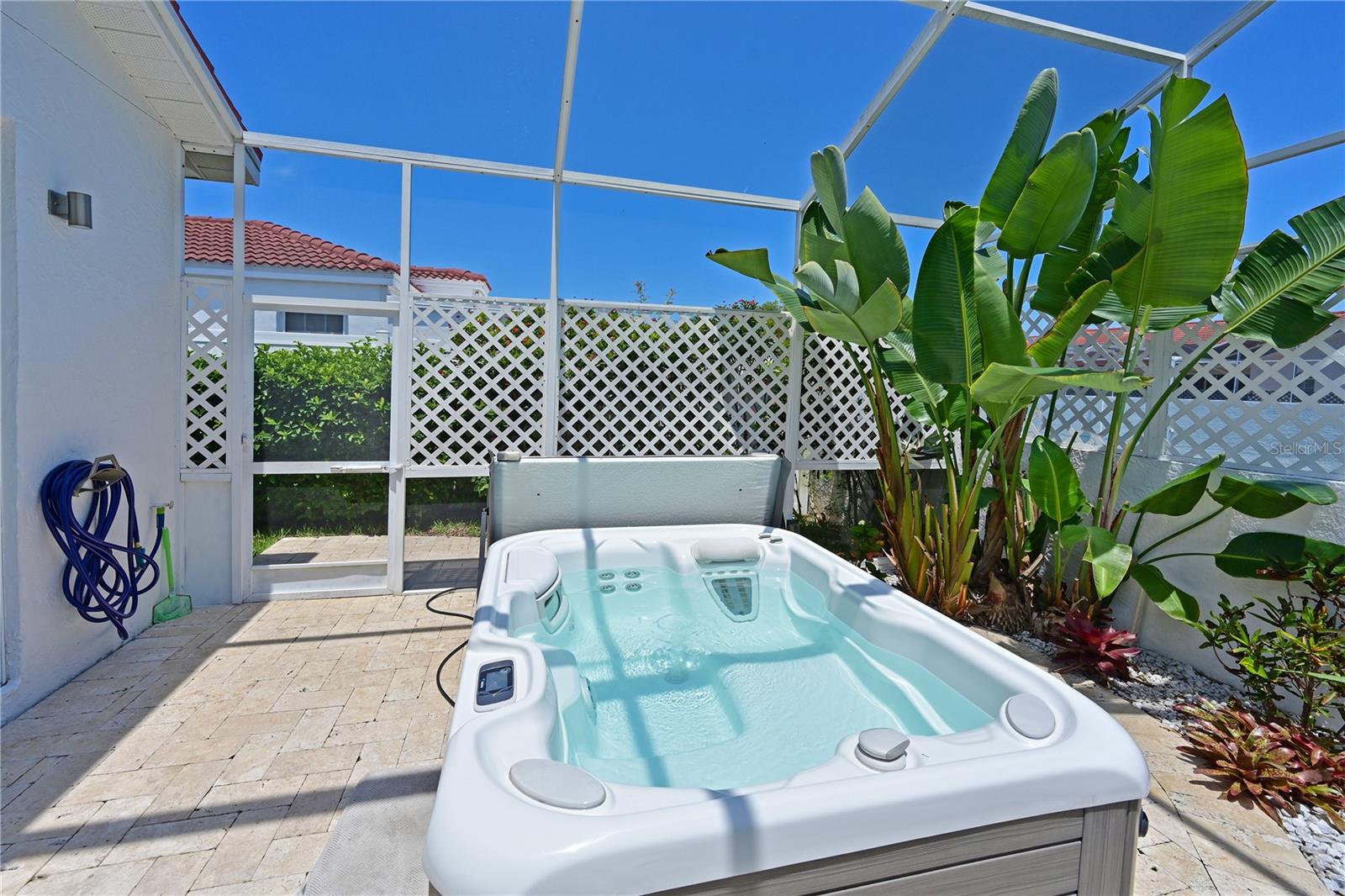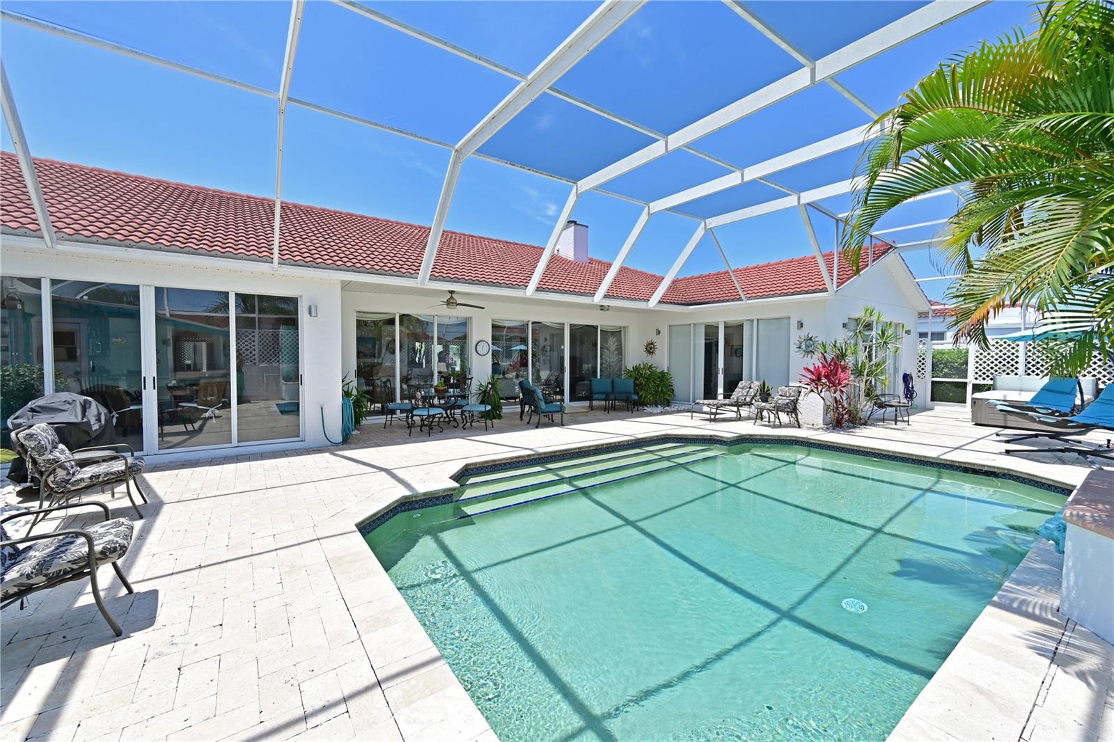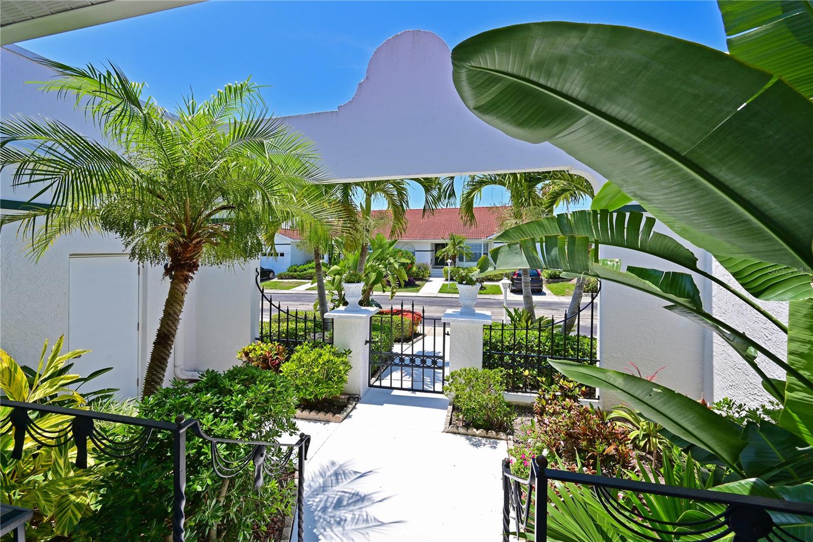 Come fall in love with this stunning villa in Palm Court! If you are looking for the feel of a single family home with the luxury of a condo then look no further….this elegant, Mediterranean styled community of villas located in the IMG/El Conquistador area is the perfect place for you to call your new home! As you enter the foyer at this amazing 3bd/2ba/plus 2 half bath villa you will appreciate the gorgeous pool and tropical landscaped view, open floor plan, high ceilings and natural light throughout. Imagine the possibilities for entertaining friends and family around your private pool area with spa, cabana and 1/2 pool bath. Elegant finishes throughout, stone countertops, large eat-in kitchen with stainless steel appliances, beautiful cabinets, 8’ tall sliders to the pool across the entire living area, spacious master suite, decorative bathroom vanities, and large walk in showers. Enjoy dining outside on your covered deck area or lounging by the pool with the privacy of your fenced back yard. Palm Court offers a community pool just down the road from this location and is conveniently located with close proximity to both downtown Sarasota and downtown Bradenton. IMG Academy near by and The IMG Golf and Country Club is just down the road. Just a short ride to the beautiful gulf beaches found on Anna Maria Island as well. Most of the beautiful furnishings are negotiable with the sale. This villa is a rare gem and won’t last long. Come see why those that live in this wonderful community love to call Palm Court their home!