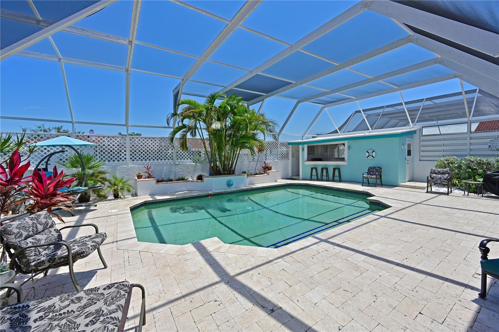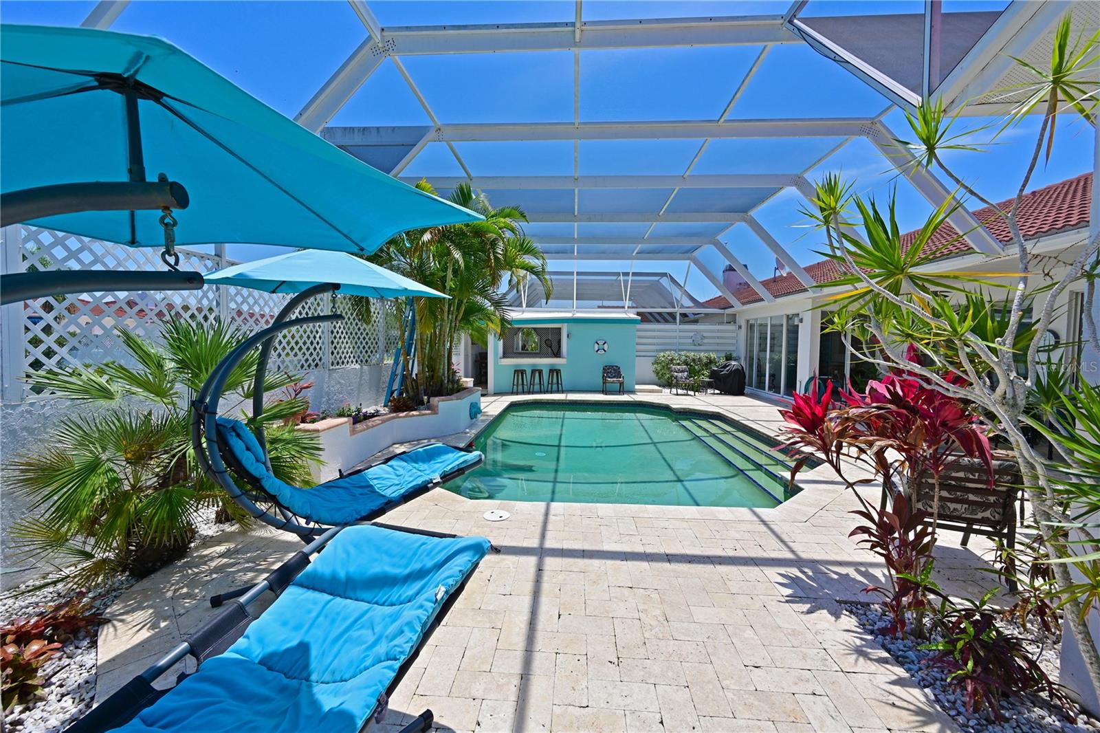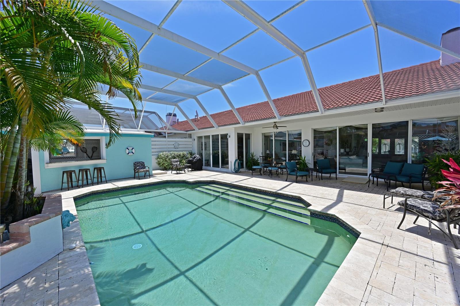 Come fall in love with this stunning villa in Palm Court! If you are looking for the feel of a single family home with the luxury of a condo then look no further….this elegant, Mediterranean styled community of villas located in the IMG/El Conquistador area is the perfect place for you to call your new home! As you enter the foyer at this amazing 3bd/2ba/plus 2 half bath villa you will appreciate the gorgeous pool and tropical landscaped view, open floor plan, high ceilings and natural light throughout. Imagine the possibilities for entertaining friends and family around your private pool area with spa, cabana and 1/2 pool bath. Elegant finishes throughout, stone countertops, large eat-in kitchen with stainless steel appliances, beautiful cabinets, 8’ tall sliders to the pool across the entire living area, spacious master suite, decorative bathroom vanities, and large walk in showers. Enjoy dining outside on your covered deck area or lounging by the pool with the privacy of your fenced back yard. Palm Court offers a community pool just down the road from this location and is conveniently located with close proximity to both downtown Sarasota and downtown Bradenton. IMG Academy near by and The IMG Golf and Country Club is just down the road. Just a short ride to the beautiful gulf beaches found on Anna Maria Island as well. Most of the beautiful furnishings are negotiable with the sale. This villa is a rare gem and won’t last long. Come see why those that live in this wonderful community love to call Palm Court their home!