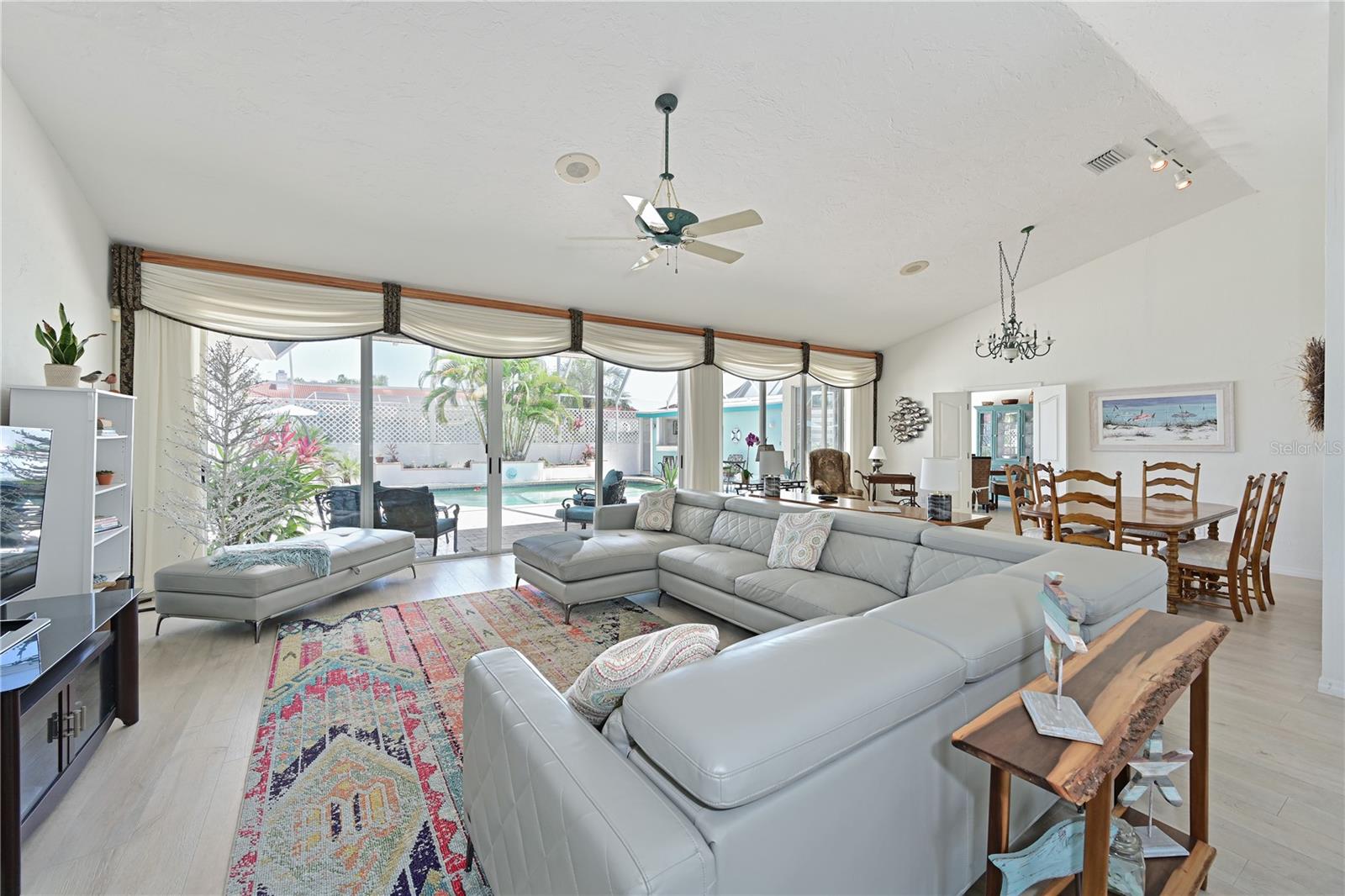 - Ceiling Fans(s), Walk-In Closet(s), Living Room/Dining Room Combo, Eat-in Kitchen, Window Treatments, High Ceilings, Vaulted Ceiling(s)