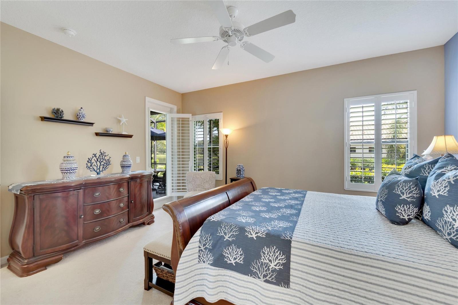 - Ceiling Fans(s), Crown Molding, Open Floorplan, Thermostat, Walk-In Closet(s), Window Treatments, Solid Surface Counters, Tray Ceiling(s), Coffered Ceiling(s)