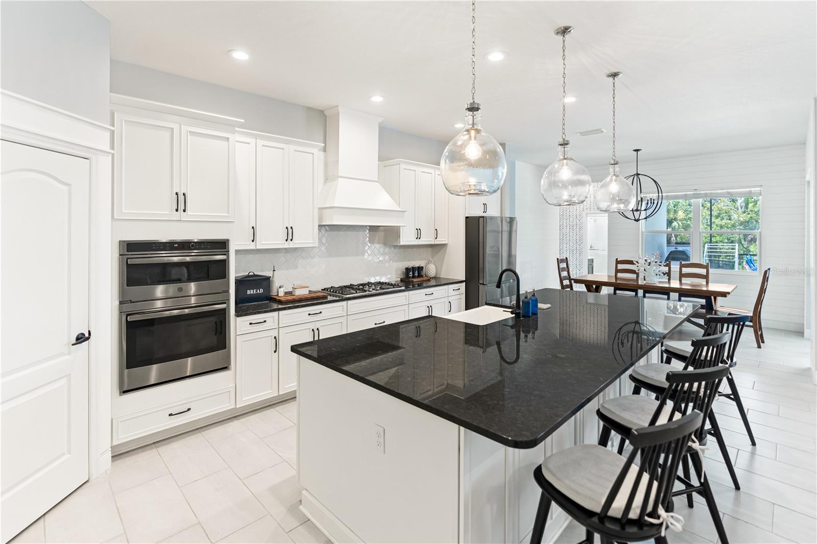 The Cook’s Kitchen is a chef’s delight, adorned with beautiful white kitchen cabinets, an elegant backsplash, and a large one-level island. Prepare delicious meals with ease using the gas cooktop and stainless steel appliances. You’ll find plenty of storage in the spacious pantry and granite countertops add a touch of sophistication to the space.