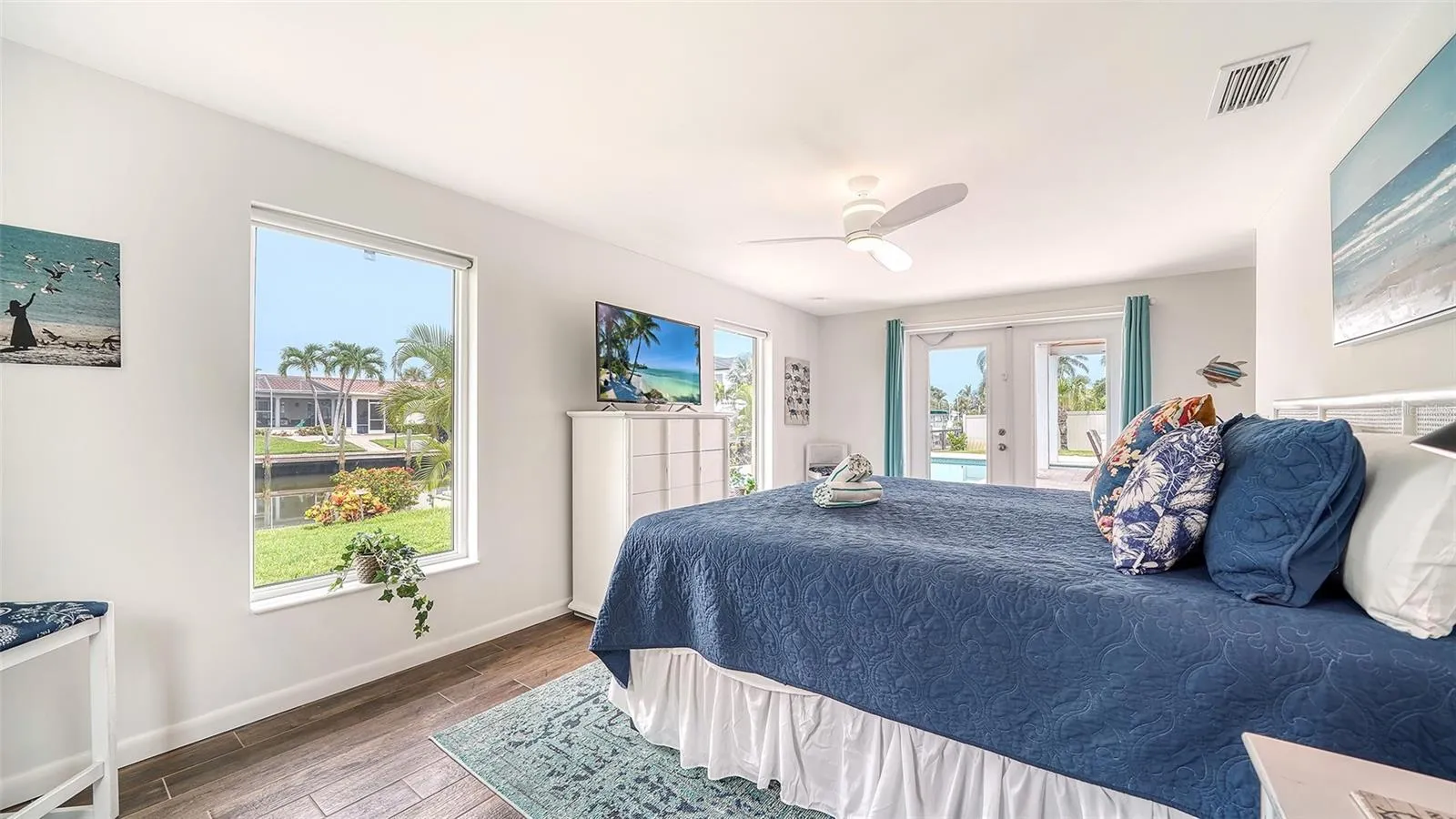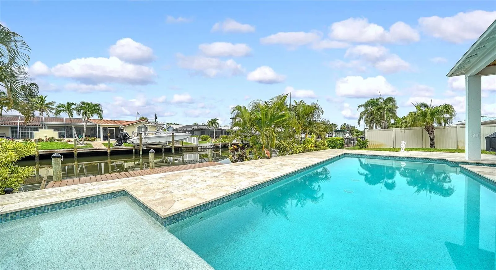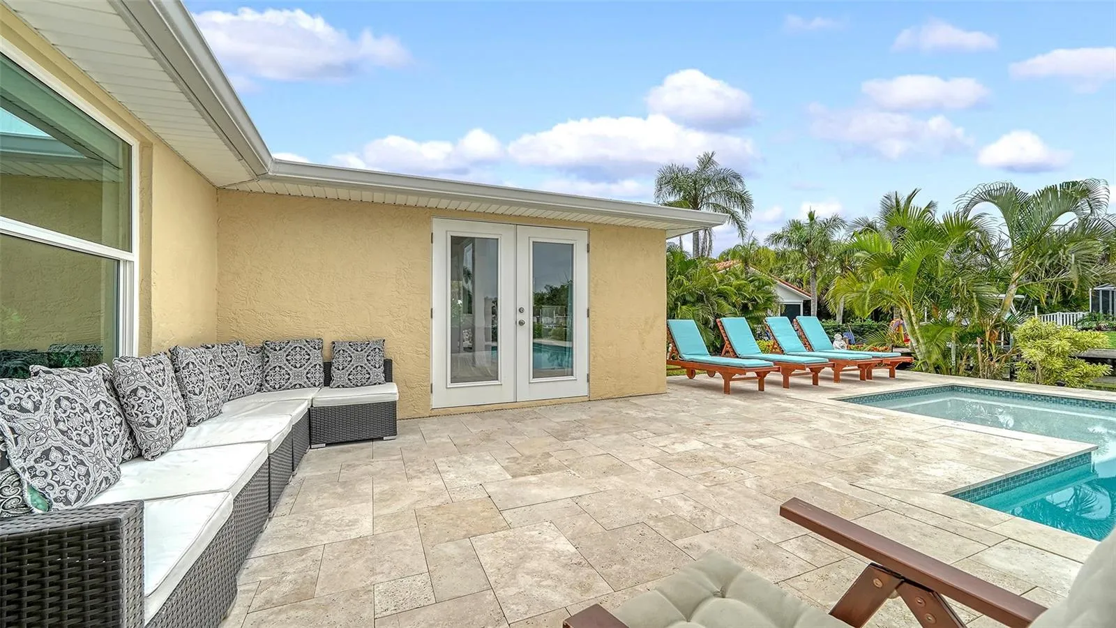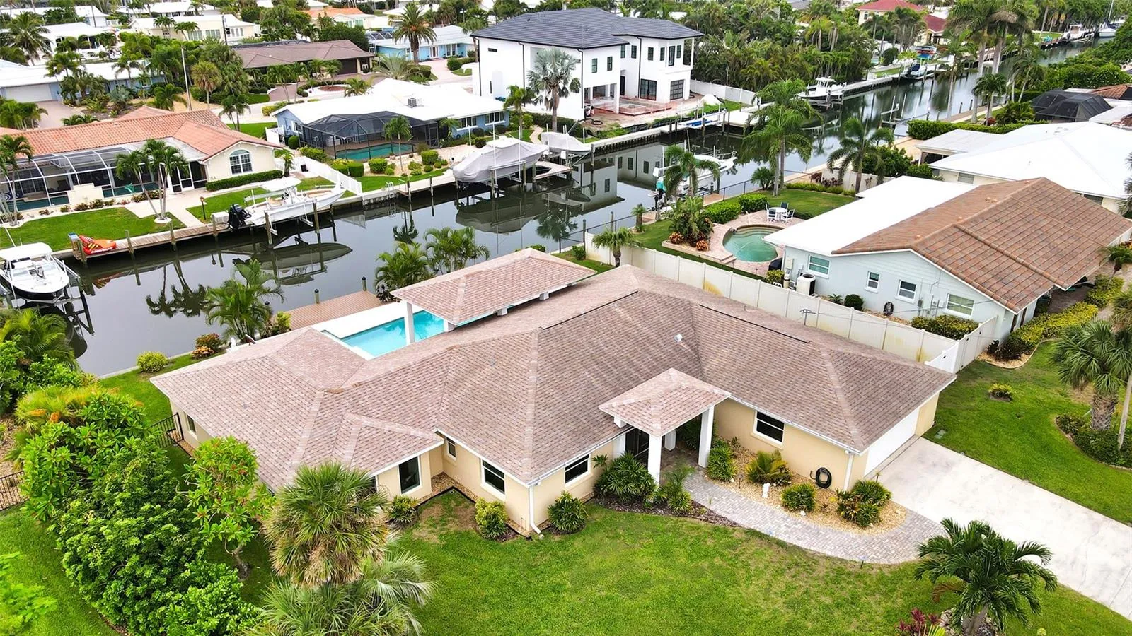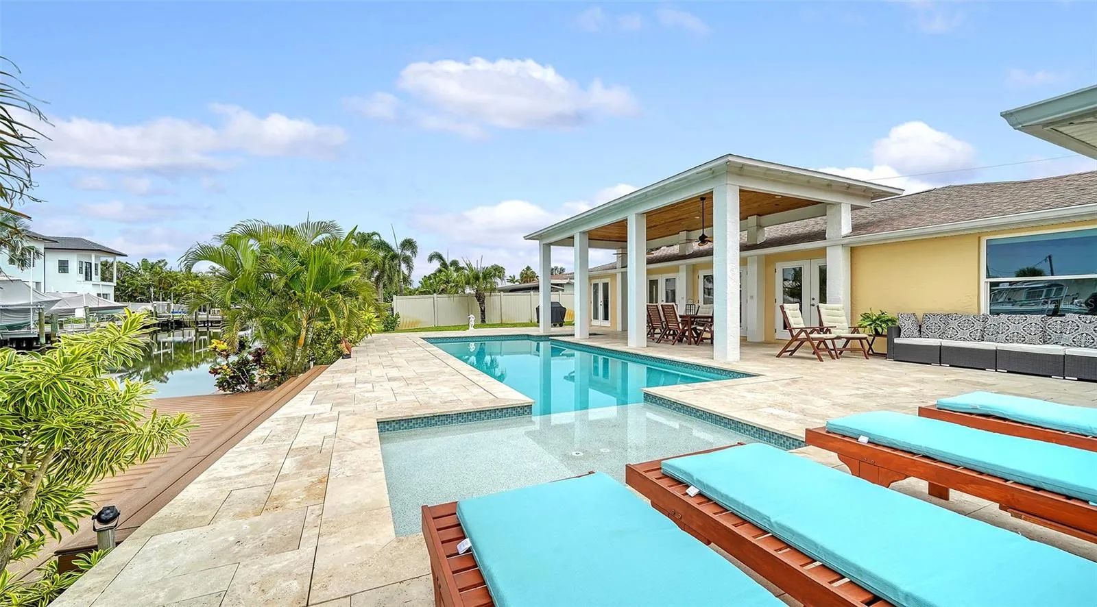 HURRY – MAKE AN OFFER – $700,000 PRICE REDUCTION – PRICED TO SELL! This stunning canal front home was renovated, updated and expanded in 2018. Ideally located in the waterfront community of Key Royale on Anna Maria Island, this home offers a new and modern living experience with open floor plan, vaulted ceilings and 4 bedrooms with 4 ensuite bathrooms. It is perfect for a vacation home, year round living or earning that much sought after rental income with its documented rental history. This concrete block home is solidly built and has 2018 hurricane impact resistant windows and doors, 2018 kitchen, 2018 baths, a 2018 heated saltwater pool, a well for irrigation and was re-piped including sewer lines in 2018. Upon entering, you are greeted by an open concept floor plan, a light and airy aesthetic, high ceilings with wood beams, and tropical water views. The inviting and spacious great room is filled with natural light thanks to a full wall of glass French Doors overlooking the pool, saltwater canal and dock. The poolside loggia with vaulted custom wood ceiling and travertine lanai is a beautifully designed resort space with waterfront pool, perfect for swimming laps or lounging in semi-submerged chaises on the water-filled sundeck. It’s truly a seamless blend of indoor/outdoor living with expansive spaces for dining, lounging, and sunbathing, making for the perfect island experience whether it’s a cozy dinner under the stars or returning from a day on your boat to a soothing soak in your private pool. This home offers it all. Attention to detail and sophisticated design can be found throughout this home. The floors are wood-like porcelain tile planks (no carpet), ensuring a clean polished look and easy maintenance. The property boasts four generously sized ensuite bedrooms with bathrooms featuring exquisite marble and mosaic finishes including zero threshold showers, adding a touch of luxury to every corner and providing a private sanctuary for every occupant. The heart of this home is undoubtedly the sleek Euro style kitchen, designed for both functionality and entertainment. The kitchen boasts a sizable entertaining island with elegant quartz counters, and is equipped with stainless steel appliances, including slide-in range and wine refrigerator. This home is not only stunning but also an investment opportunity. It has proven to be a successful rental property making it an attractive prospect for investors seeking lucrative returns. The home is just moments from the beach at the end of Key Royale/66th Street, the par 32 nine hole Key Royale Club plus the charming shops and restaurants of Anna Maria Island. Imagine the wonderful lifestyle when your biggest decision of the day is whether to take your golf cart to all the fun, swim in your waterfront pool, fish from your private dock, or relax on the beach at sunset. The peek-a-boo views of the majestic Sunshine Skyway Bridge from the front of this home add to its allure, making it a truly special and unique property.