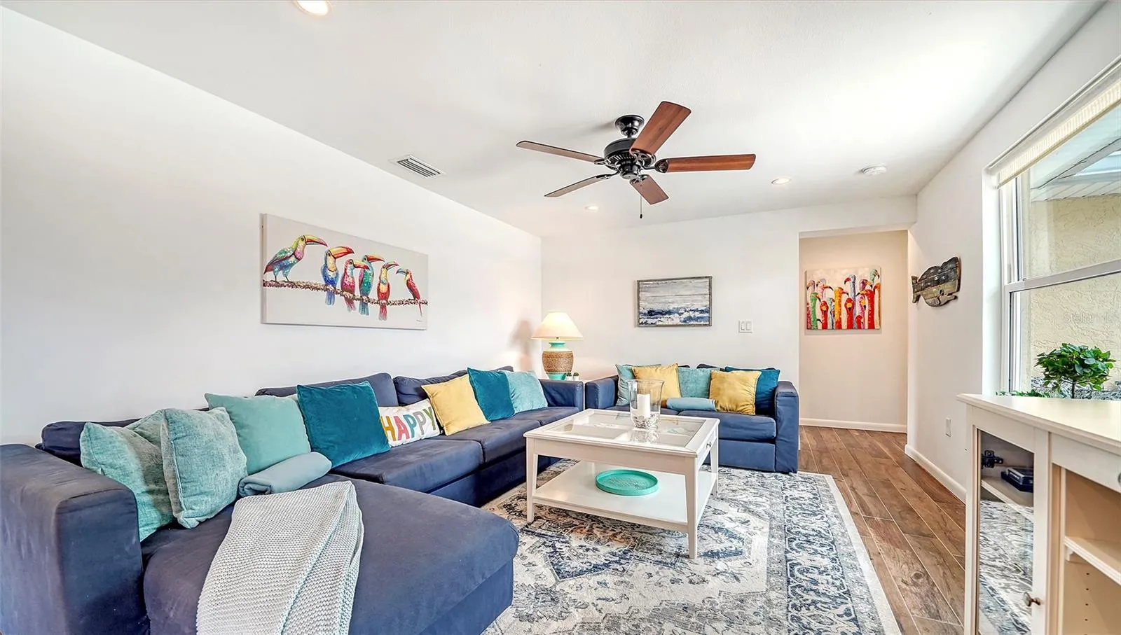 - Ceiling Fans(s), Open Floorplan, Thermostat, Walk-In Closet(s), Living Room/Dining Room Combo, Eat-in Kitchen, Kitchen/Family Room Combo, Split Bedroom, Window Treatments, Vaulted Ceiling(s), Stone Counters, Solid Wood Cabinets