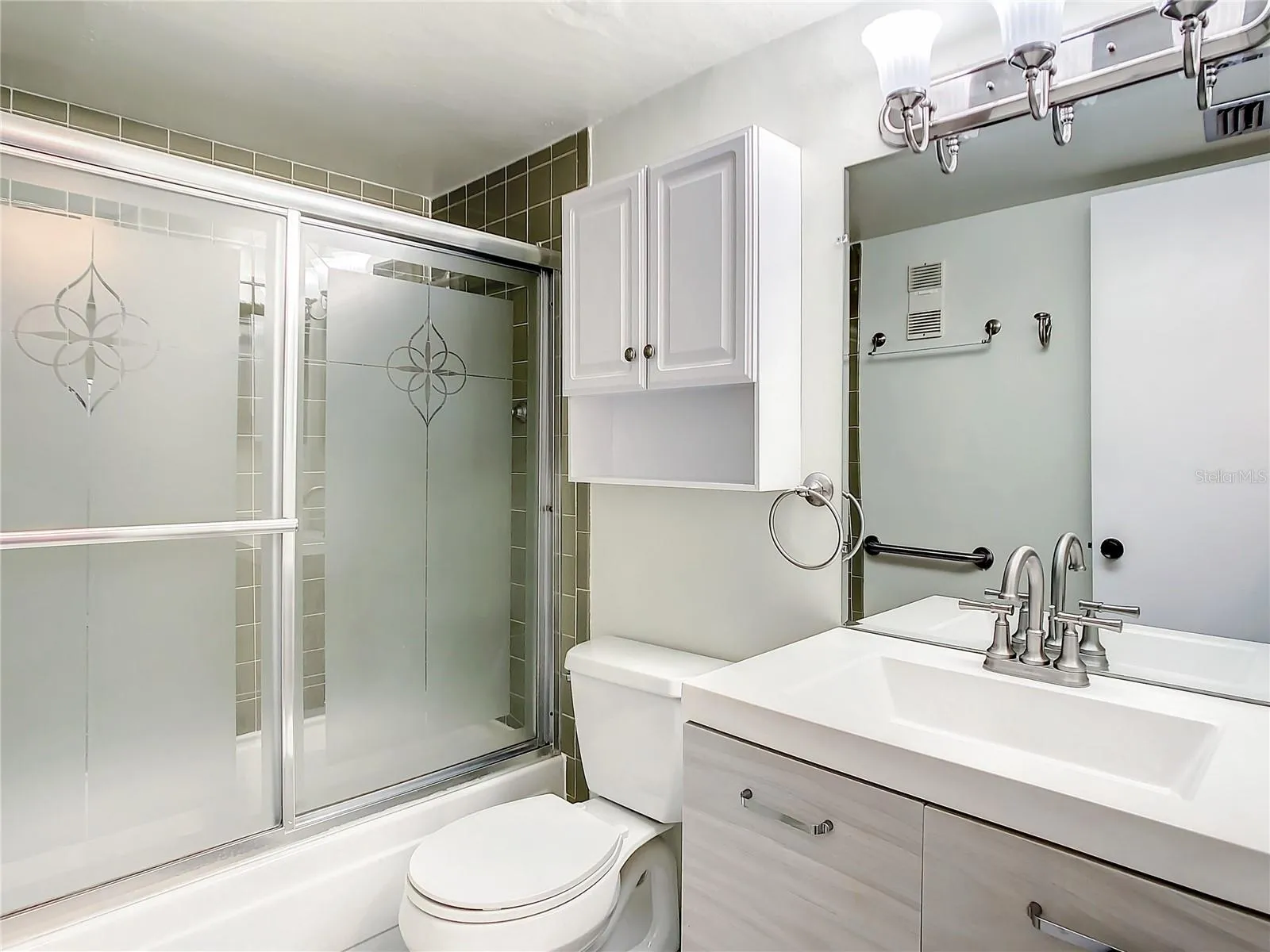 One or more photo(s) has been virtually staged. Nestled among majestic Oak trees and lush tropical landscaping is unit #114 at Water’s Edge 3, a ground-floor impeccably renovated condo with an inviting open floor plan. This recently updated haven is flooded with natural light and boasts an array of enhancements: a pristine, brand-new kitchen that exudes elegance with its bright white custom cabinets, exquisite quartzite countertops and modern new appliances including a refrigerator with icemaker, microwave, range, and dishwasher. Additional highlights include a sleek sink, faucet, tap water filter, and a thoughtfully designed custom pantry.The bathroom radiates freshness with its newer tile and vanity. Experience peace of mind with all-new PGT hurricane-proof windows, ensuring both safety and tranquility. Revel in the luxurious feel of newer luxury vinyl plank flooring in all main areas.The generous-sized lanai has been adorned with new tiles and recently re-screened for your enjoyment. Fresh paint throughout the condo breathes new life into the space.The hot water tank, replaced in January 2024, guarantees your comfort, while the HVAC system, renewed in 2019, offers efficient climate control.This residence is truly move-in ready. Water’s Edge is a splendid 55+ community offering an array of amenities, including a heated pool and spa, a clubhouse with a fitness room, shuffleboard courts and a serene pond with a dock and gazebo.Enjoy the utmost convenience with a location that’s just minutes away from award-winning beaches and mere steps from shopping and dining. This is more than just a home; it’s a lifestyle waiting for you to embrace.
