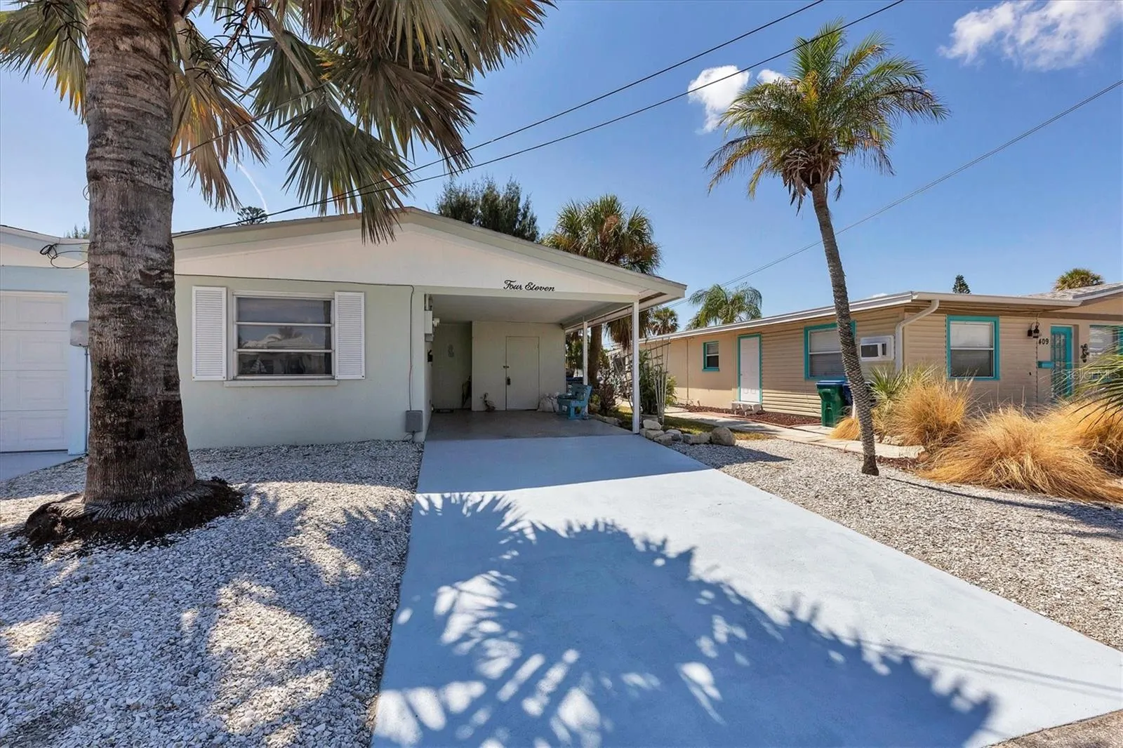 One or more photo(s) has been virtually staged. Anna Maria Island with its sugar-like sandy beaches, embraced by the crystal clear, turquoise-blue waters of the Gulf of Mexico are world renown. AMI is recognized as having some of the greatest beach towns in America. This sweet beach bungalow has 2 bedrooms, 2 full baths, and an oversized carport and lanai. The entire home, including the screened lanai, is tiled. Both bathrooms are remodeled. New A/C 2021, and refrigerator in 2023. NEW ROOF was installed in Dec. 2023. Lanai opens to a backyard and a large open green space park with mature trees. The area is quiet and tranquil. At the west end of the street is a free trolley stop and at the other end (east) is the boat ramp and small park. The bayou takes you to excellent fishing and areas to explore on the Bay side of the island. Beaches on the Gulf side are a short walk away. This Civic Association (not HOA) -Seaside Gardens in Holmes Beach maintains the common areas and has a private sewer and water system for the homes in this association. The interior pictures are staged or virtual, the walls in living room are now eggshell NOT orange. Public boat ramps, pickleball, tennis & basketball courts, both dog and skate parks, as well as restaurants are all close by in this wonderful central location, conveniently accessible to all points on the island. A pool should be allowed if driveway and lanai are replaced with pervious pavers. There are fitness centers, live theater, great restaurants via free trolley, boutique shopping & golf course!! And of course, AMI PUBLIC BEACHES! Do not wait, come live the dream! 413 63rd St next door is for sale as well, it is offered turnkey furnished; invest in you and your family to build your very own little family retreat by buying the 2 units side by side and enjoy the island lifestyle for years to come…