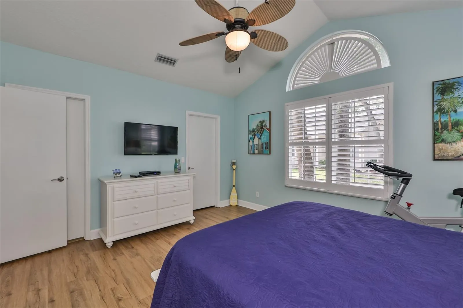 - Ceiling Fans(s), Open Floorplan, Walk-In Closet(s), Living Room/Dining Room Combo, Primary Bedroom Main Floor, Split Bedroom, Window Treatments, Vaulted Ceiling(s), Stone Counters, Solid Wood Cabinets, Attic Ventilator