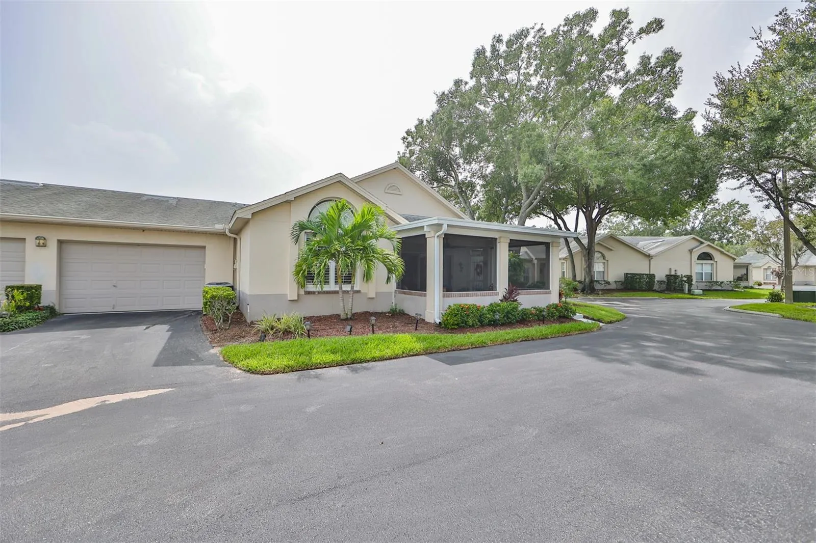 IMPROVED PRICE – BACK ON THE MARKET! Maintenance-Free Living in the PREMIER Pet-Friendly NOT 55+ Community of Cypress Creek Golf Course & Country Club! As you approach this residence, you’ll immediately notice its beautifully manicured landscaping. This UPGRADED charming HAWTHORNE model condo, boasting 2 bedrooms and 2 bathrooms along with a spacious 1 ½ car garage, is situated within the desirable Fairway Palms neighborhood. Step inside and be welcomed by the inviting Living/Dining area featuring Vaulted CEILINGS and wood-look flooring. The kitchen has received a tasteful UPDATE, showcasing new soft-close Shaker cabinets, QUARTZ Counters, Tiled Backsplash, Pantry, Solar Tube, Breakfast and Coffee Bar, & Stainless appliances (including WINE Refrigerator). It’s clear this home is truly one of a kind. Through sliding glass doors, you’ll find an expansive screened LANAI (15×14), perfect for entertaining, or simply enjoying bird watching. The PRIMARY Suite offers ample space, complete with a WALK-IN Professional Closet, VAULTED ceilings, Plantation Shutters, and New luxury vinyl flooring. The updated PRIMARY Bath features LUXURY vinyl flooring, Comfort Height Vanity, & TILED walk-in shower. Just past the Front door, you will find a SPACIOUS second primary bedroom & full bath that offer plenty of PRIVACY & space for guests and family visits. Indoor LAUNDRY room features Washer & Dryer, & additional STORAGE. The 1 1/2 Car garage is well-appointed with a pull-down stairway, EPOXY floors, and plenty of storage space. Mechanical Upgrades include Elec Water Heater(2023), Osmosis system, HVAC & Lanai Roof(2021), and Water Softner, Garage Door & Epoxy Floor(2020). Become a part of the luxurious, maintenance-free, NOT 55+, community of Fairway Palms, which includes access to a community clubhouse with a fitness center and an outdoor heated swimming pool. The Villages of Cypress Creek has the added benefit of no CDD fees, low annual HOA dues, and a convenient location nestled between Tampa and Sarasota. You’ll have quick access to Tampa International Airport, shopping malls, dining options, beaches, theaters, amusement parks, sports venues, fishing, boating, and much more. Don’t miss out on this fantastic opportunity to experience the Florida lifestyle at its finest. Call today for a private showing!