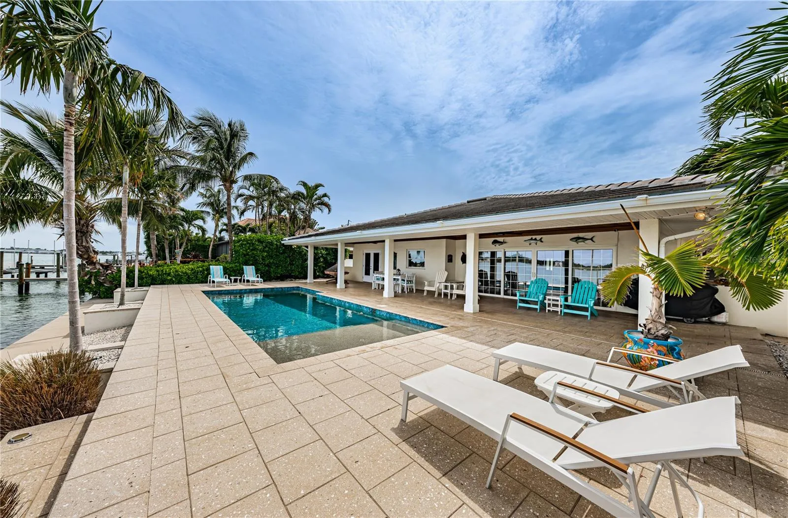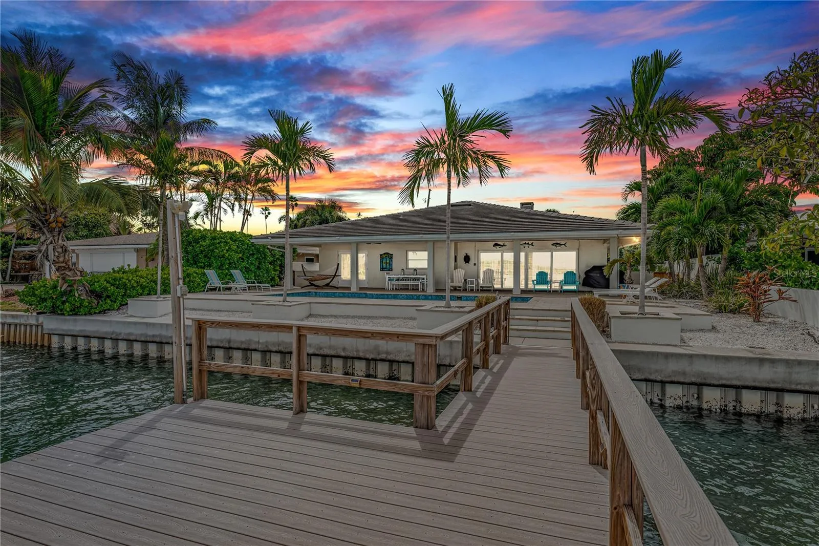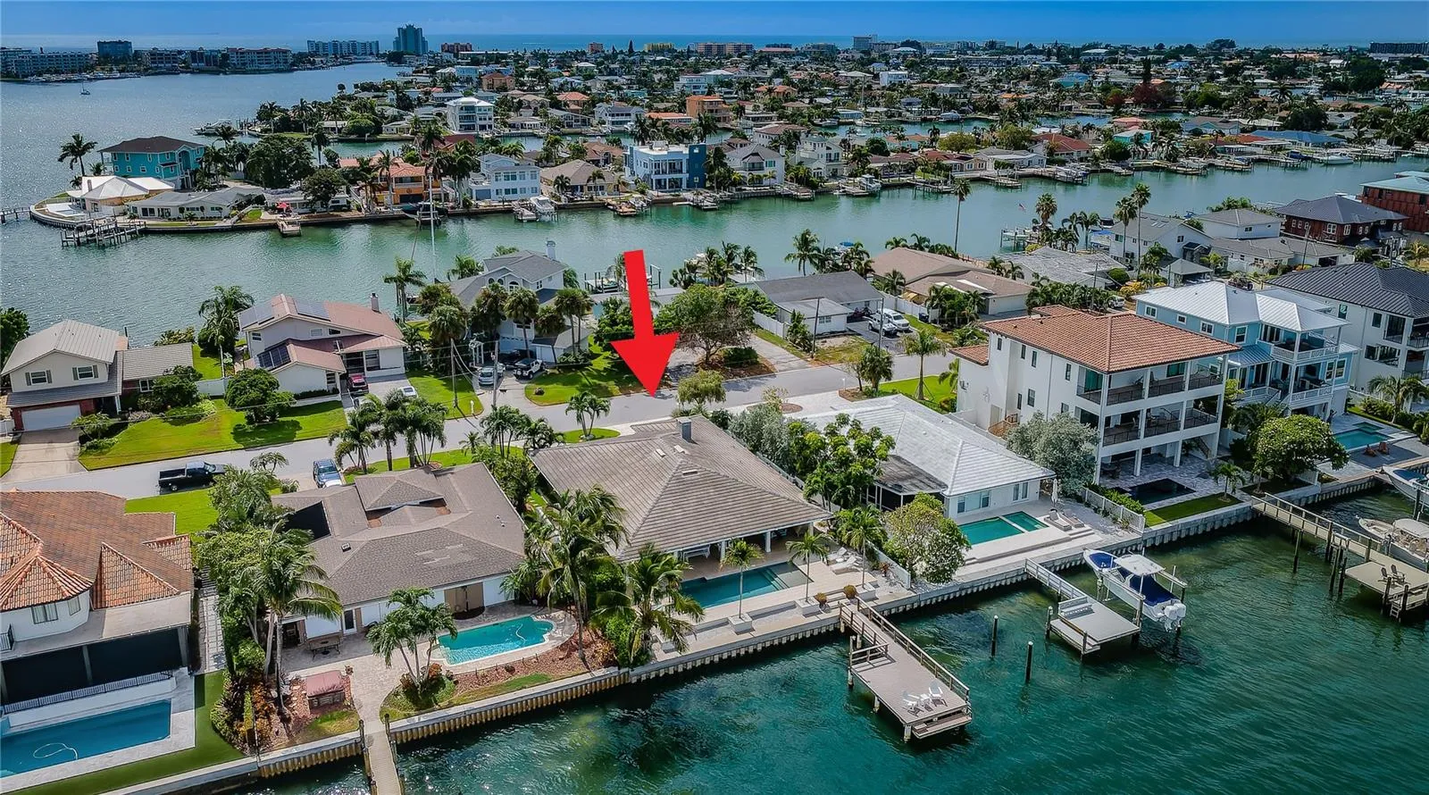 LOCATION, LOCATION, LOCATION! Isle of Palms. BIG Water! Imagine beginning each day with stunning sunrises from your personal piece of waterfront paradise in Treasure Island. Tucked away in a cul-de-sac at the end of this neighborhood on the BIG water, your new home awaits you. This home represents not just a dwelling, but an affluent lifestyle of leisure, luxury, and unprecedented pride. With 68 feet of waterfront living, allowing effortless access to the Gulf of Mexico, unobstructed panoramic views and tropical backdrops, one will never want to leave home. This home offers three bedrooms, an additional BONUS room and three bathrooms. Renovated, yet keeping the old Florida feel, the terrazzo flooring found throughout the home, exudes classic style to an open and airy floor plan, creating an aura of charm, coziness and sophistication all at once. The open floor plan offers both a living room and spacious family/Florida room overlooking the water, lending to the entertainment of friends and family where memories are waiting to be made. Want to spice up your culinary skills? Your kitchen awaits you. Quartz countertops with a breakfast bar, Jennair WIFI double ovens, a cooktop, all while surrounding oneself with inspiring and impressive waterfront views. Want to catch our stunning sunsets tonight? You’ll be minutes away from Treasure Island Beach, recognized as the #1 beach in the country per Trip Advisor. Ready to wind down the day? Take a relaxing swim in your own personal and private oasis. Rise the next morning and repeat all over again.