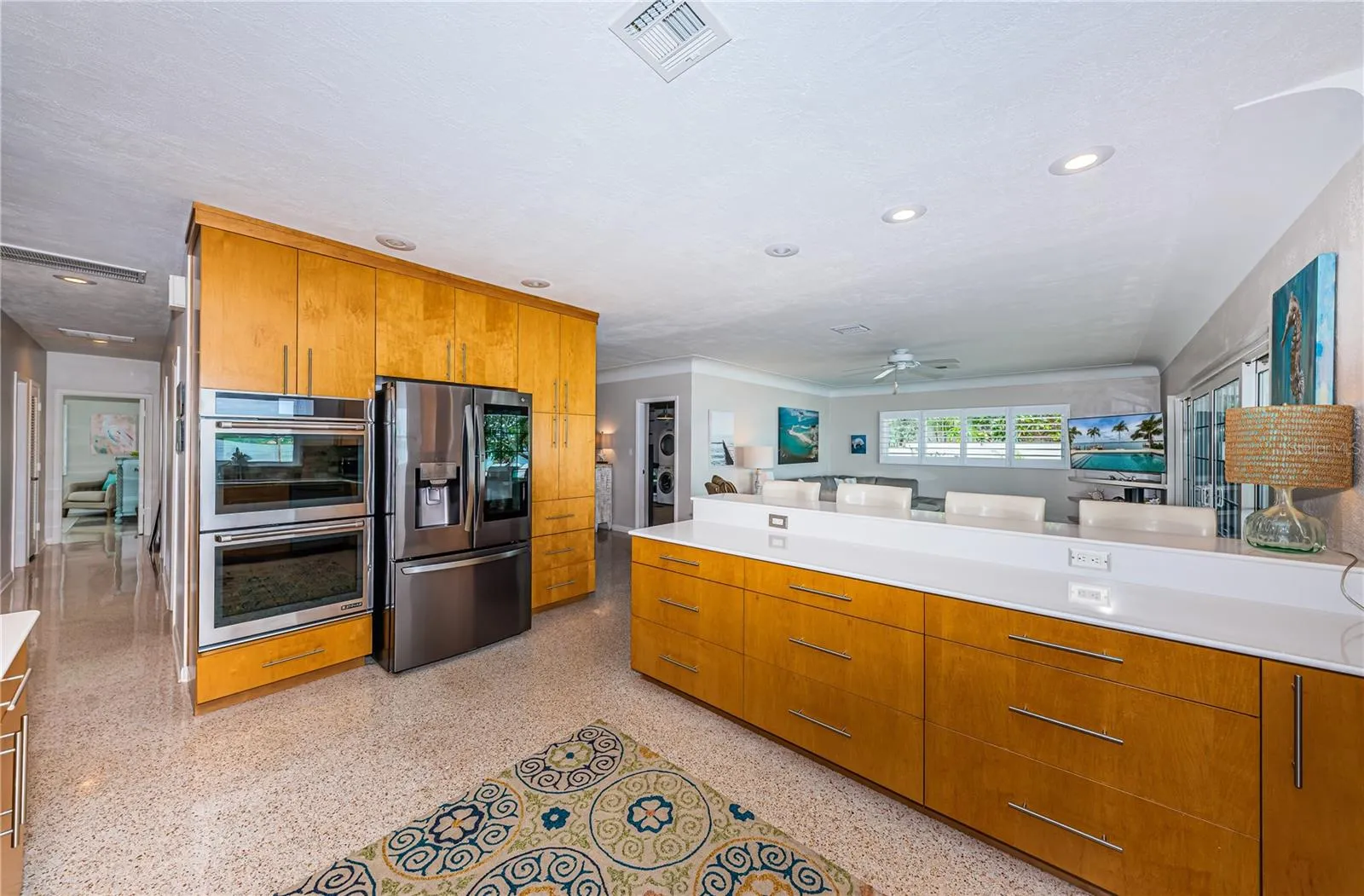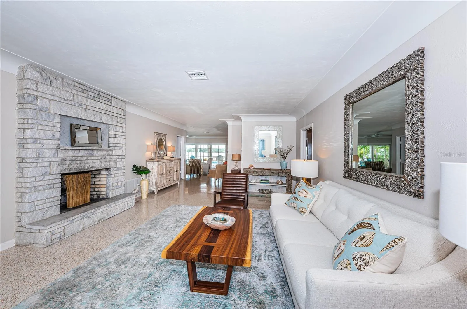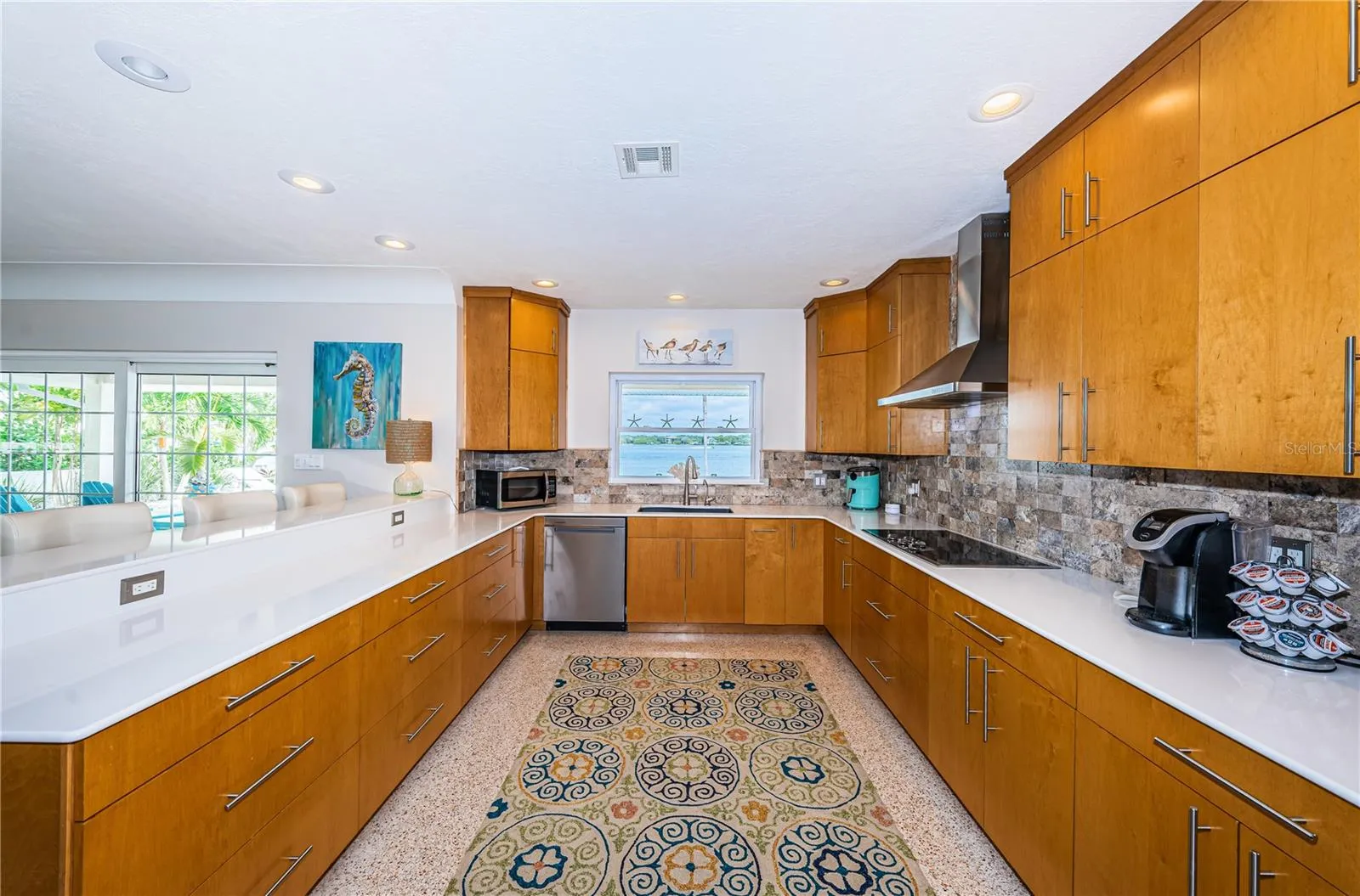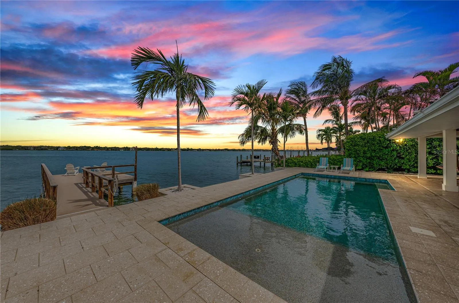 LOCATION, LOCATION, LOCATION! Isle of Palms. BIG Water! Imagine beginning each day with stunning sunrises from your personal piece of waterfront paradise in Treasure Island. Tucked away in a cul-de-sac at the end of this neighborhood on the BIG water, your new home awaits you. This home represents not just a dwelling, but an affluent lifestyle of leisure, luxury, and unprecedented pride. With 68 feet of waterfront living, allowing effortless access to the Gulf of Mexico, unobstructed panoramic views and tropical backdrops, one will never want to leave home. This home offers three bedrooms, an additional BONUS room and three bathrooms. Renovated, yet keeping the old Florida feel, the terrazzo flooring found throughout the home, exudes classic style to an open and airy floor plan, creating an aura of charm, coziness and sophistication all at once. The open floor plan offers both a living room and spacious family/Florida room overlooking the water, lending to the entertainment of friends and family where memories are waiting to be made. Want to spice up your culinary skills? Your kitchen awaits you. Quartz countertops with a breakfast bar, Jennair WIFI double ovens, a cooktop, all while surrounding oneself with inspiring and impressive waterfront views. Want to catch our stunning sunsets tonight? You’ll be minutes away from Treasure Island Beach, recognized as the #1 beach in the country per Trip Advisor. Ready to wind down the day? Take a relaxing swim in your own personal and private oasis. Rise the next morning and repeat all over again.