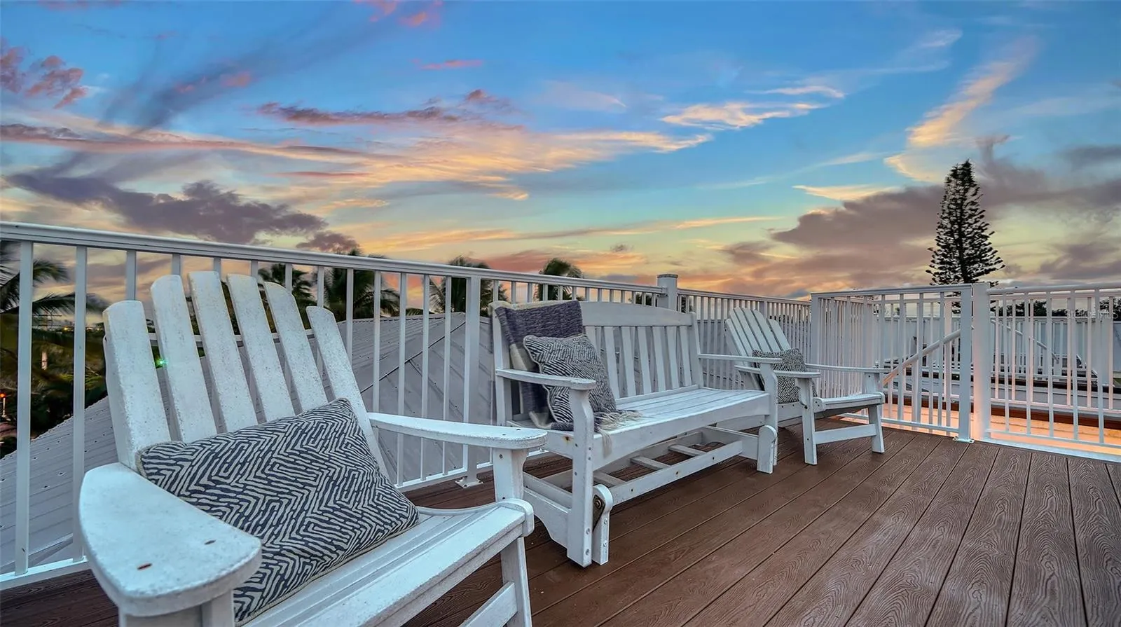 On the main floor of this fabulous property, you’ll be greeted by a spacious open concept kitchen and great room on the third floor, complete with a balcony boasting breathtaking Gulf views. Ideal for entertaining, this floor sets the stage for unforgettable gatherings. Take the festivities up a notch by ascending the circular staircase to the rooftop terrace, where you can relish world-famous sunsets and create lasting memories.