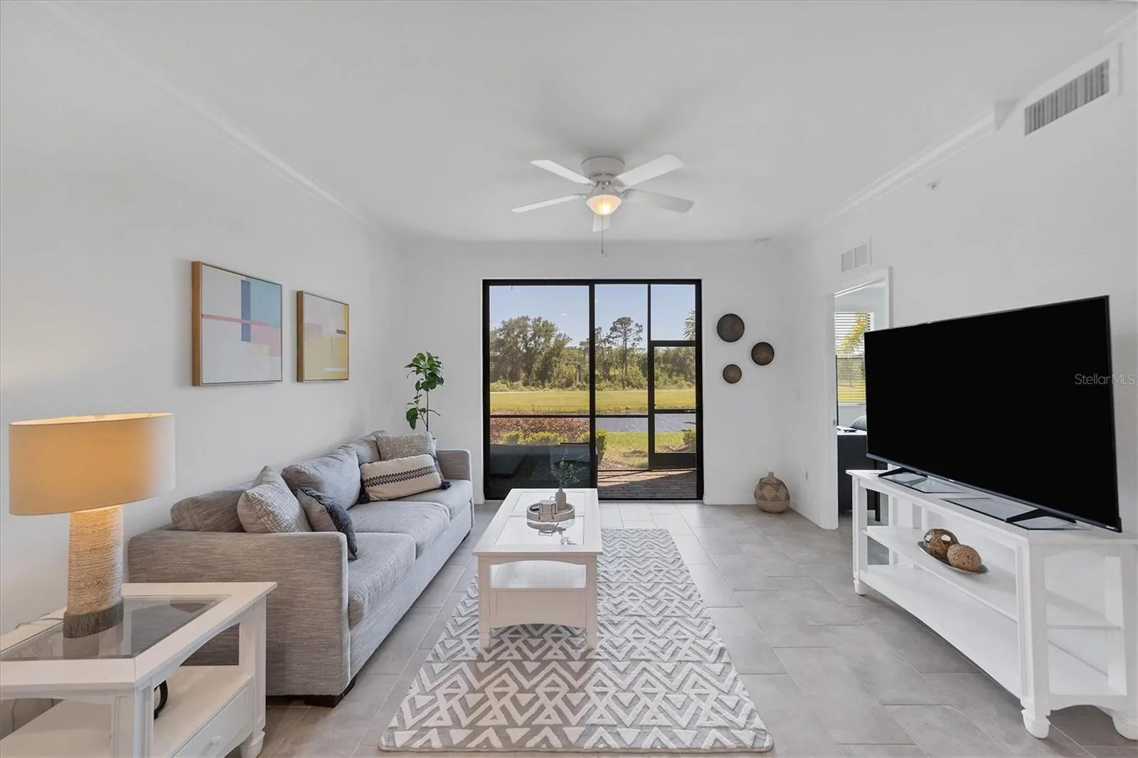 Huge price reduction! Interior Decor just updated by professional designer. Live like you’re on vacation forever!! This 22-month-old unit is ready for you to occupy as a fulltime resident, seasonal resident or rental investment property. One of the few communities that allow 30-day rentals up to 12x year. No stairs or elevator to worry about here, as it’s a first-floor unit. Enter through the front door and immediately walk into the large kitchen with quartz countertops, stainless steel appliances and wood cabinets. Plenty of room to entertain your guests and family with 2 breakfast bars, a small dinette area in the kitchen and combination dining and living area. Nicely spaced-out master bedroom with 2 walk-in closets and ensuite bathroom. A guest room with a hallway bathroom and laundry area. Walk out the sliding glass door to your lanai with screen door to the grassy/pond area overlooking the tee box. Sit on the porch and watch the golfers tee off right from the comfort of your own lanai. Not a golfer, no problem, take in the beautiful scenery of the pond and wildlife. However, the amenities in Lakewood National are the showstoppers! Golf, tennis, resort style pool, satellite pools, pickleball, spa/salon, fitness center with classes, tiki bar, brand new clubhouse with fine dining and bar just to name a few. Why are you still reading…. schedule your showing today and come see for yourself what makes this unit and Lakewood National one of the best values in Lakewood Ranch.