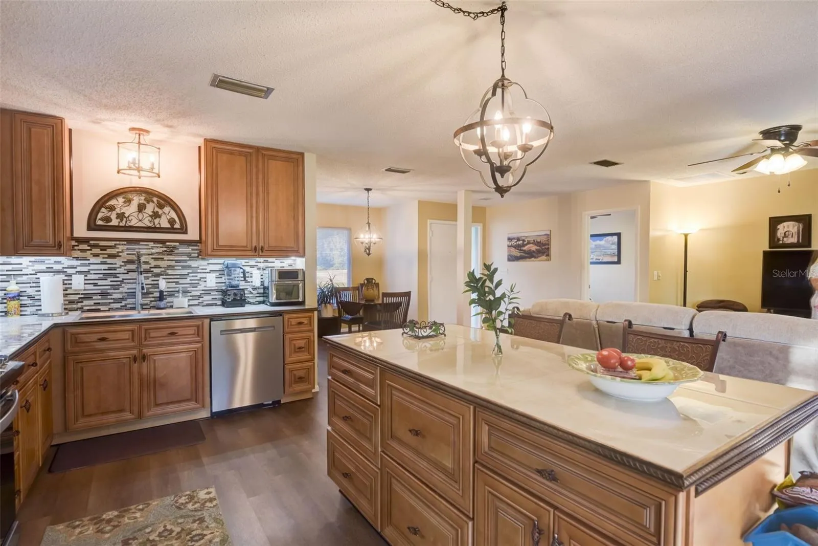 - Ceiling Fans(s), Open Floorplan, Kitchen/Family Room Combo, Primary Bedroom Main Floor, Window Treatments, Solid Wood Cabinets, Solid Surface Counters