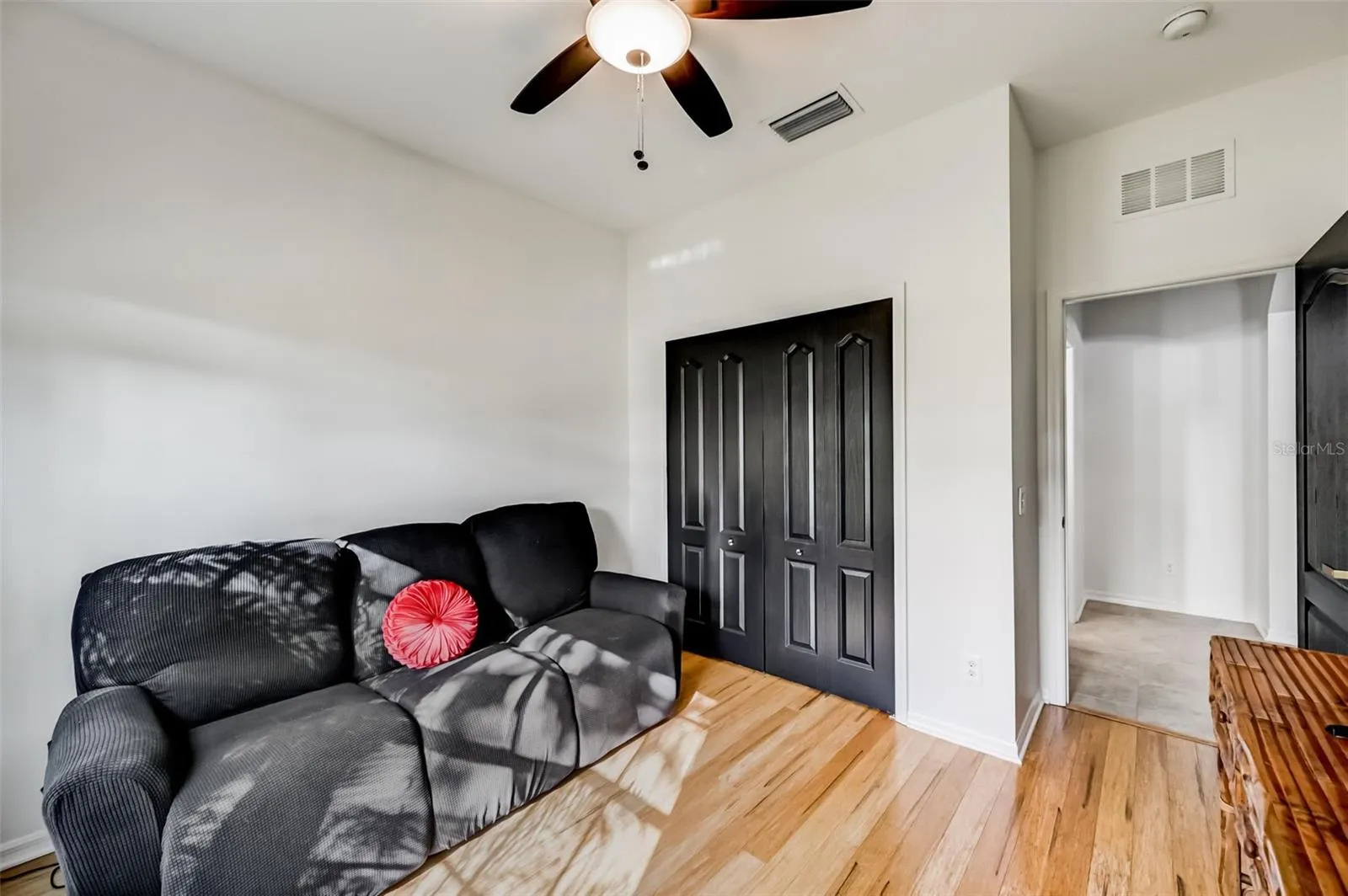 This inviting, updated home in the gated community of Creekside Preserve offers a split bedroom floorplan with 3 bedrooms and 2 bathrooms. A few highlights of this home include a brand new 2023 HVAC system, all new light fixtures and ceiling fans throughout, fresh neutral interior paint throughout, newer dual pane windows, bamboo floors, and newer French doors installed in the den/office room which is currently being used as the 3rd bedroom. Upon arrival, the screened and covered front porch offers a nice seating area while also providing an ideal space for welcoming guests or providing shelter for deliveries. Once inside, the wide foyer and entry hallway leads to the heart of this home where the thoughtfully designed central kitchen overlooks the living and dining area, and includes a large pantry closet, a stylish tile backsplash seamlessly integrated with the surrounding hardwood cabinetry, new recessed LED lighting, and stainless steel appliances. The primary bedroom suite is split from the additional bedrooms and features a large primary bathroom with a lengthy vanity boasting upgraded light fixtures, an oversized tile walk in shower, and a spacious walk in closet. The living space extends to the outdoors, where a screened and covered back lanai beckons for moments of relaxation and outdoor entertainment. This private oasis is the perfect retreat to unwind or entertain guests, sheltered from the elements. Other features include an attached 2 car garage, new kitchen cabinet hardware, upgraded door handles and door hinges thoughtfully chosen to match the freshly painted black interior doors, concrete landscape curbing at the front and rear of the home, exterior painting completed 3 years ago, a brand new 2023 garbage disposal, Levalor blinds installed 2 years ago, and the washer/dryer and refrigerator all replaced within 3 years. The Creekside Preserve community is a gated community within the growing Parrish area featuring a fenced playground, basketball court, and regular community events such as food trucks, book swaps, and kids’ craft days all organized by the community’s voluntary social group. The community is also located right off US-301, conveniently close to two Publix locations, the Ellenton Outlets, the new Parrish Community High School, access to both the Fort Hamer bridge and I-75 to cross the Manatee River, as well as many up-and-coming dining and entertainment options. All of this situated in a central location between Tampa, St. Petersburg, Lakewood Ranch and Sarasota.