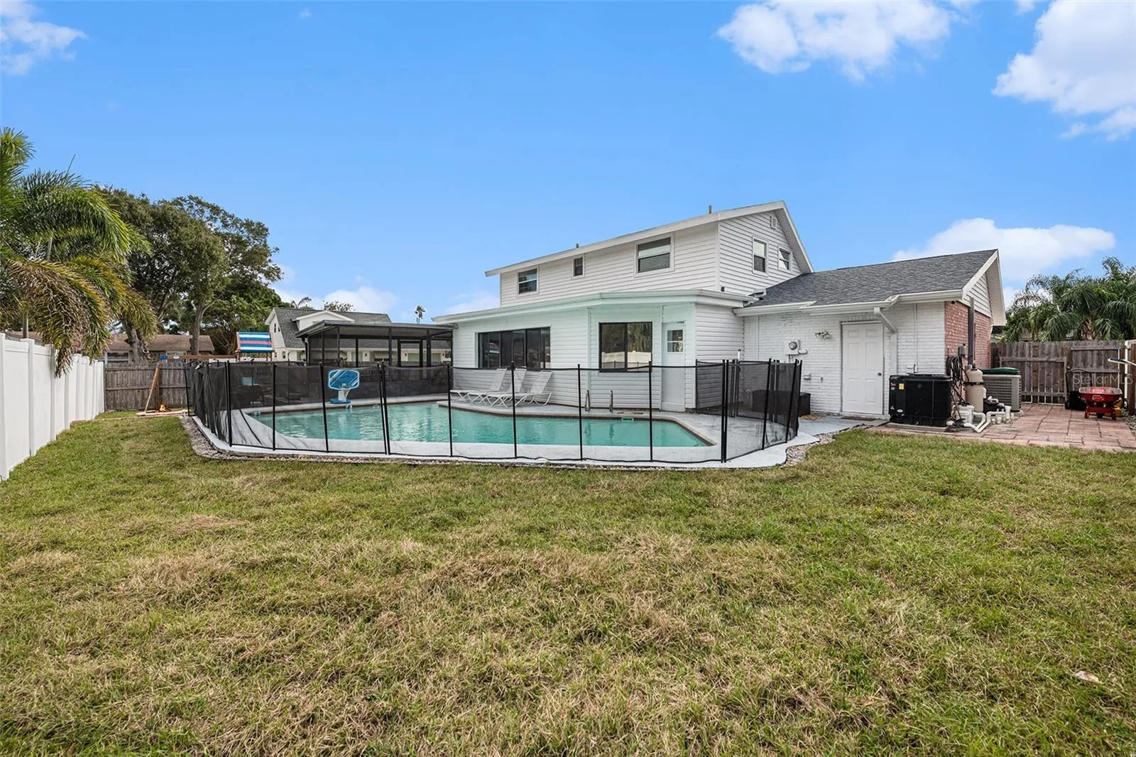 Welcome! This beautiful pool home has much to offer. The lovely entry patio is a great place to greet guests or relax with a cup of coffee. As you enter the home, you will notice the stunning champagne oak Pergo flooring that flows throughout the house (installed in 2021). The spacious living room leads to the dining area and the beautifully updated kitchen, which opens to the spacious family room overlooking the large backyard and sparkling pool.___The primary bedroom is on the first floor with a bath that offers a spa-like tub, separate shower, and double sinks.___Second floor offers three spacious bedrooms and full bath.___Just outside the lovely family room is a spacious screened porch with access to both the pool area and the side yard where there is ample room for storage of small boat and trailer. The sparkling pool offers safety fencing and expansive decking. The firepit is a great place to enjoy conversation with family and friends on a cool evening.____All this, plus an excellent location. Pinellas Trail is just a couple of blocks away, approximately two road miles from our beautiful Florida Beaches, close to schools, minutes to shopping, banks, library, St. Petersburg Colledge, VA Hospital, beautiful area parks, easy access to I-275, and much more. ___The location is in the County of Pinellas, which allows short-term rentals/Air B&Bs for those looking for an investment.___Flood Zone X and in Non-Evac Zone. There is NO HOA here. Plus, One Year, 2-10 Home Buyers Warranty.