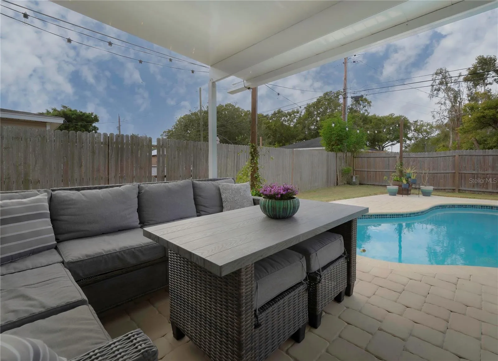 Step outside into your private backyard. Decked out with newer pavers, where a sparkling pool awaits, inviting you to cool off during warm Florida days or unwind under the stars in the evenings. The outdoor space is a true extension of the home, with a covered patio which creates a serene and peaceful atmosphere.