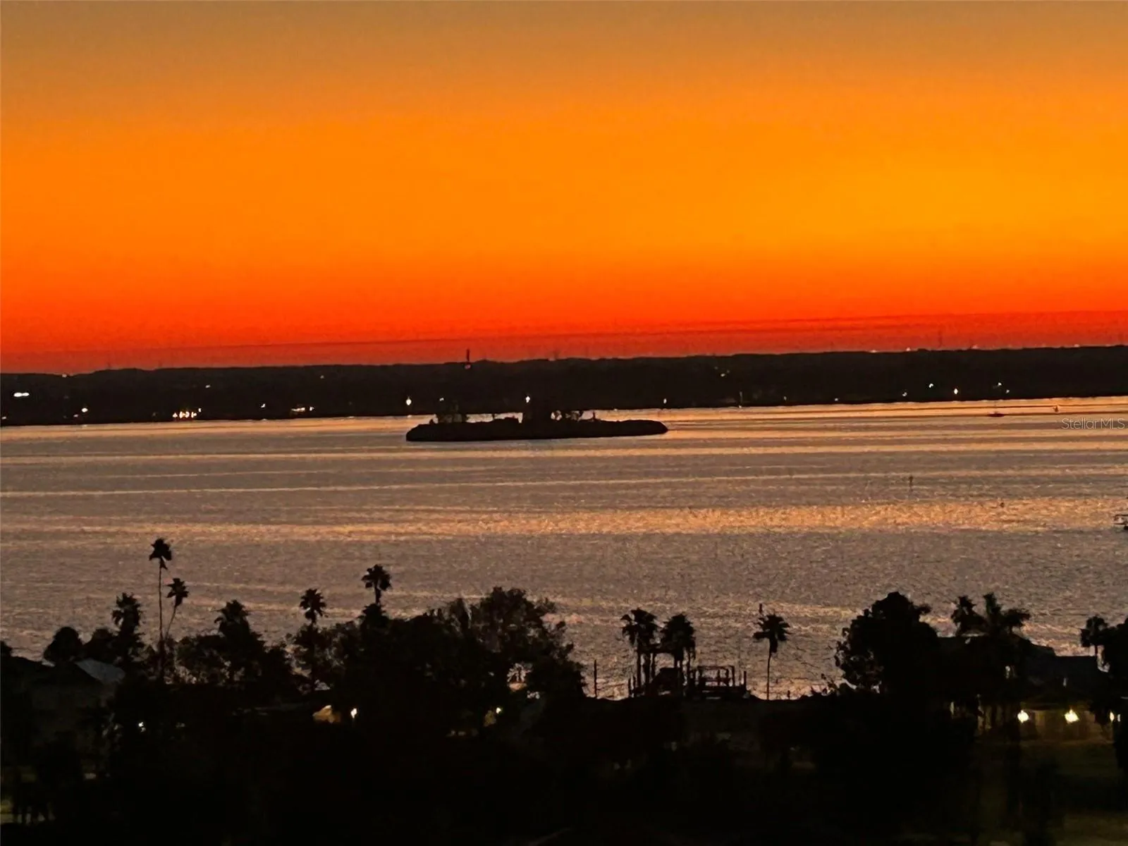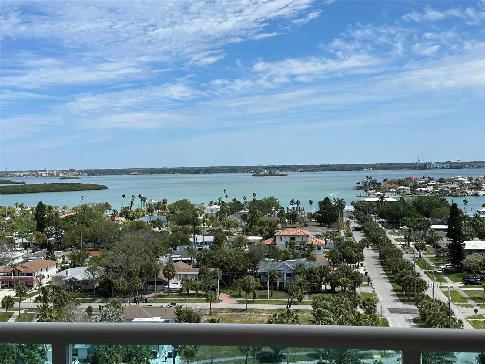 Sky-High living at 880 Mandalay Ave #C1114. Unparalleled coastal elegance with views of both the Bay and Gulf! This stunning 2 bedroom, 2 bathroom condo boasts breathtaking water views from every interior location as well as from both private balconies. This unit has 2 Nest thermostats for the 2 AC system. Fully renovated in 2021 including all new cabinets, light fixtures, mirrors, ceiling fans, bathroom sinks, toilets, vanities, faucets, and hardware. The kitchen is adorned with solid wood stained cabinets, quartzite countertops, LG stainless steel appliances and a pantry for ample storage. An inviting open floor plan with high ceilings, complemented by an abundance of natural light, living and dining room combo with triple slider to private balcony with views of both the Bay and the Gulf, inside utility closet with stackable washer and ventless dryer plus additional interior cabinet side storage. Porcelain driftwood floor tile throughout; living area and master bedroom include motorized dimming draperies (remote and Alexa capable). The master bedroom suite grants access to the 2nd private balcony, His & Her walk-in closets, carrara marble shower tile and glass enclosure. Guest bedroom includes a built – in Murphy Bed with side shelving that can also fold down into a desk for home office use.