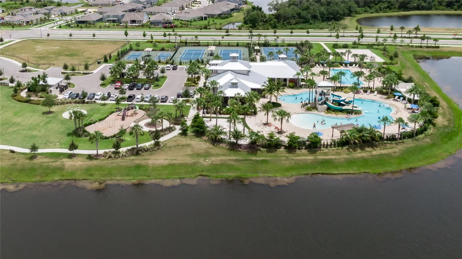 Welcome to the resort style community of WATERSET! Custom interior and exterior high velocity remote controlled fans! ** SOLAR **DAVID WEEKLEY **TANGELO model ** This spacious Contemporary Ranch style home is suited with all the upgrades AND is situated on an oversized waterfront lot! ** ALL bedrooms are split on the first floor** 3,769 HEATED SQ FT!!