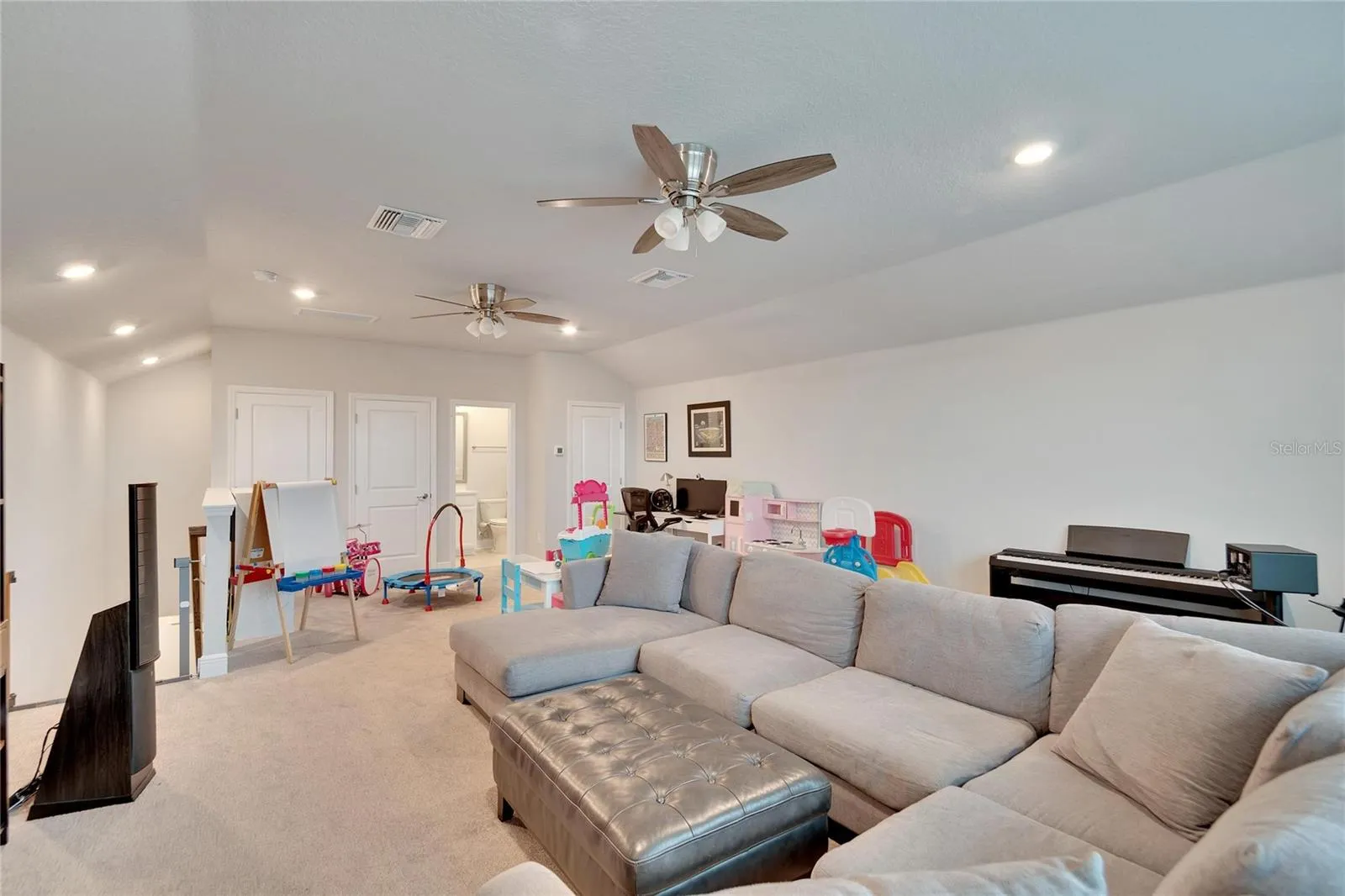 Pulling up to the home you will notice the new brick paved driveway, lush landscape, spacious lawn and oversized front porch to sit and soak it all in! The beautiful frosted front door opens up to a grand entry! The luxury vinyl wide plank floors, natural light, high trey ceilings, 8ft doors and arches throughout make this home very grand, warm and welcoming! To the left is an additional office space with views to the front landscape! Just past the office is the left wing hosting two large bedrooms and a seperate full bath with quartz countertops and dual sinks! This grand entry leads to the “HEART OF THIS HOME”! The combined living, dining, and kitchen are STUNNING! The huge sliding doors open up to the panoramic screened outdoor lanai with a custom outdoor fan! The lanai is a luxurious gathering and entertaining space overlooking water and spectacular sunsets! This chef’s kitchen is TOP TIER, starting with the pantry! The pantry is an entire room itself with custom built solid wood shelving! The appliances in this home are equipped with gas, the 5 burner range with the exterior venting hood are sure to be a statement piece, in addition is a built-in warming drawer, a separate built-in gas oven and microwave! The 42in solid wood soft close cabinets with recessed lighting, added outlets for designing and 4 custom glass pane doors are the cherry on top! The countertops are thick upgraded quartz with a beautiful ceramic farmhouse sink! Off the main living is the half bath perfectly situated with an exterior door for guest or outdoor gatherings! Also right of the main living you see the second wing of the home, This wing hosts a large ensuite bedroom with a full bath, entry to the upstairs bonus room, seperate laundry room with cabinets, and entry to the tandem 3 CAR garage! The garage floors are epoxied, has new built in overhead racks, TANKLESS hot water heater AND an added attic that is equipped with plywood flooring and stairs for additional storage space! The wooden railing will guide you up to the massive bonus space! The windows in this bonus space bring tons of natural light, not to mention the views, also having a FULL BATH making the opportunities endless! Back downstairs your main suite is nestled off the first floor! This is a TRUE sanctuary, many windows keep the views coming! The en suite is remarkable, from the floor to ceiling tiling in the upgraded “SUPER SHOWER” to the large rain shower heads! The closet in this suite is unbelievable, tons of space with so much opportunity! To truly appreciate this home, you must experience all the special touches and features it has to offer! Waterset boasts a wealth of amenities, including 4 resort-style pools, miles of scenic walking trails, multiple playgrounds, splash pads, dog parks, state of the art turf sports complex, and much more! 35 mins South of McDill Air Force base, the Tampa INT Airport, 35 mins North of the world’s best beaches!