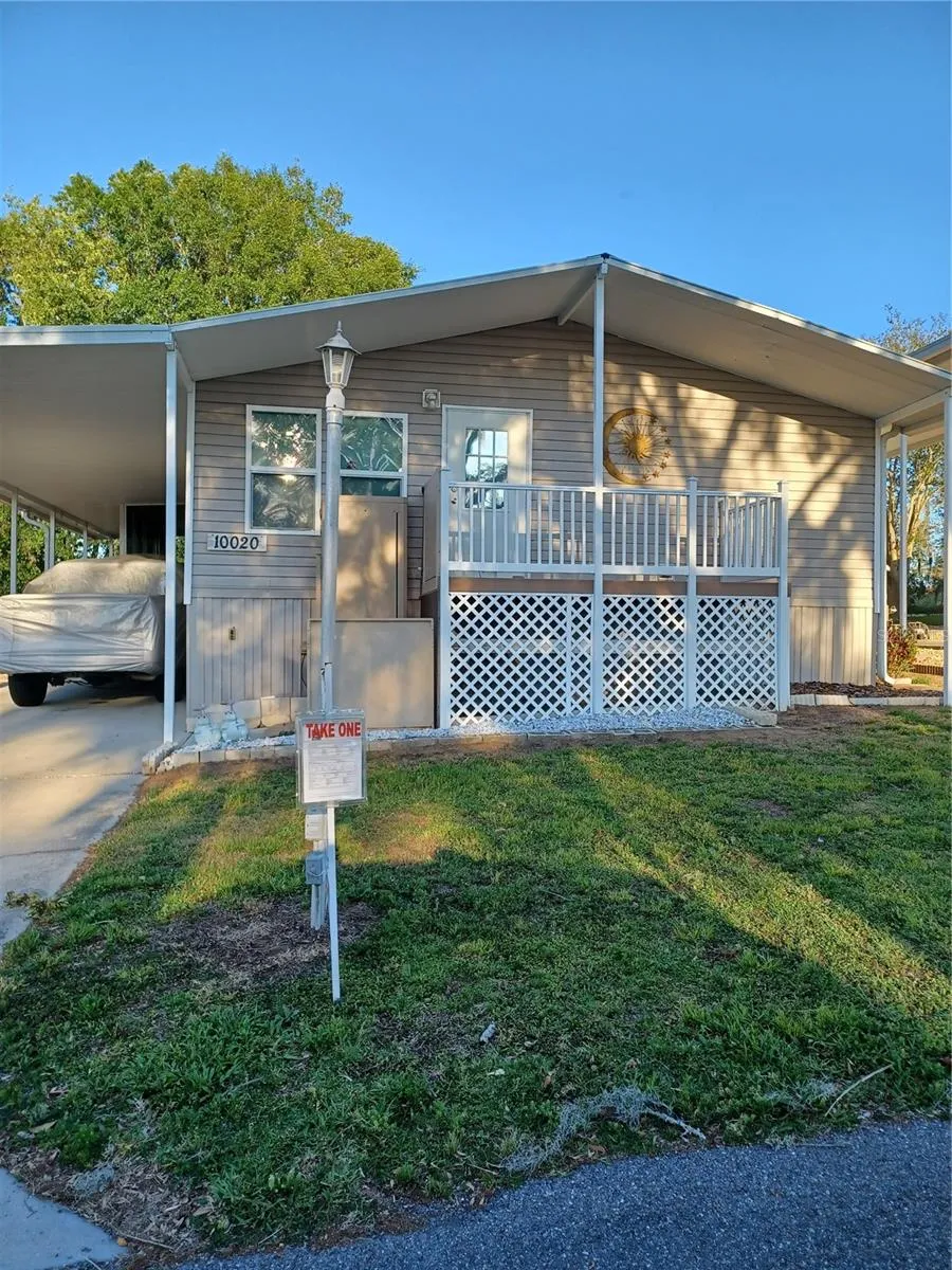 Country Aire Manor is a 55+ community centrally located between Orlando and the Gulf beaches making it convenient to show your out-of-town guests the attractions that makes Florida such a desirable place to live. As you approach the property you will see the lift and ramp making it easy access into the home. The screened porch is great for the early morning or evening relaxation. Enter the side entrance into the dining area and notice the open living/dining room floor plan. The corner fireplace in the living room catches your eye as you enter the home. The fireplace is currently equipped with an electric insert but can easily be converted to a wood burning fireplace. The kitchen was remodeled in 2017 and has plenty of cupboard space, a reach in pantry, granite countertops, stainless steel appliances and island with electric. Off the breakfast nook is a laundry closet. The 2nd and 3rd bedrooms are carpeted, and both have walk in closets. The master bedroom is spacious enough for a larger bedroom suite and also has a walk-in closet. Master bath has a garden tub, separate shower and dual sink vanity. Air conditioner new in 2023, roof replaced in 2021. Newer flooring in 2016. Furnishings are negotiable. Occupancy negotiable. This community will keep you busy with many amenities such as pool, tennis courts, shuffle board courts and get togethers at the clubhouse.