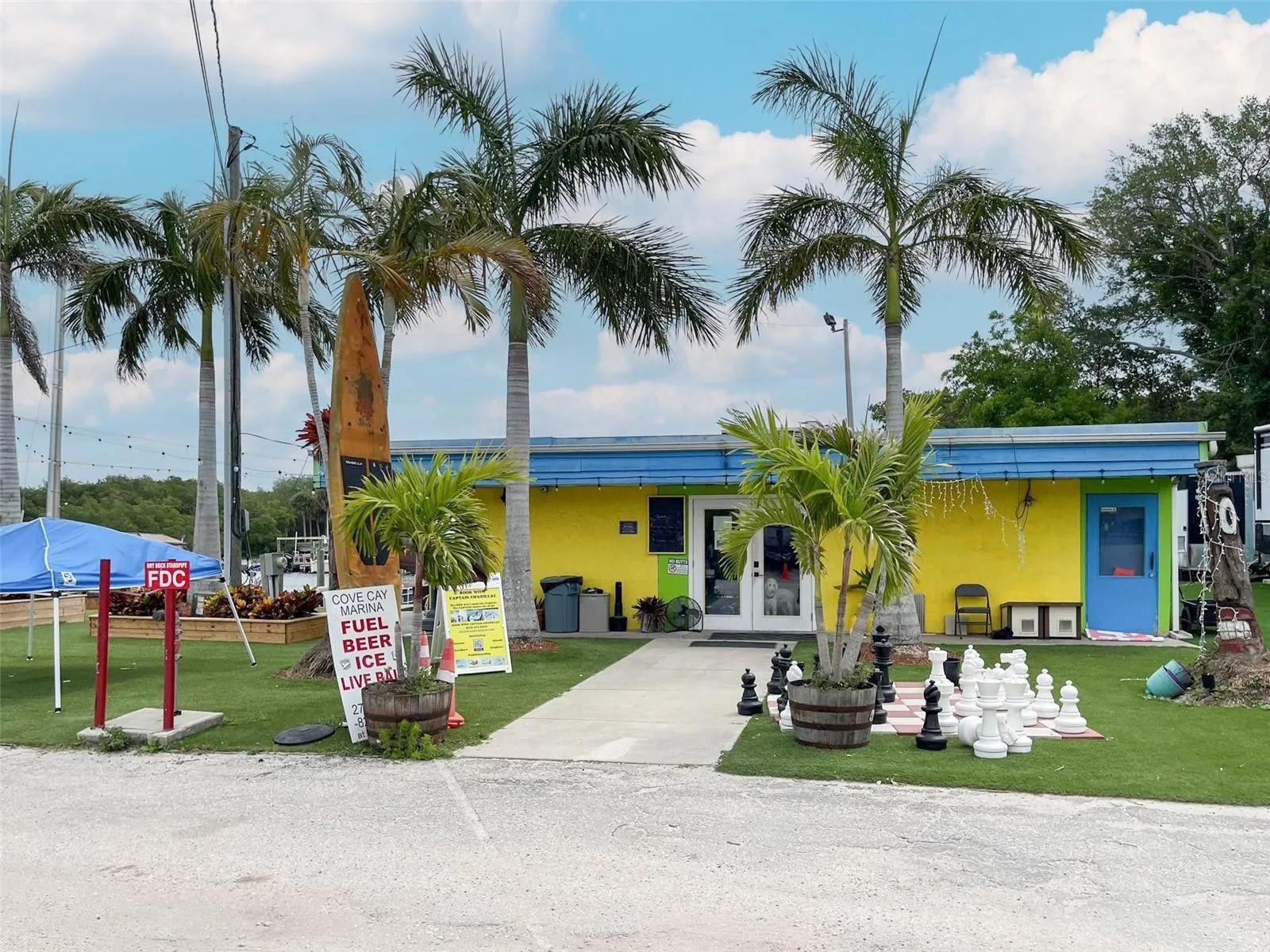 - To visit Cove Cay, simply use the frontage road off US Hwy 19, heading north from Whitney Road. For a comprehensive tour of our community, including views of our marina and golfing clubhouse, enter through the main front gate. The building you're looking for is conveniently located at the very end of the complex. For a faster route, opt for the back gate on Haines Bayshore Road. Here, the guard will provide you with a guest pass for parking.