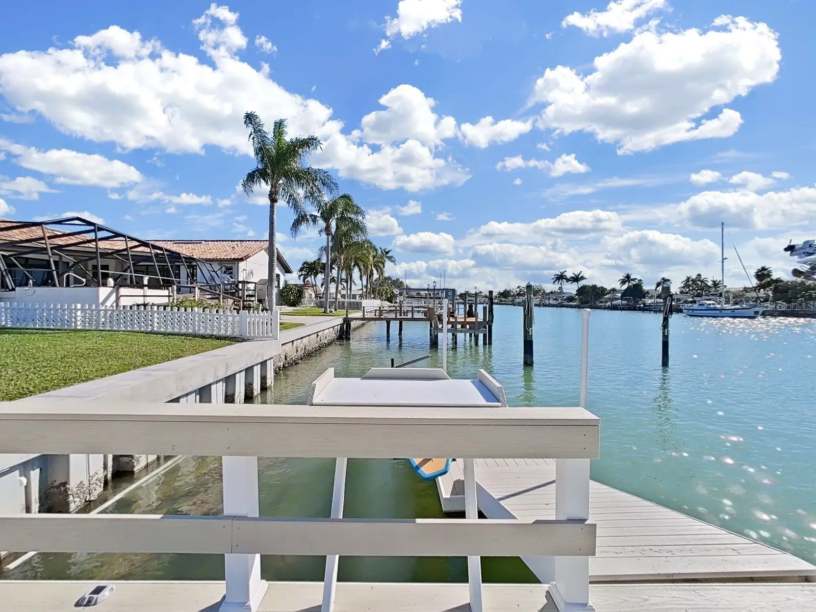 Back on the Market, Buyer Financing Fell Through on Previous Contract. Gulf of Mexico Breathtaking Sunset Views with West Facing Waterfront Home! 85 Ft of Deep Waters in Desirable Isle of Capri with direct access to the Gulf of Mexico thru John’s Pass! Stunning Tropical outdoor waterfront living space and Boaters Paradise that has all been updated and awaits you to just bring your Boat! Over $70,000 in recent Exterior Updates! New 500 Sq Ft Composite Boat Dock in 2022 with Water, Electricity, Fish cleaning station plus a New custom Floating Dock with racks for Kayaks and paddle boards. 19,000 Pound Deco Boat Lift was Updated in 2023 including bunks, cables, belts, and gear-boxes. All dock Pilings are Newly Vinyl-wrapped. New Sea Wall in 2022. Over $50,000 New Solar Panels installed in 2021. New AC and HVAC in 2022. New Variable Speed Pool Pump and Filter in 2022. This beautiful 2,545 Square Ft Block Home is situated on a large quiet Cul-De-Sac Lot with a circular driveway. Open floor plan welcomes you into a huge living room and formal dining room with a newly installed electric fireplace, sliding doors with Hurricane Shutters leading to a brick pavered – Lani and a gorgeous pool overlooking spectacular water-views! Updated kitchen is light and bright with Granite countertops and Breakfast Bar. Three Beautiful full Baths are New, the Home feature two Primary Bedrooms with private Baths and private doors leading to the Lanai, Pool and Backyard. Third Bedroom is also a generous size with large closets. Newly updated spacious Laundry room. Ceramic Flooring through-out (No Carpet) Two car garage with newly resurfaced flooring. (No HOA) Close to Johns Pass, St Pete Beach and Madeira Beach, fine dining, entertainment and St Pete airport. Perfect for entertaining and living the Florida Dream!