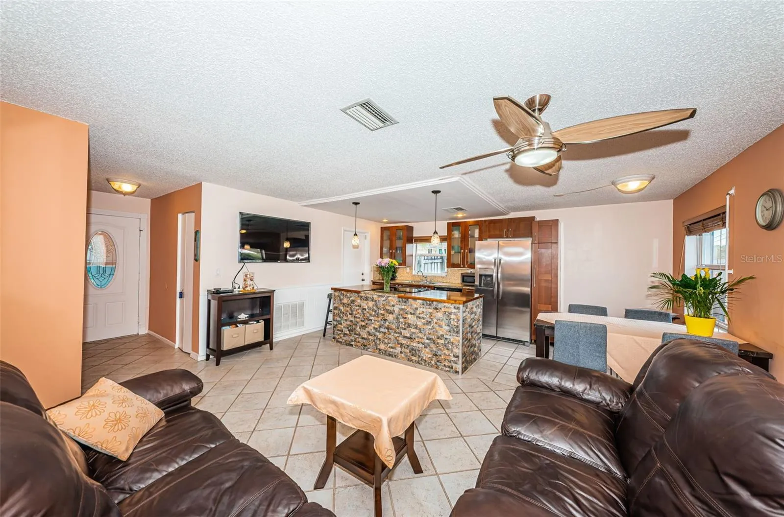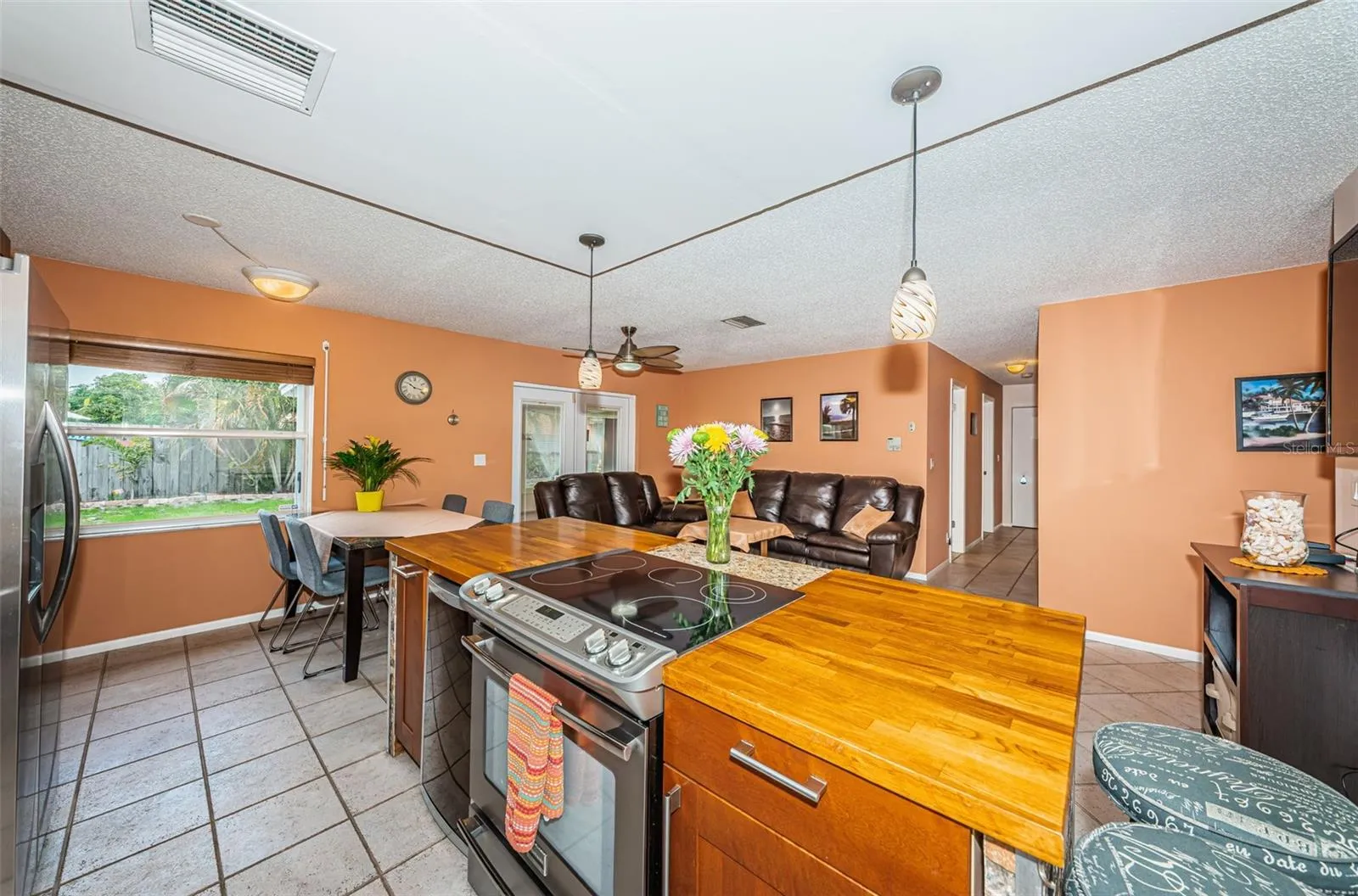 BRAND NEW ROOF (Jan. 2024) on main house and on large, 360 sqft. Florida room! 2- Year HOME WARRANTY OFFERED (Choice Home Warranty) Well-kept and move-in ready 3 bedroom, 2 bath, 1-Car Garage home on 70 x 100 corner lot, in NO FLOOD AREA, walk to Largo Rec Center with Olympic-size pool, Pickleball, Line-Dance & fitness classes, Largo Municipal Golf course, shopping (Publix), minutes to Indian Rocks Baptist Church & private school, restaurants, and 5 minutes’ drive to Indian Rocks Beach! 360 sqft window-enclosed and cooled (wall-unit A/C) porch invites for grand entertaining and large family gatherings! Have your kids and pets play in the pool-size, all-fenced backyard, landscaped with tropical palms and open patio for daily, leisurely barbecues while enjoying magical sunsets. Home is being offered fully furnished and perfectly suits itself for a “snowbird” owner (2nd home), a rental, or primary residence, close to schools and amenities. Home features a newer kitchen with stainless steel appliances, including a new refrigerator (Dec. 2023), dishwasher, range, wine cooler, unique custom backsplash, counters & light fixtures, all tile flooring throughout, ceiling fans, GERMAN-manufactured SHUTTERS on every window for protection & double locks on doors. The 1-Car garage houses an oversized “Whirlpool” washer (2 y. old) & dryer. Hurry, and see this lovely home today and make it your own!
