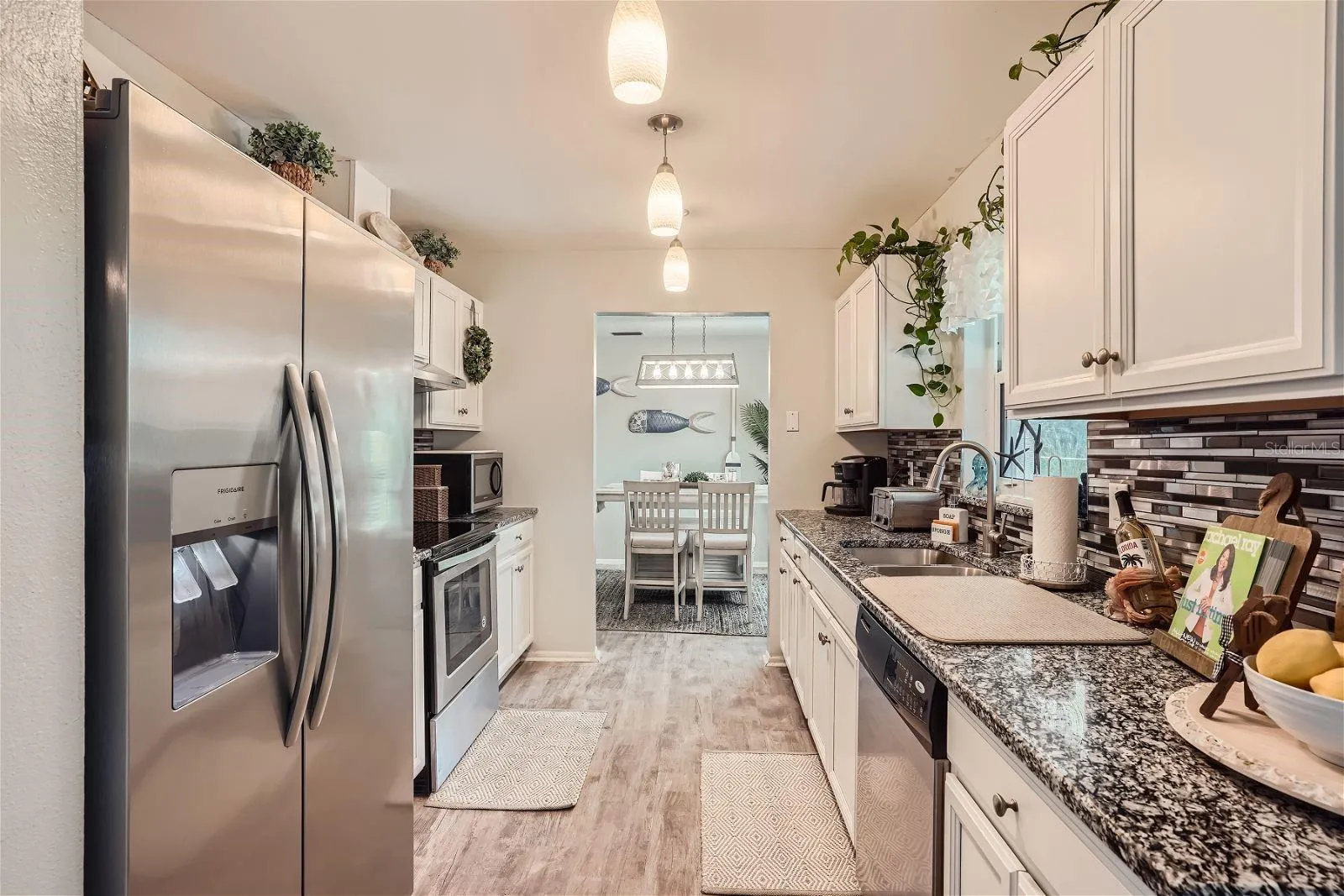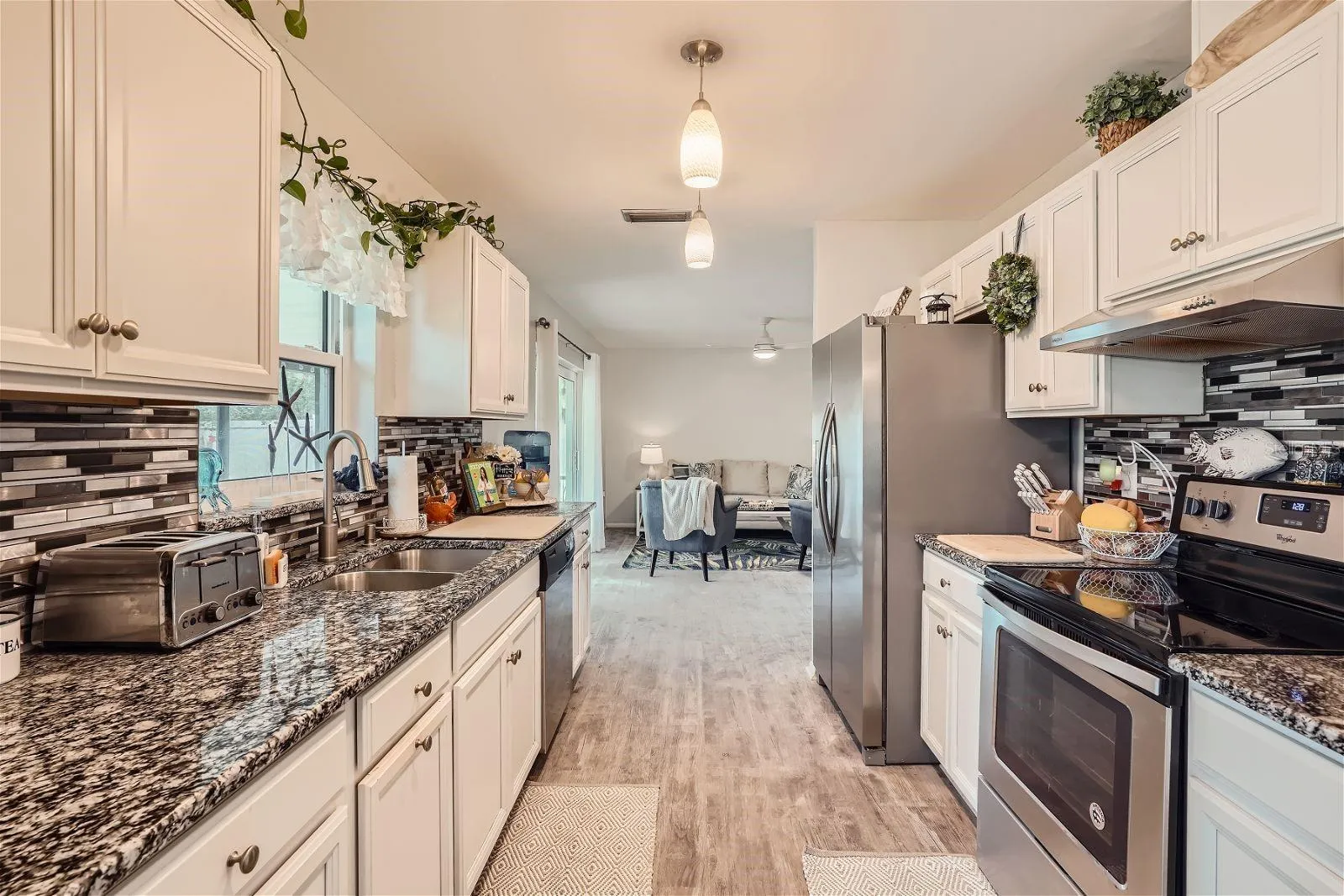 Come take another look! The popcorn ceilings have been removed, lighting and fans updated, new paint, and changes were made for a more open concept. Welcome to this lovely pond home in the highly desirable Northwest Bradenton area. This home is located in an area with no HOA, no CDD, and no deed restrictions. It features 3 bedrooms, 2 baths, a 2-car garage, a remodeled kitchen with granite counter tops and stainless steel appliances, newer flooring, and interior paint. The home had hurricane windows and doors installed in 2019, AC was installed in 2018, and the water heater in 2023. The master bedroom is large with it’s own en-suite bathroom. The large yard is fully fenced with plenty of room for a pool, and with the pond-fed sprinkler system it makes it easy and inexpensive to maintain. Watch all the birds, turtles, and otters in the pond located directly behind the house. This home is located just minutes from Anna Maria Island, Warner’s Bayou boat ramp, Robinson Preserve, Palma Sola Botanical Park, and DeSoto National Park.