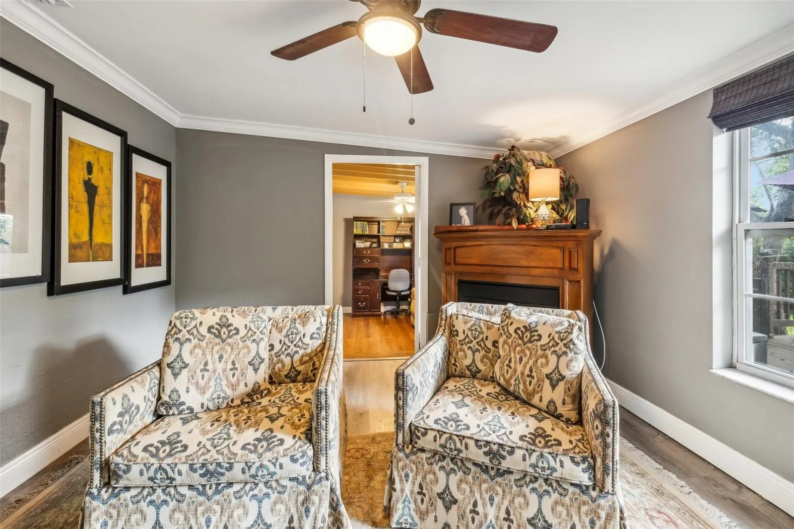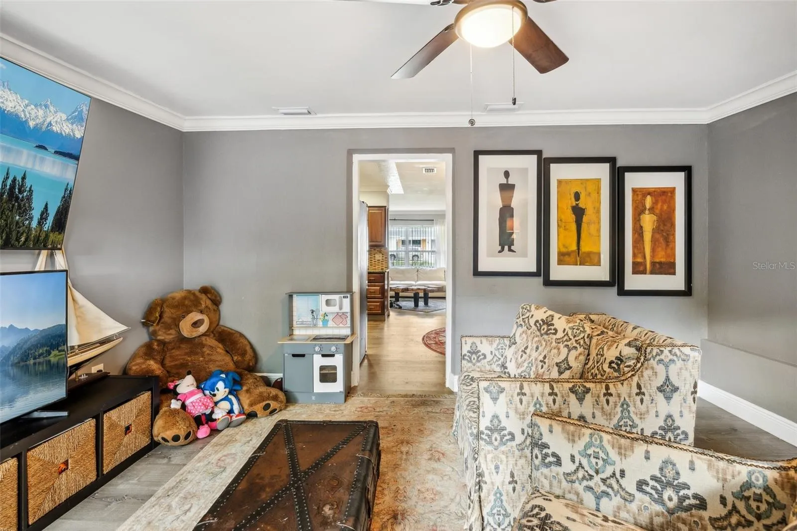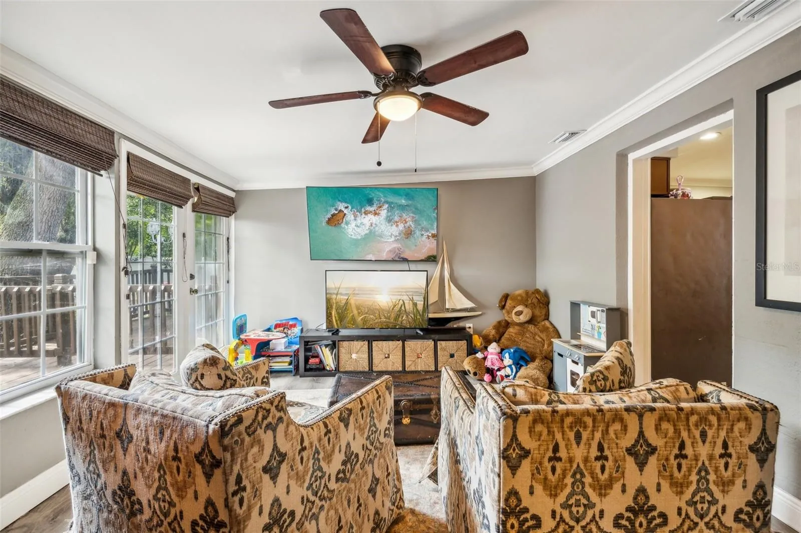 - Ceiling Fans(s), Crown Molding, Living Room/Dining Room Combo, High Ceilings, Stone Counters, Solid Wood Cabinets