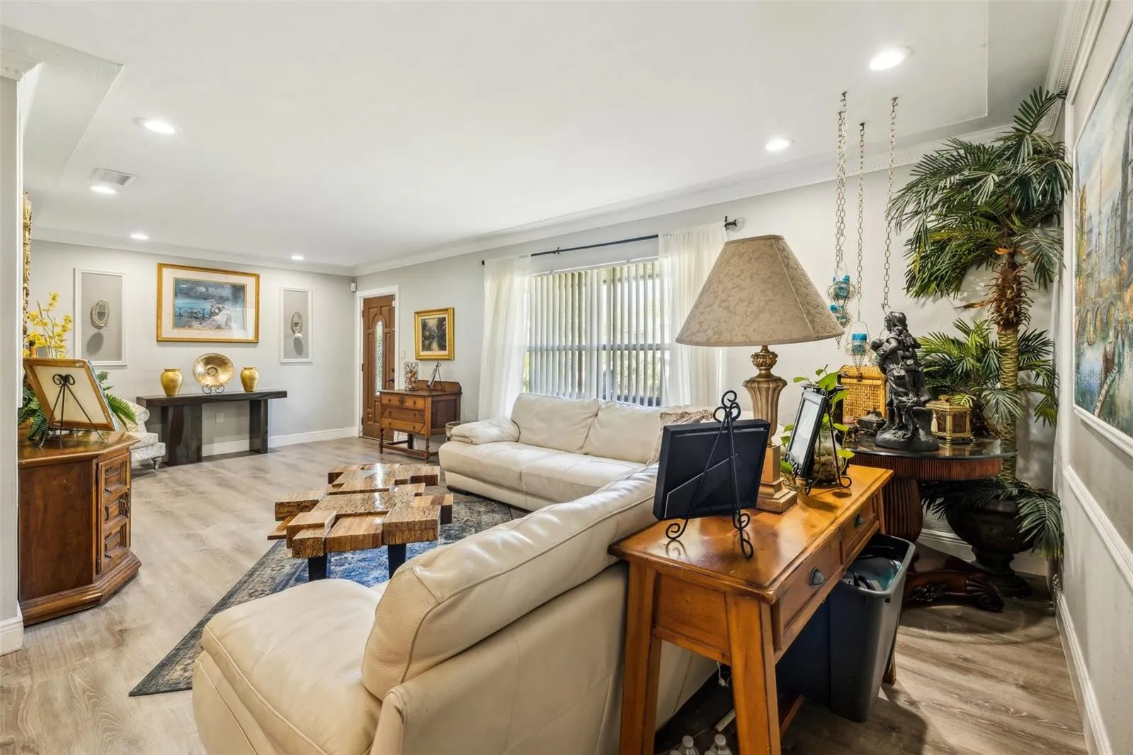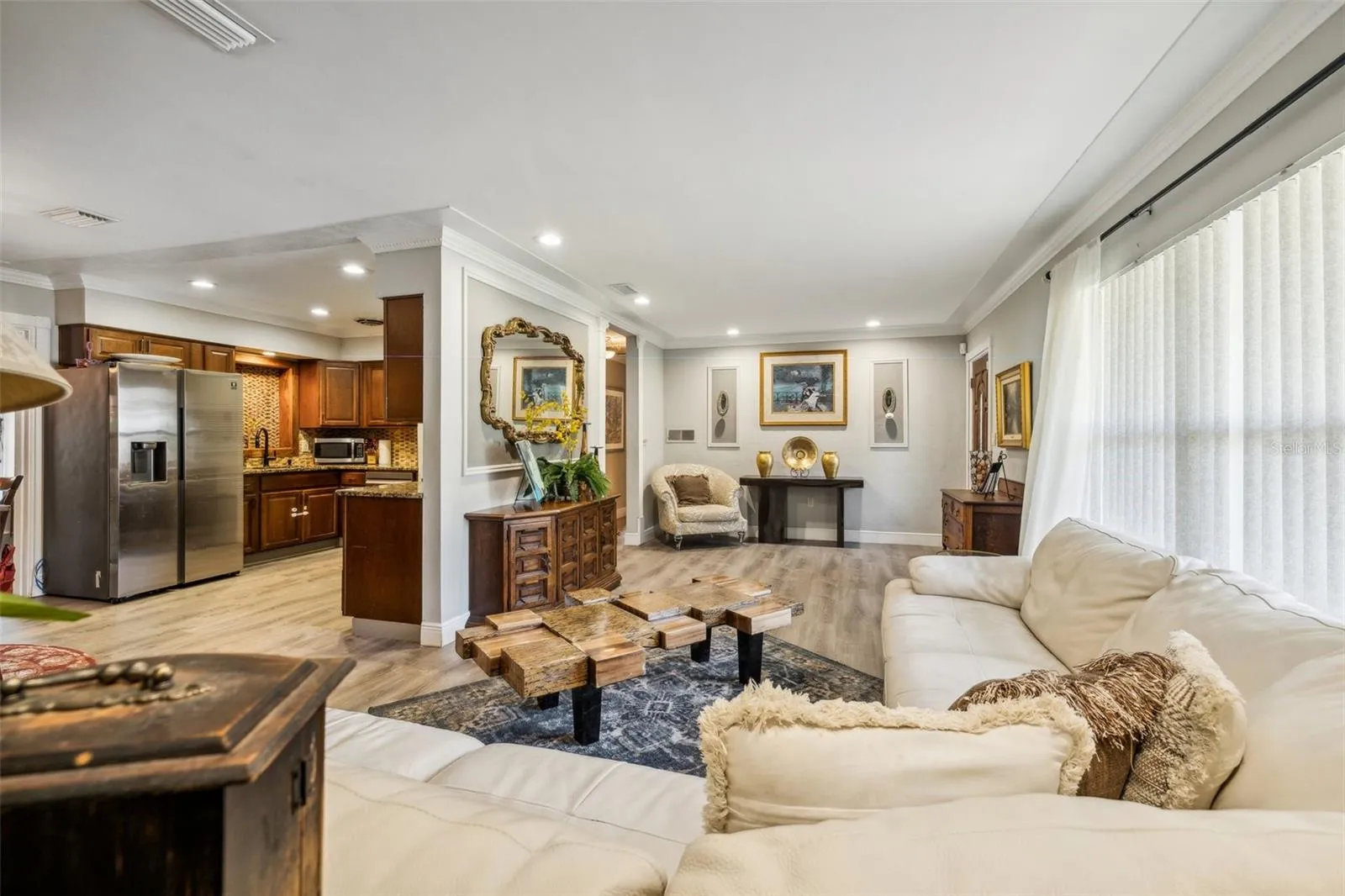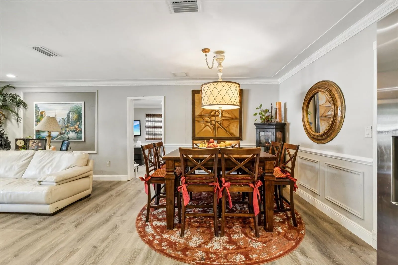 “MAJOR PRICE IMPROVEMENT!” Welcome to your dream home in North St. Petersburg! This captivating 4-bedroom, 3-bathroom residence spans over 2,100 square feet, offering a perfect blend of style, comfort, and functionality. Boasting a spacious mother-in-law suite complete with its own kitchen, bathroom, and living area, this home is designed to accommodate a variety of living arrangements. The thoughtful layout flows seamlessly from the inviting entryway to the spacious living room, and formal dining room, and into the well-appointed kitchen, creating an ideal space for both everyday living and entertaining. The kitchen is a culinary enthusiast’s delight, featuring elegant granite counters, rich wood cabinets, and top-of-the-line stainless steel appliances. You will find beautiful luxury vinyl plank flooring throughout the home and recently painted baseboards and crown molding. The spacious primary bedroom boasts a large closet and ensuite bathroom. The home also includes two additional bedrooms and a bonus room which can be used as an office or entertainment space. The property has been meticulously maintained, with a new roof installed in December 2019, ensuring comfort and peace of mind for years to come.