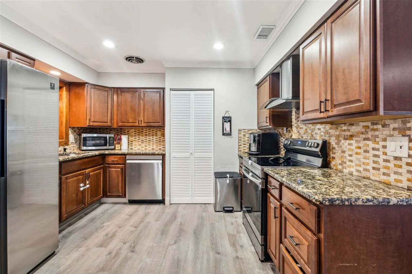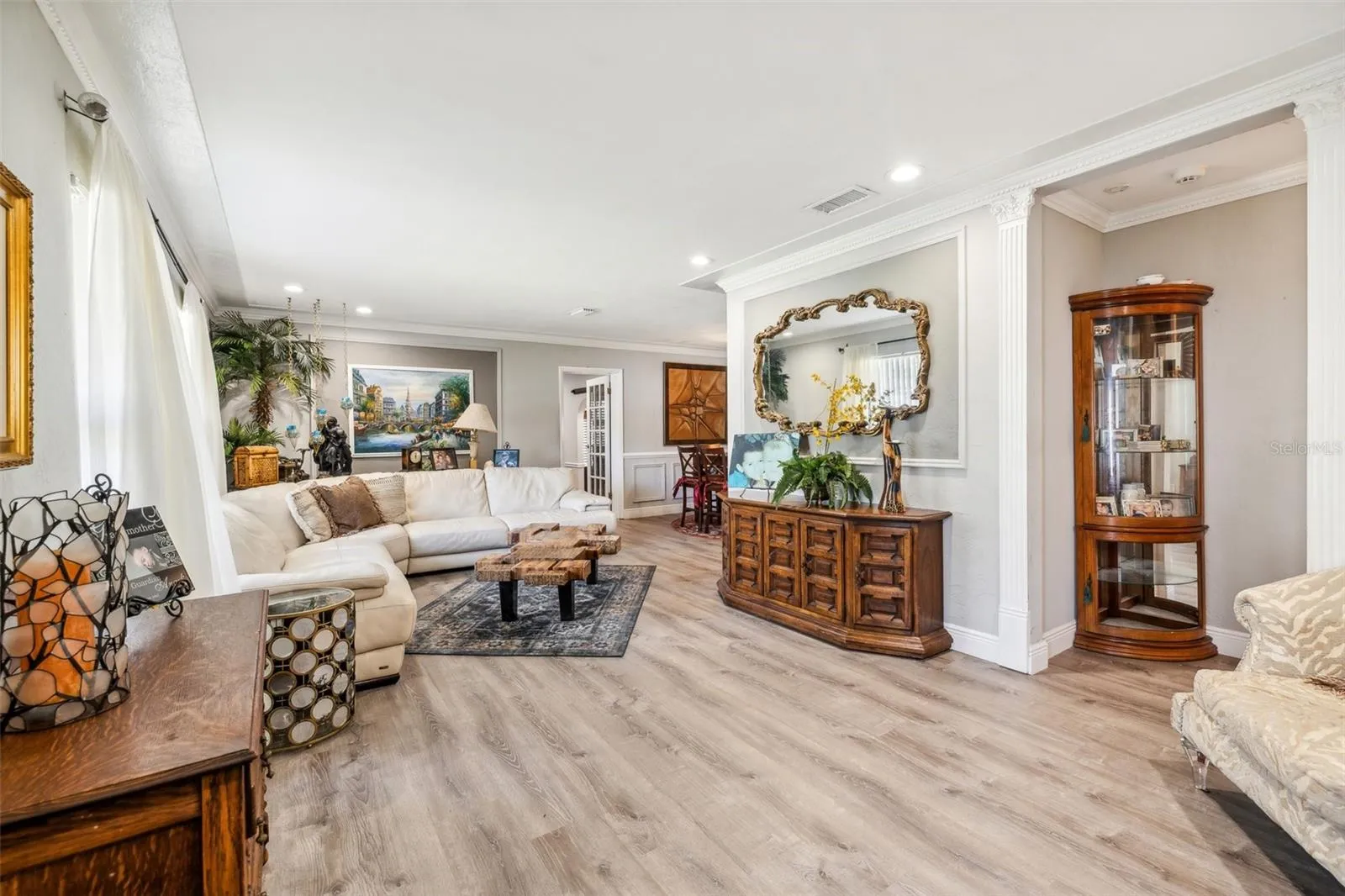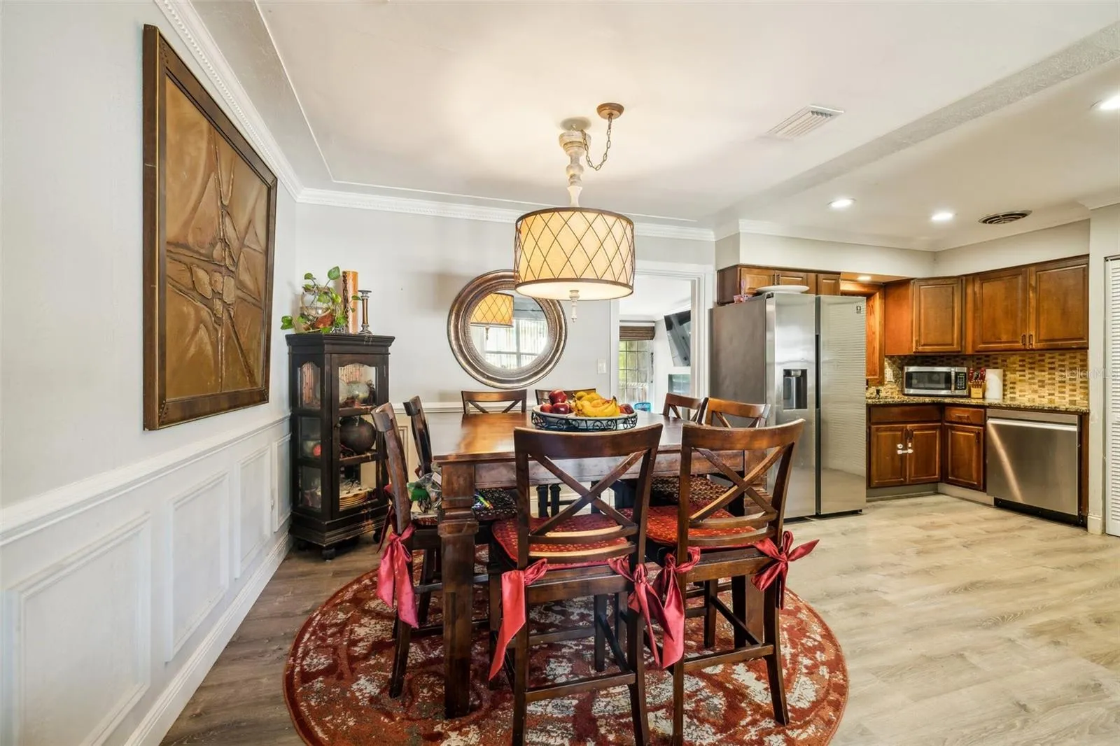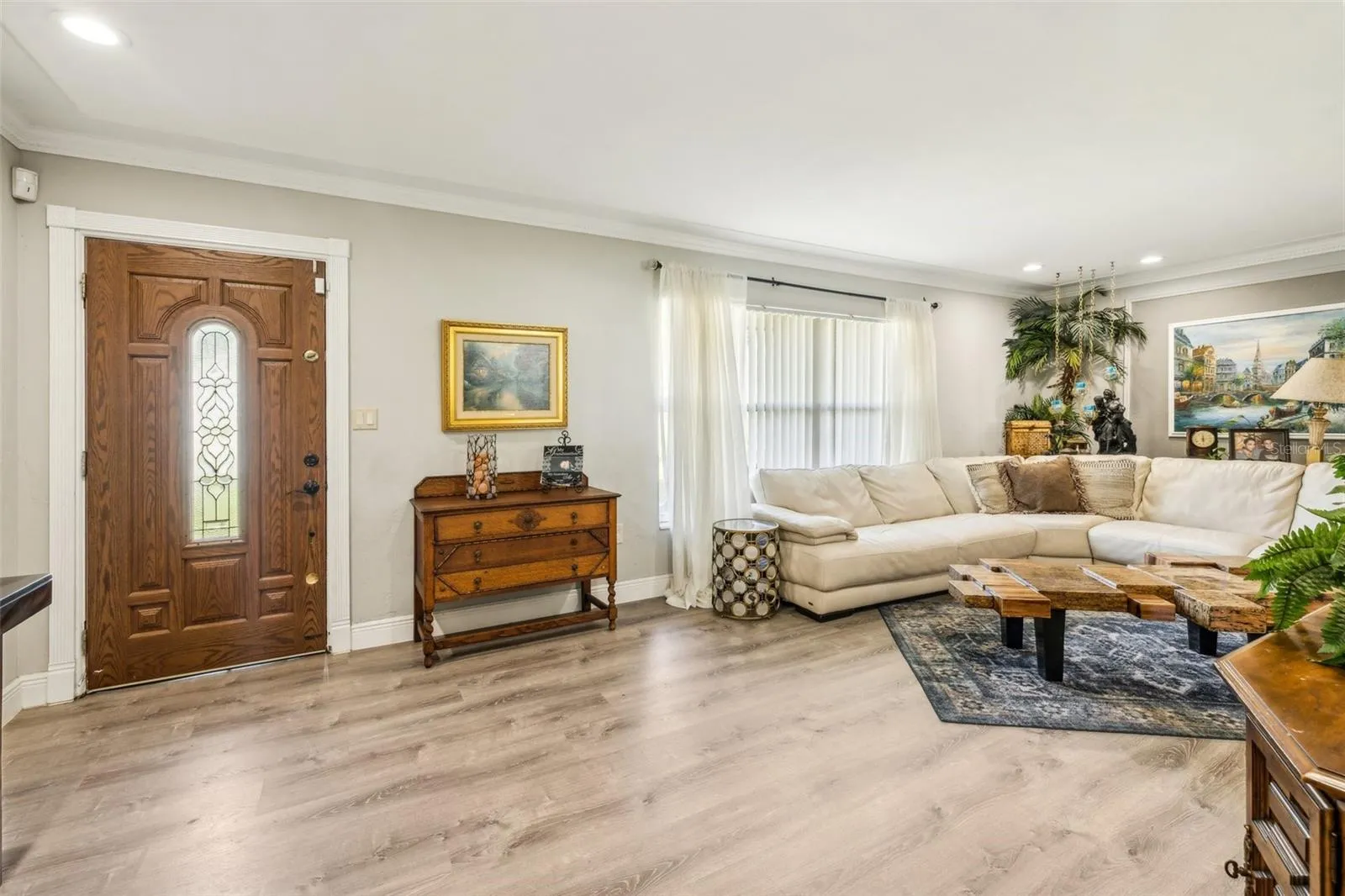 “MAJOR PRICE IMPROVEMENT!” Welcome to your dream home in North St. Petersburg! This captivating 4-bedroom, 3-bathroom residence spans over 2,100 square feet, offering a perfect blend of style, comfort, and functionality. Boasting a spacious mother-in-law suite complete with its own kitchen, bathroom, and living area, this home is designed to accommodate a variety of living arrangements. The thoughtful layout flows seamlessly from the inviting entryway to the spacious living room, and formal dining room, and into the well-appointed kitchen, creating an ideal space for both everyday living and entertaining. The kitchen is a culinary enthusiast’s delight, featuring elegant granite counters, rich wood cabinets, and top-of-the-line stainless steel appliances. You will find beautiful luxury vinyl plank flooring throughout the home and recently painted baseboards and crown molding. The spacious primary bedroom boasts a large closet and ensuite bathroom. The home also includes two additional bedrooms and a bonus room which can be used as an office or entertainment space. The property has been meticulously maintained, with a new roof installed in December 2019, ensuring comfort and peace of mind for years to come.