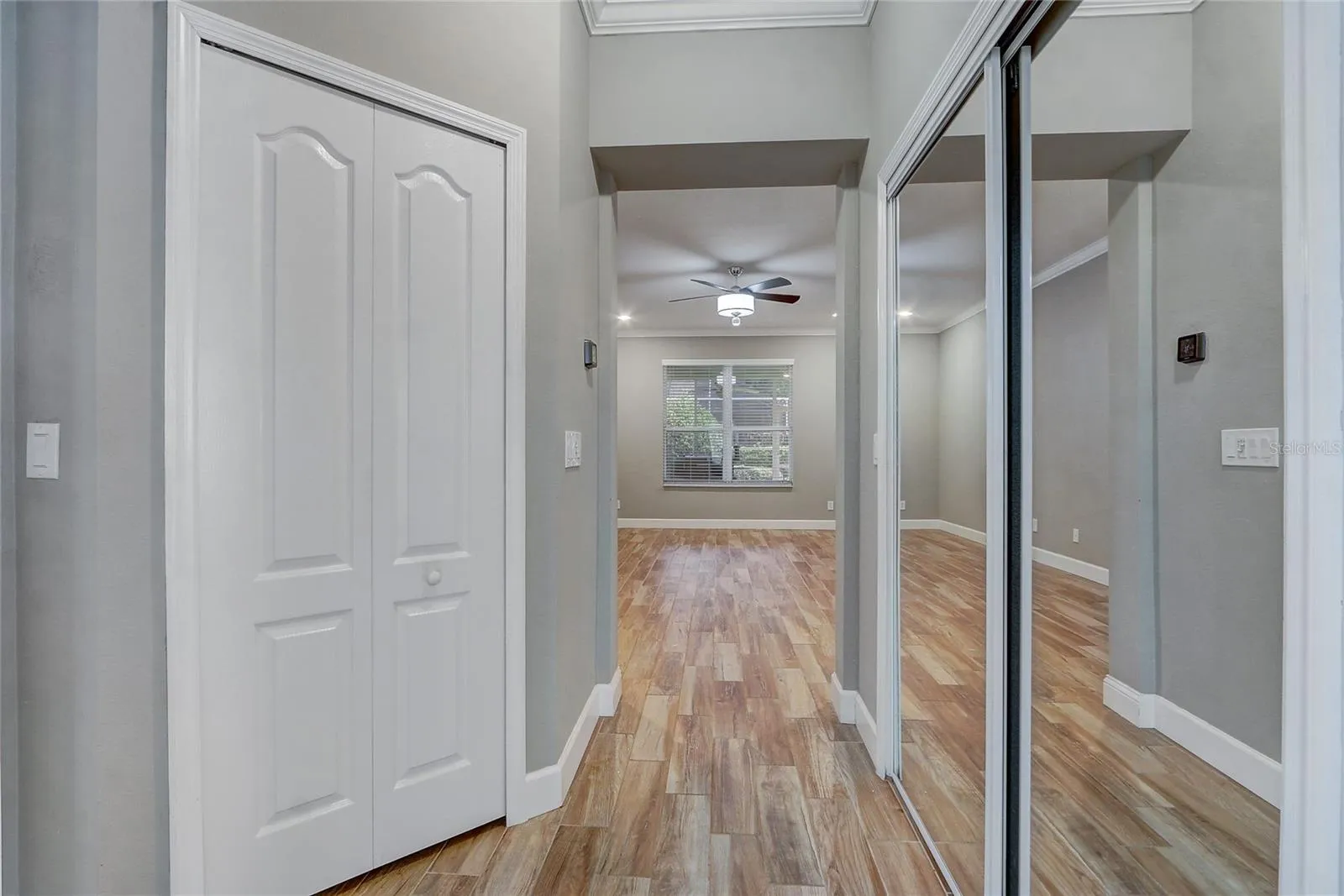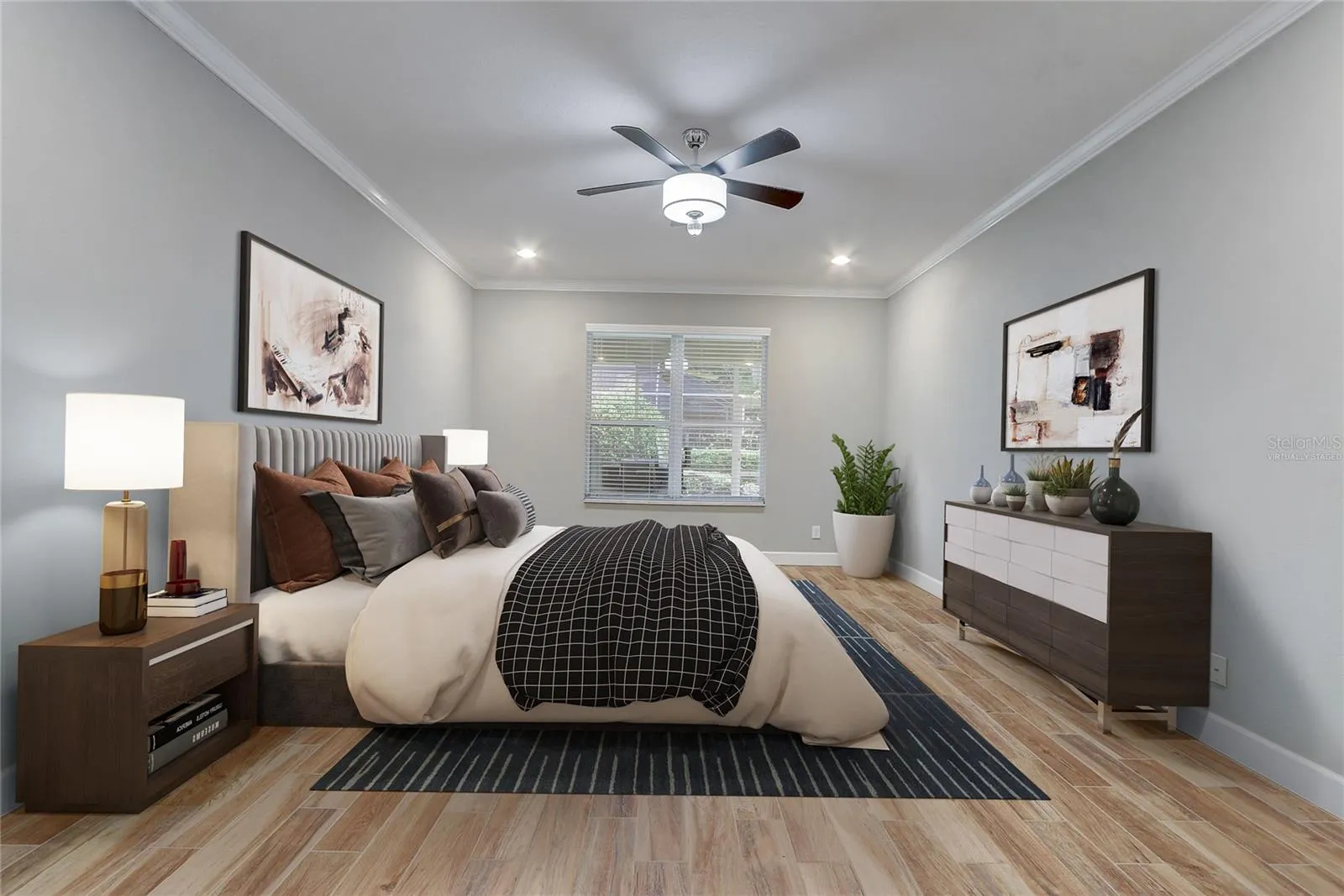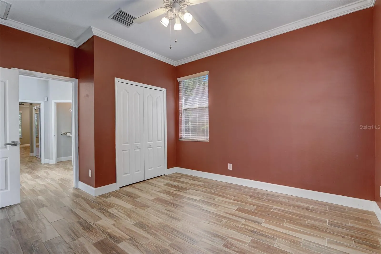 - Ceiling Fans(s), Crown Molding, Thermostat, Walk-In Closet(s), Eat-in Kitchen, Primary Bedroom Main Floor, Split Bedroom, Solid Wood Cabinets, Solid Surface Counters