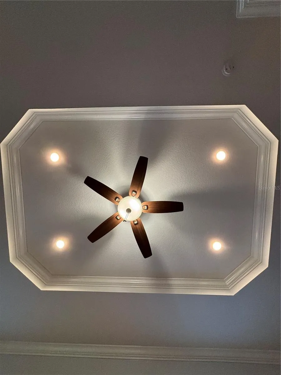 - Ceiling Fans(s), Crown Molding, Open Floorplan, Primary Bedroom Main Floor, High Ceilings, Tray Ceiling(s)