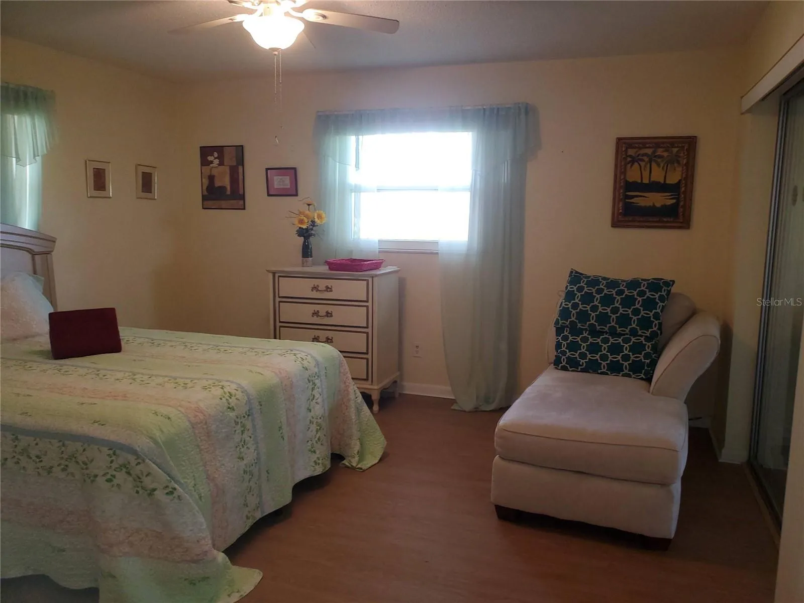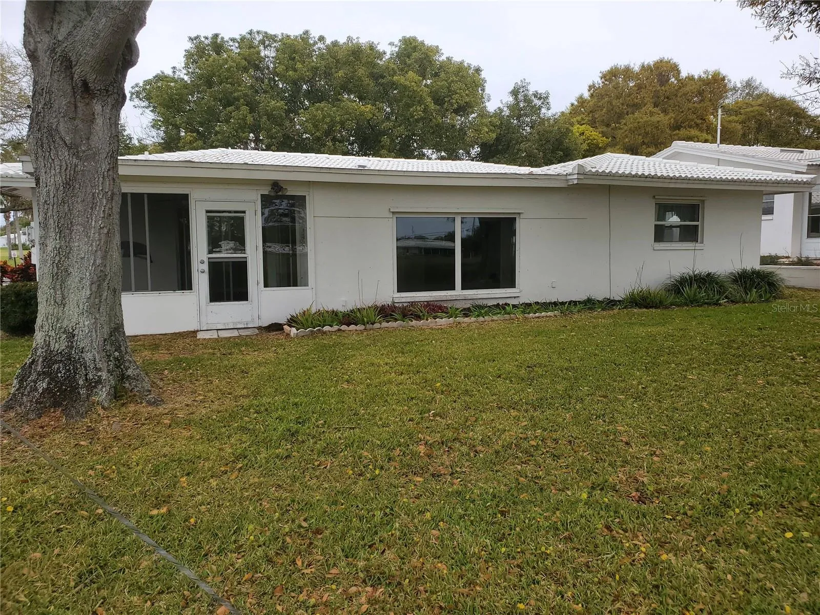 Overlooking the kitchen and dining room is a versatile Florida room, ideal for use as 3rd bedroom, office or workout space. Retreat to the tranquil primary bedroom featuring a walk-in closet and an ensuite bathroom boasting a step-in shower and updated tile and countertops. The second bedroom, located down the hall, offers a double closet for ample storage, while a conveniently located second bathroom with a tub and shower serves guests and residents alike.