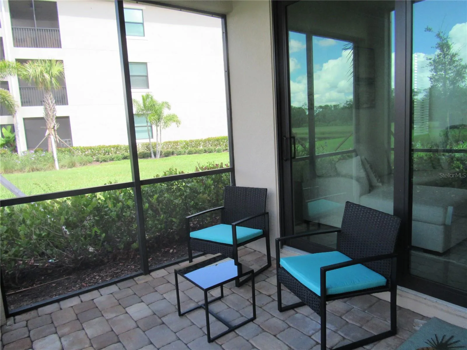Feel like you’re on vacation every day of the week in this resort style living that awaits you in a gated, maintenance free community of Lakewood National. Lakewood National is a private golf community located within the awarding wining master planned area of Lakewood Ranch. This first floor, end unit has 3 bedrooms, 2 baths and comes furnished. Amazing water and golf views (15th hole green) from master bedroom, great room and lanai! Kitchen offers white cabinets, cortez counter tops and stainless-steel appliances which include an upgraded refrigerator. Owner has replaced all bedroom carpets with CALI Sandbar Oak Longboards Luxury Vinyl flooring that has an extra-thick layer to help shield from pets and heavy traffic and is also waterproof! Making this condo a great place for any homeowner with pets, pet friendly floors (no carpet) and first floor for direct access to the grassy areas. Crown modeling throughout main living areas, master bedroom and master bathroom. Laundry room also has been upgraded with cabinet/granite folding area, clothing rod, and LG washer/dryer. Property also comes with a separate storage room. Condo fee includes cable, internet, water, sewer, and trash. Community pool located on other side of building along with resort style pool and spa featuring beach entry, lap lanes and tiki bar in main Lakewood National community area. Also in main area, is a state-of-the-art clubhouse with restaurant, 24-hour fitness center, on-site fitness director and personal trainer, full-service spa and scheduled events and variety of activities and classes. But wait, there’s more, a 36-hold Championship Arnold Palmer designed golf course, pickle ball, tennis and bocce ball courts. With easy access to I-75, you can enjoy all that the sunshine state has to offer!