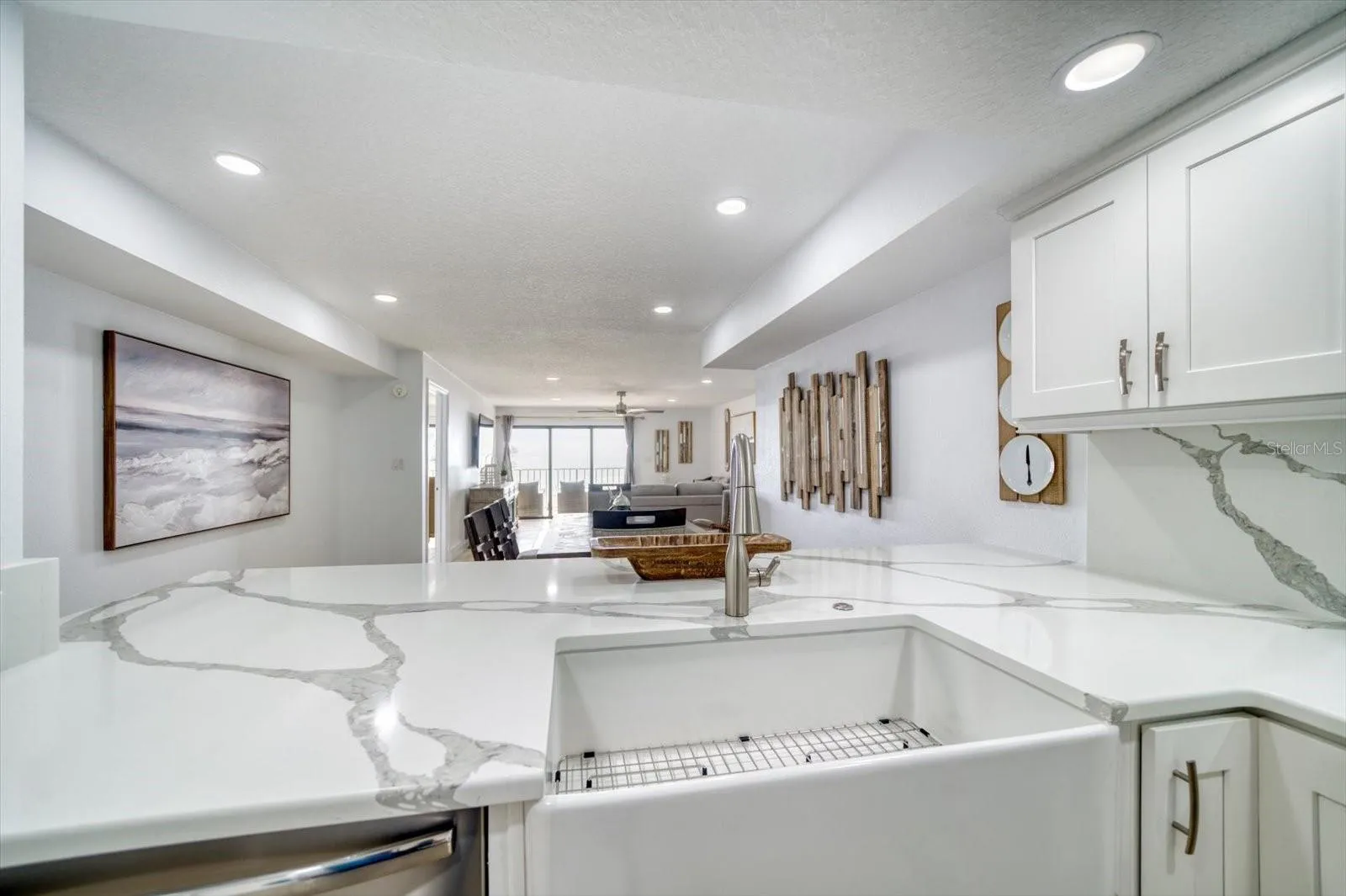 Spectacular beachfront views from the living room, kitchen and primary bedroom