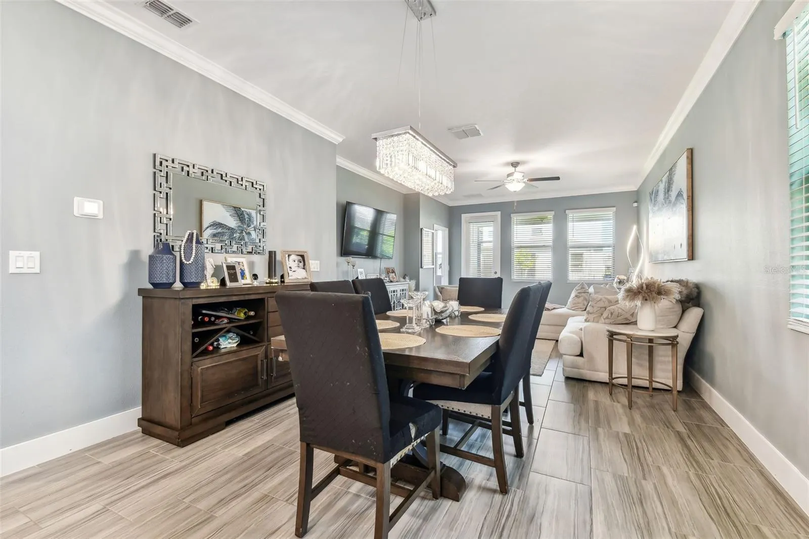 - Ceiling Fans(s), Crown Molding, Open Floorplan, Walk-In Closet(s), Living Room/Dining Room Combo, Eat-in Kitchen, Primary Bedroom Main Floor, High Ceilings, Stone Counters
