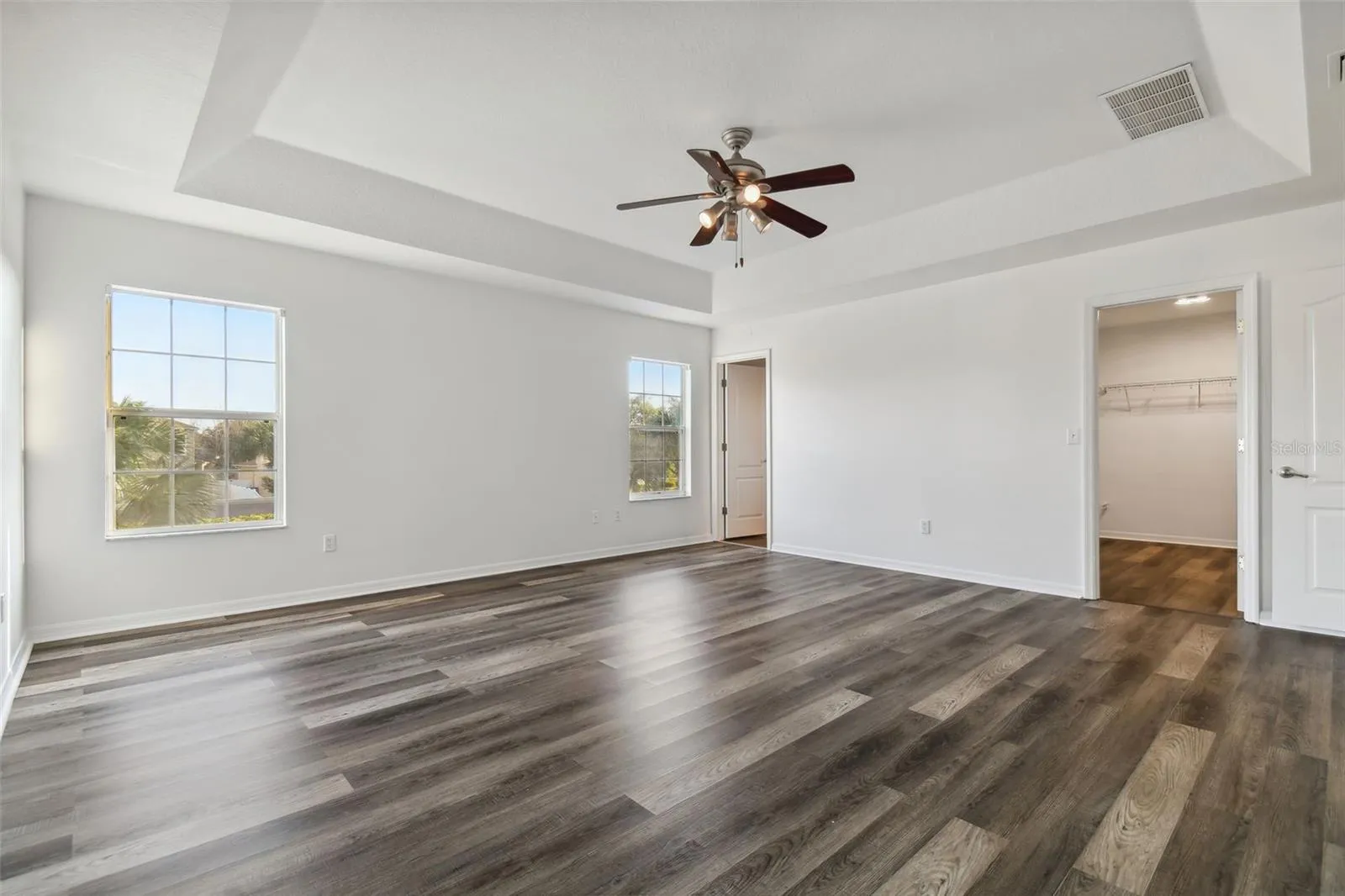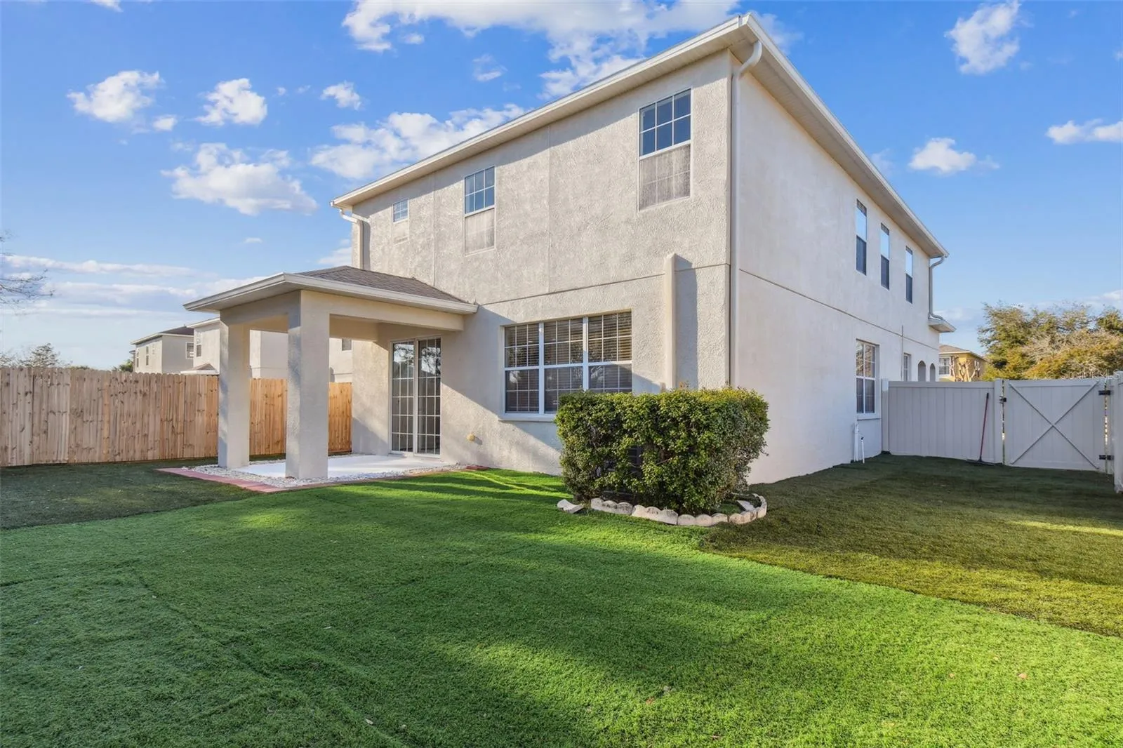 One or more photo(s) has been virtually staged. Seller may consider buyer concessions if made in an offer. WOW! What a great house in the sought-after community of Tierra del Sol in Land O Lakes. Come through a welcoming front porch. Enter the beautiful eight-foot security glass door and be immersed in open spaces with a nine+ foot ceiling all over the first floor. This massive 2,652 square feet property features a formal living room/dining room combination, separate from the huge family room/kitchen combination area. Right from the living room, you have a 14×10 den/office/library space with a double door next to an oversized half bathroom. Should you ever need to, this office could be easily converted into a 4th bedroom, and the half-bathroom has enough space to make it a full bath by adding a shower. Outside the kitchen is a 10×10 covered lanai facing a fully-fenced large backyard with artificial turf (that’s right, no mowing and low maintenance). Going upstairs, you will find a wonderful bonus room with plenty of natural light and barn doors already installed. Let your imagination flow as this could be a media/game room, an office, a study area, a space for visitors, and more… The entire back of the second floor is your master suite offering an extraordinary 18×18 bedroom. Your walking closet is almost the size of another room and the renovated (2022) master bath also gives you plenty of space, including a linen closet. Towards the front of the house, passing the bonus room, you will find two additional bedrooms, the second full bathroom, and the laundry room. This house has luxury vinyl planks throughout (except for the steps on the stairs). The exterior of the house was painted in 2023. The interior in 2024. A new ROOF was installed in 2021. Award-winning Advent Health Hospital is only 1.2 miles away. You could walk to the new Daysping Academy Angeline Campus (opening Aug 2024). A short drive will take you to an abundance of restaurants, shopping, churches, and entertainment in surrounding areas. ATTENTION VETERANS… Veterans may qualify to assume the current VA loan at 2.75%. The remaining portion up to the purchase price may be financed with Buyer’s choice of lender. Regular financing applies to non-veterans. NO CDD and LOW HOA. Schedule your private showing today and soon you might call this property HOME.
