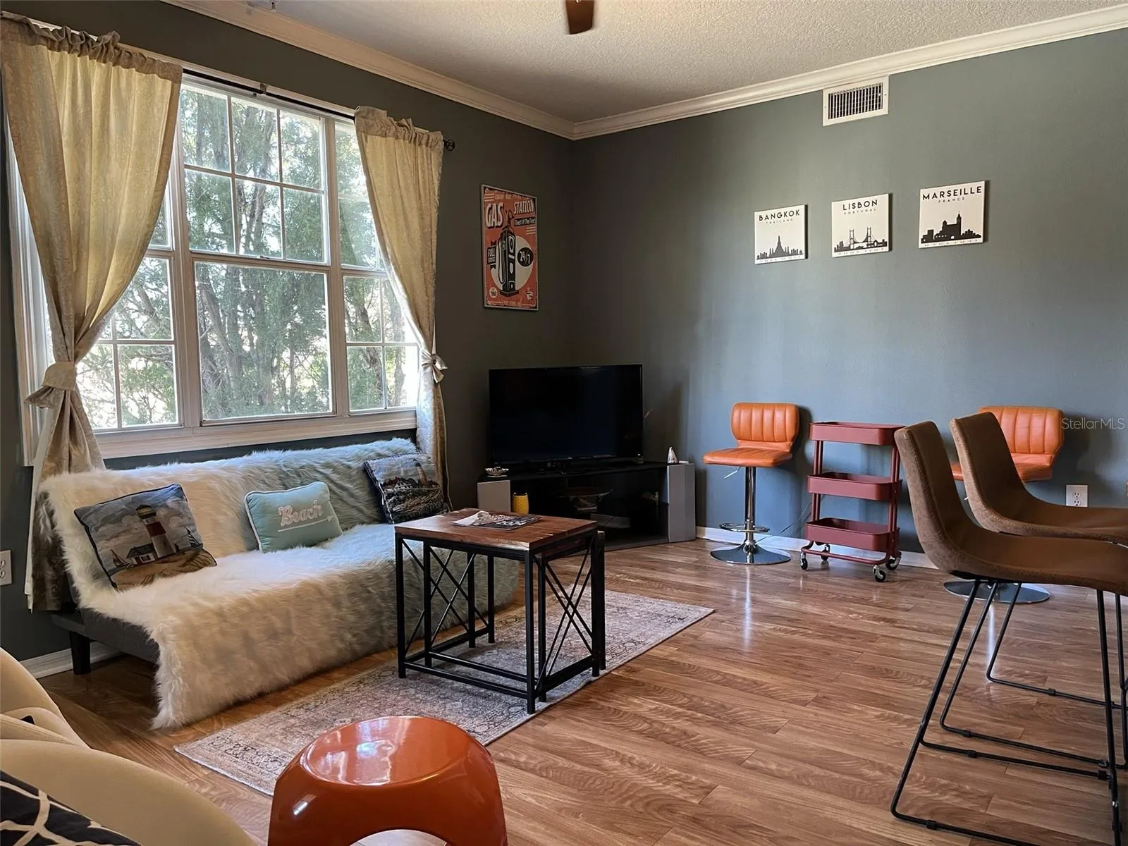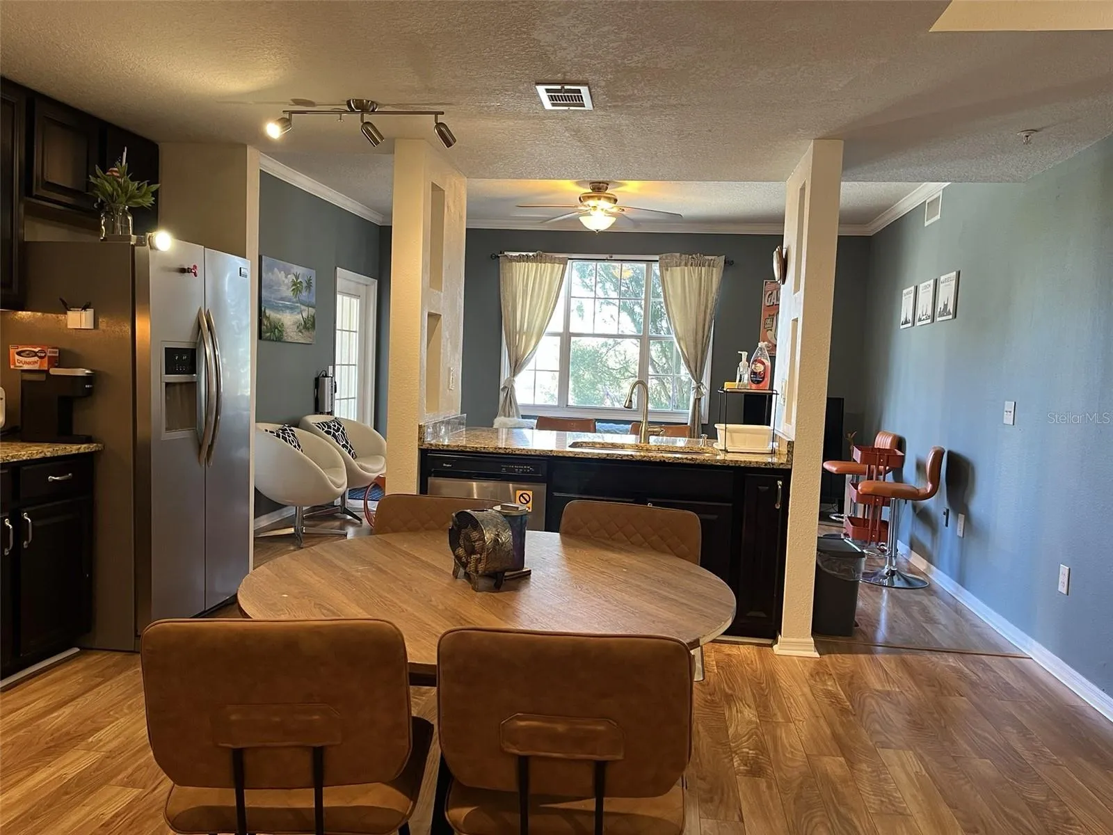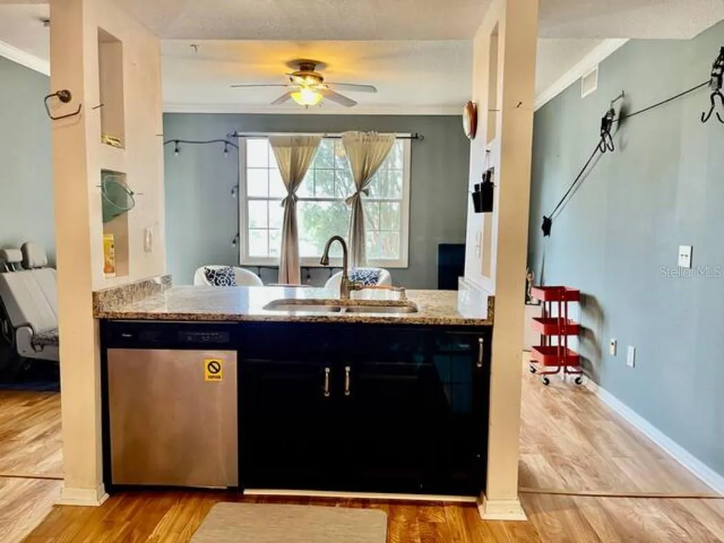 - Ceiling Fans(s), Open Floorplan, Thermostat, Walk-In Closet(s), Living Room/Dining Room Combo, Eat-in Kitchen, Window Treatments, High Ceilings, Stone Counters, Other, Solid Surface Counters