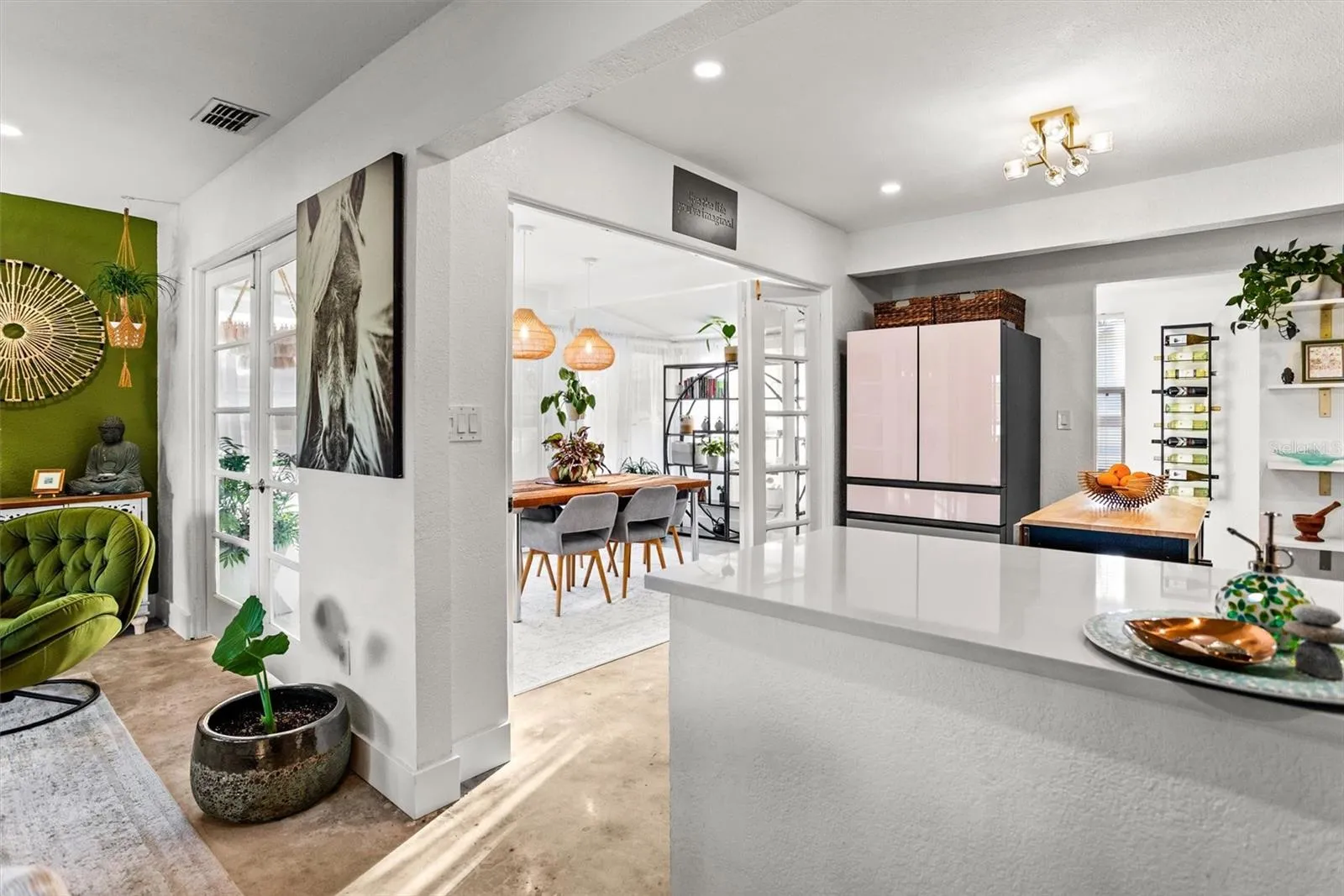 Every inch of this home has been thoughtfully remodeled, featuring a brand-new kitchen that will delight the home chef. The charming dining room is perfect for intimate gatherings, while the overall entertaining space is designed for making memories with friends and family. Beautiful concrete floors throughout the home create a modern yet comfortable ambiance, offering low-maintenance living. The primary bedroom boasts a large walk-in closet that doubles as a stylish dressing room, adding a touch of luxury to your daily routine. Additional features include an interior laundry area, pantry, a new roof in 2018, air conditioning unit replaced in 2018 and a new air handler installed in 2024.